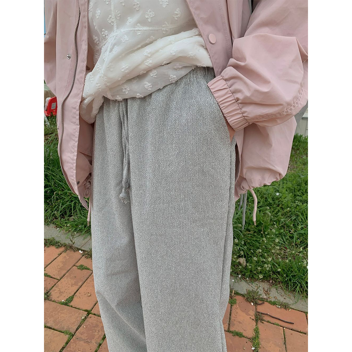 ストリングストライプワイドパンツ