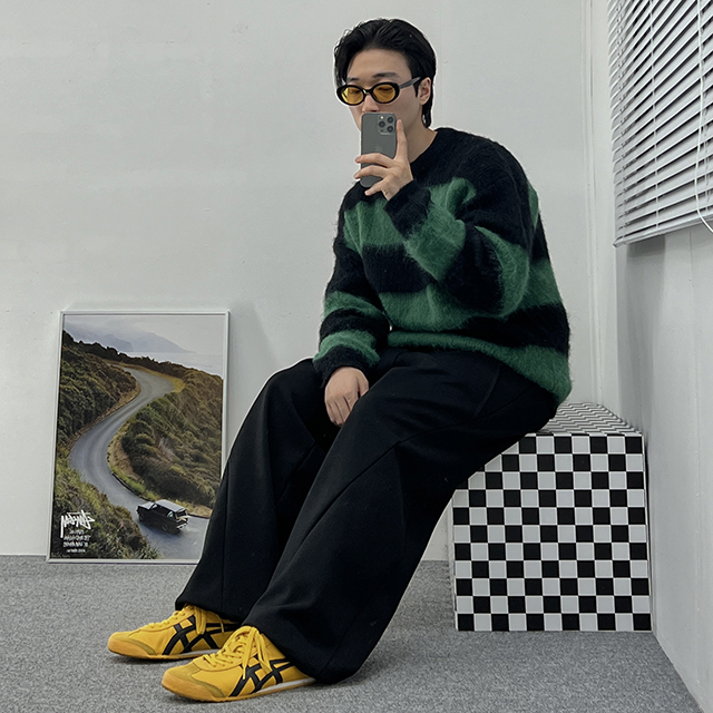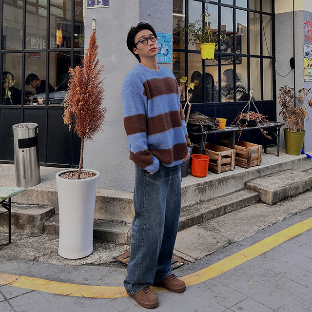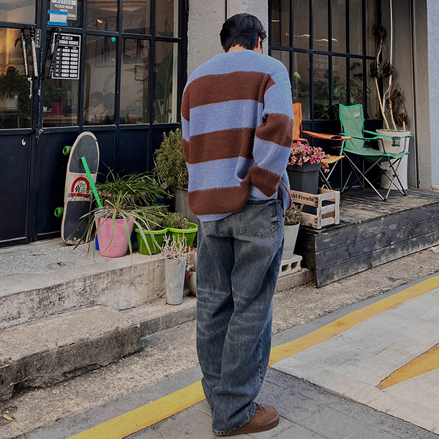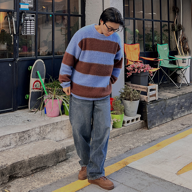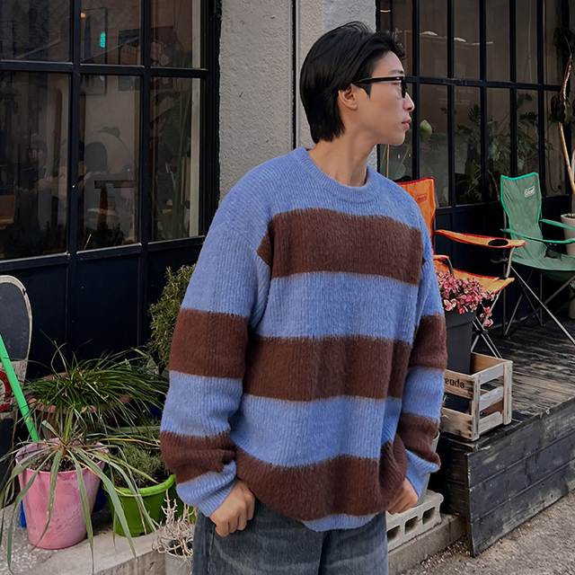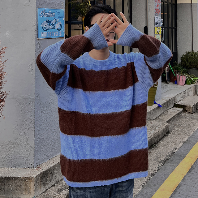 ルーズフィットストライプニット