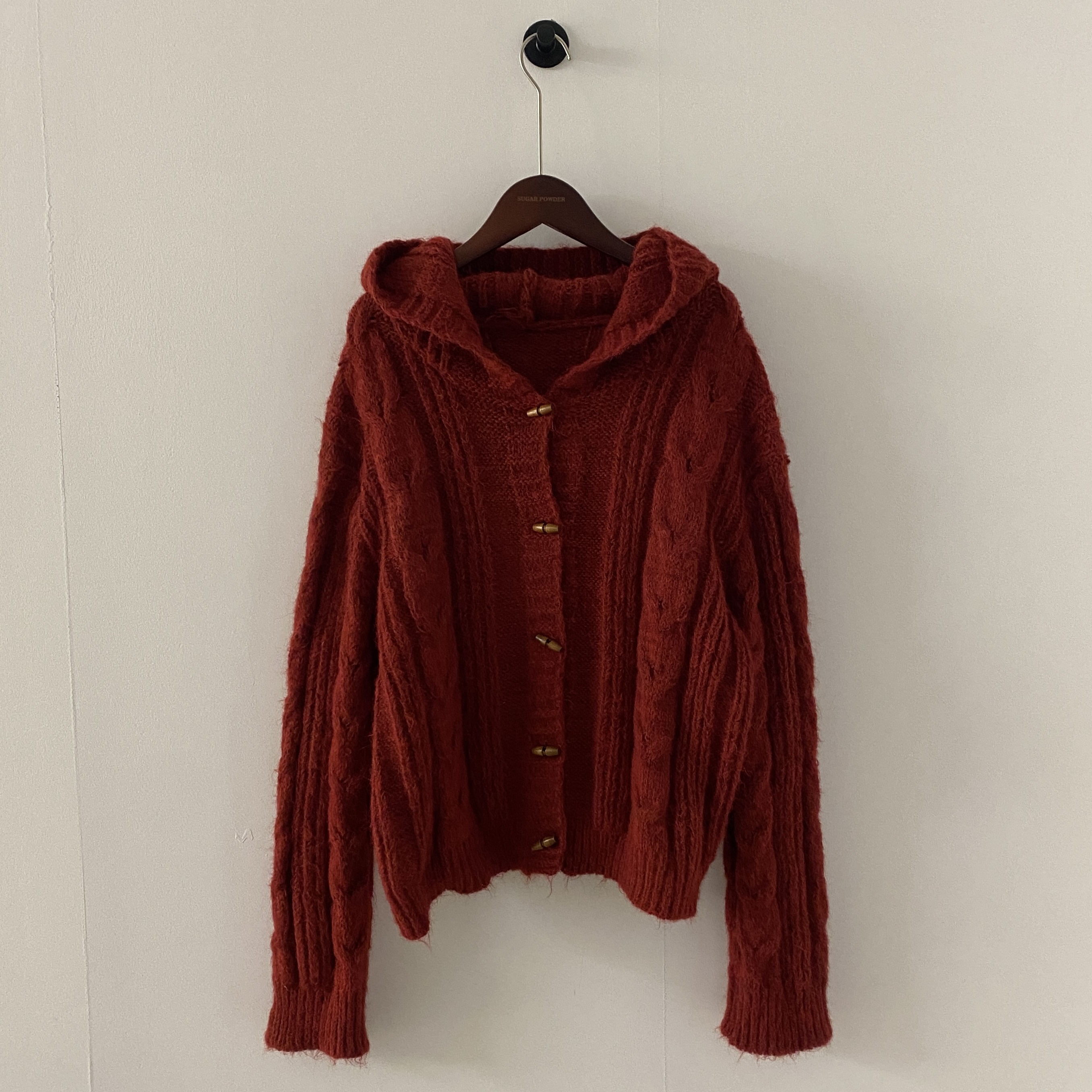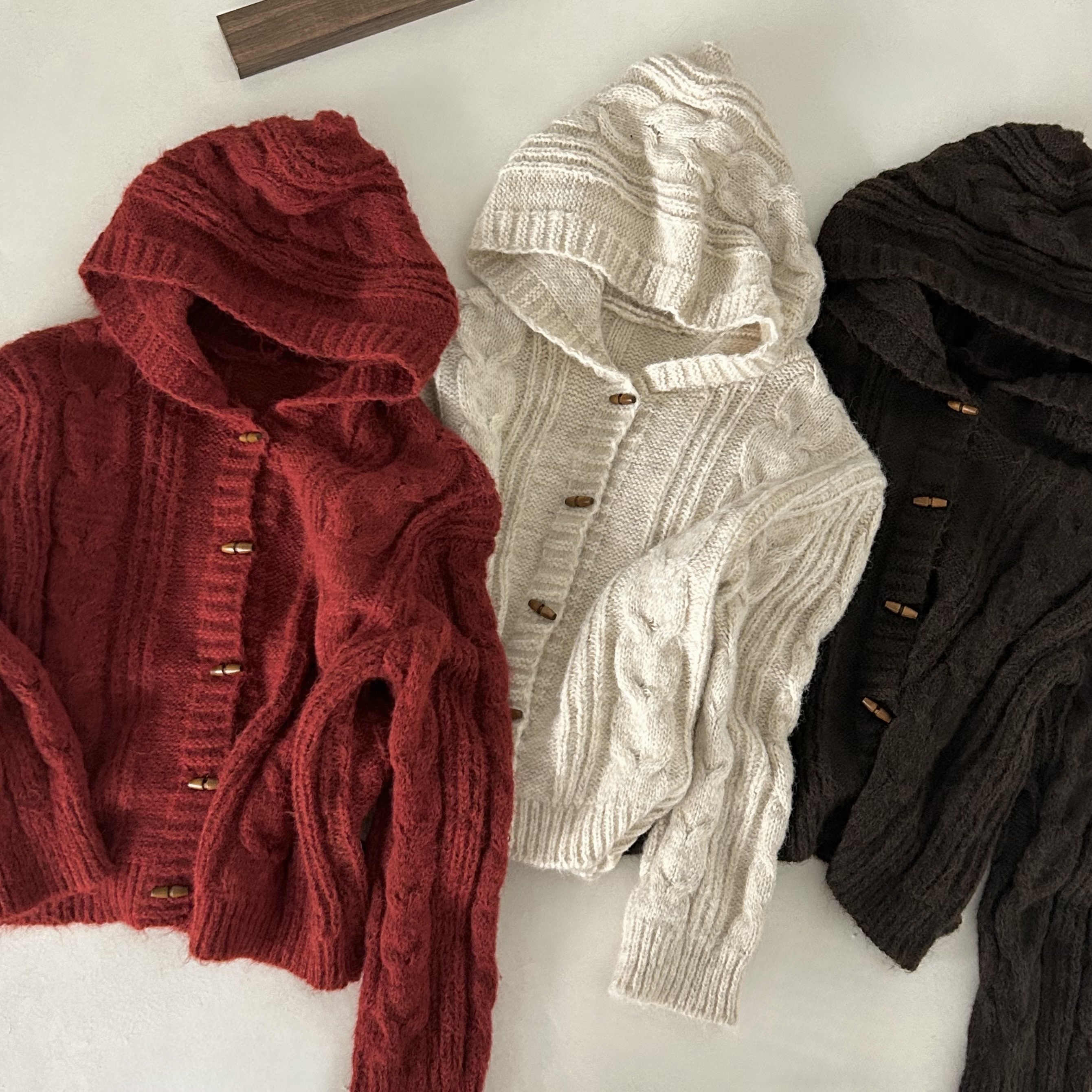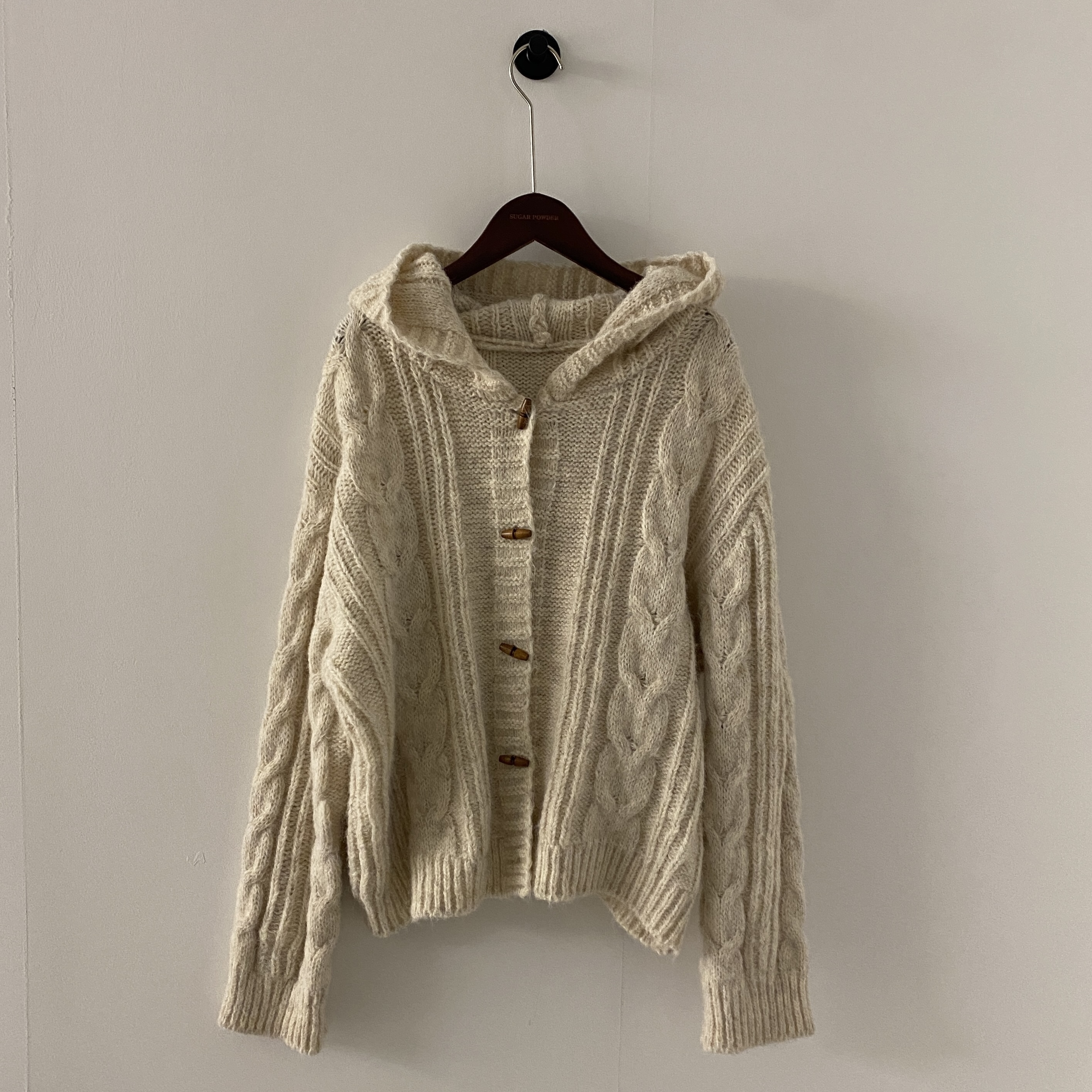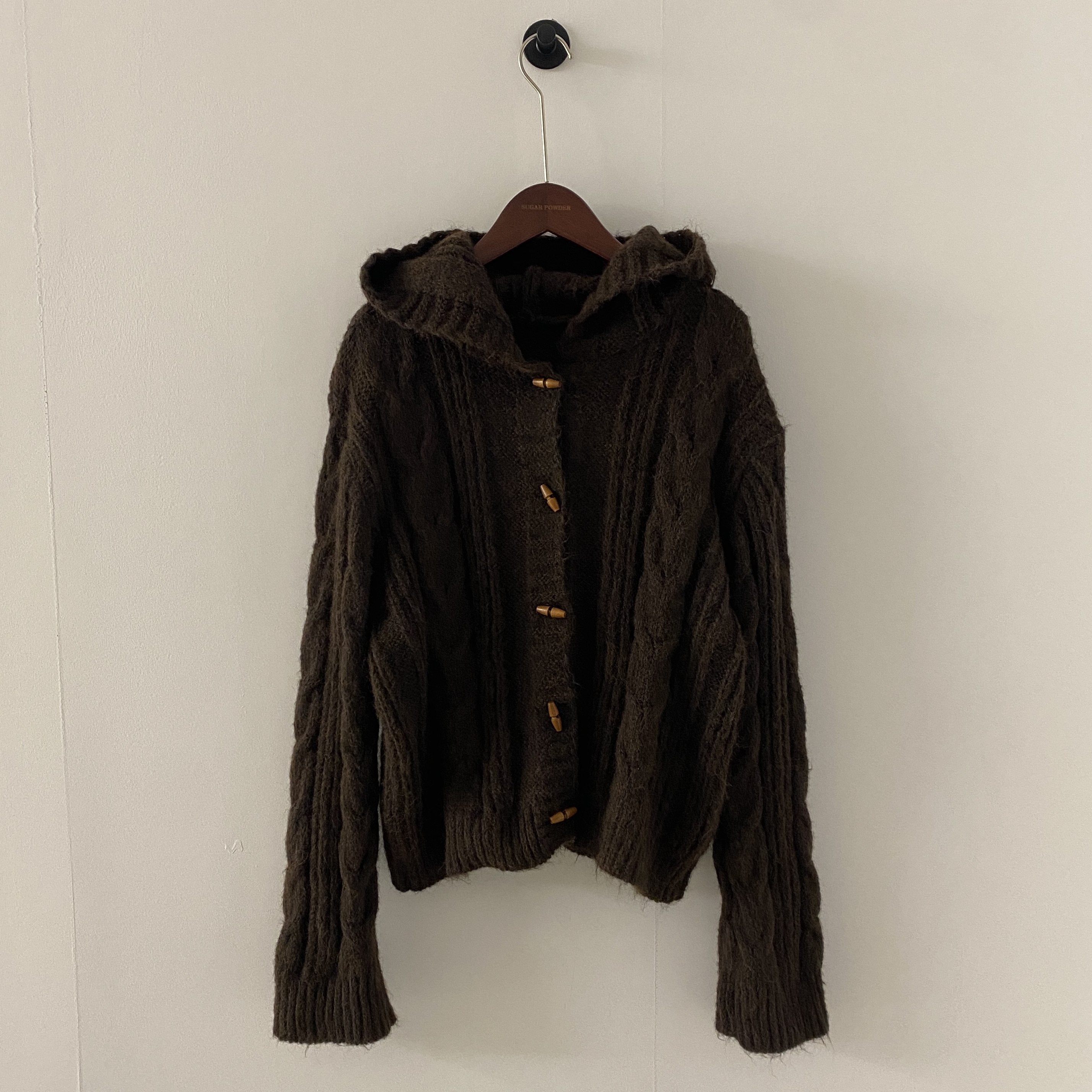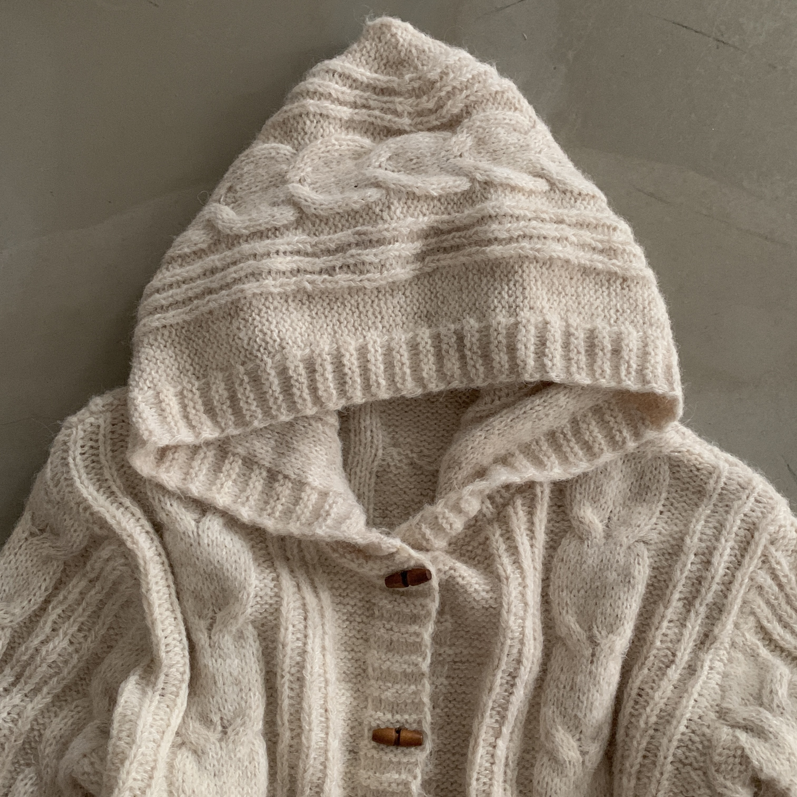 ダッフルツイストフード付きニットカーディガン