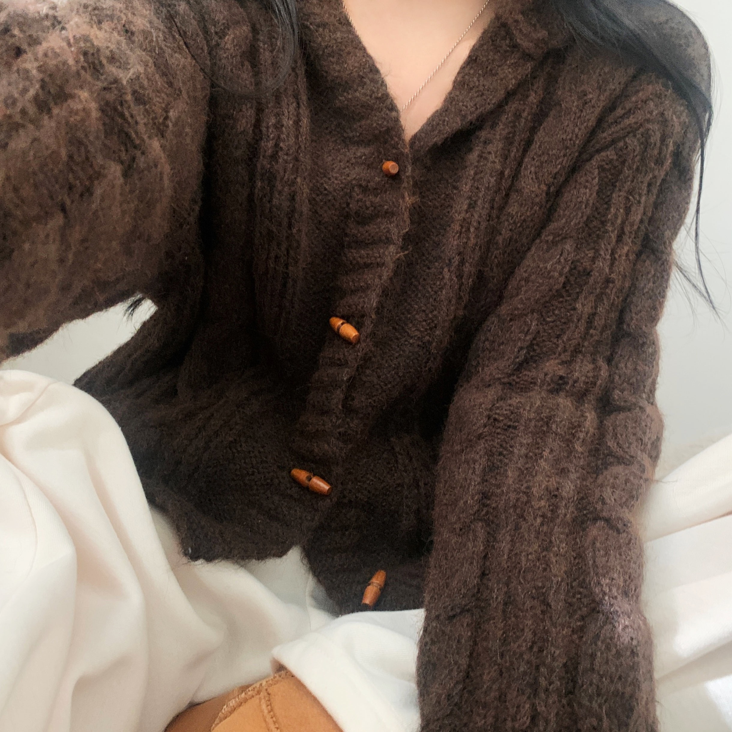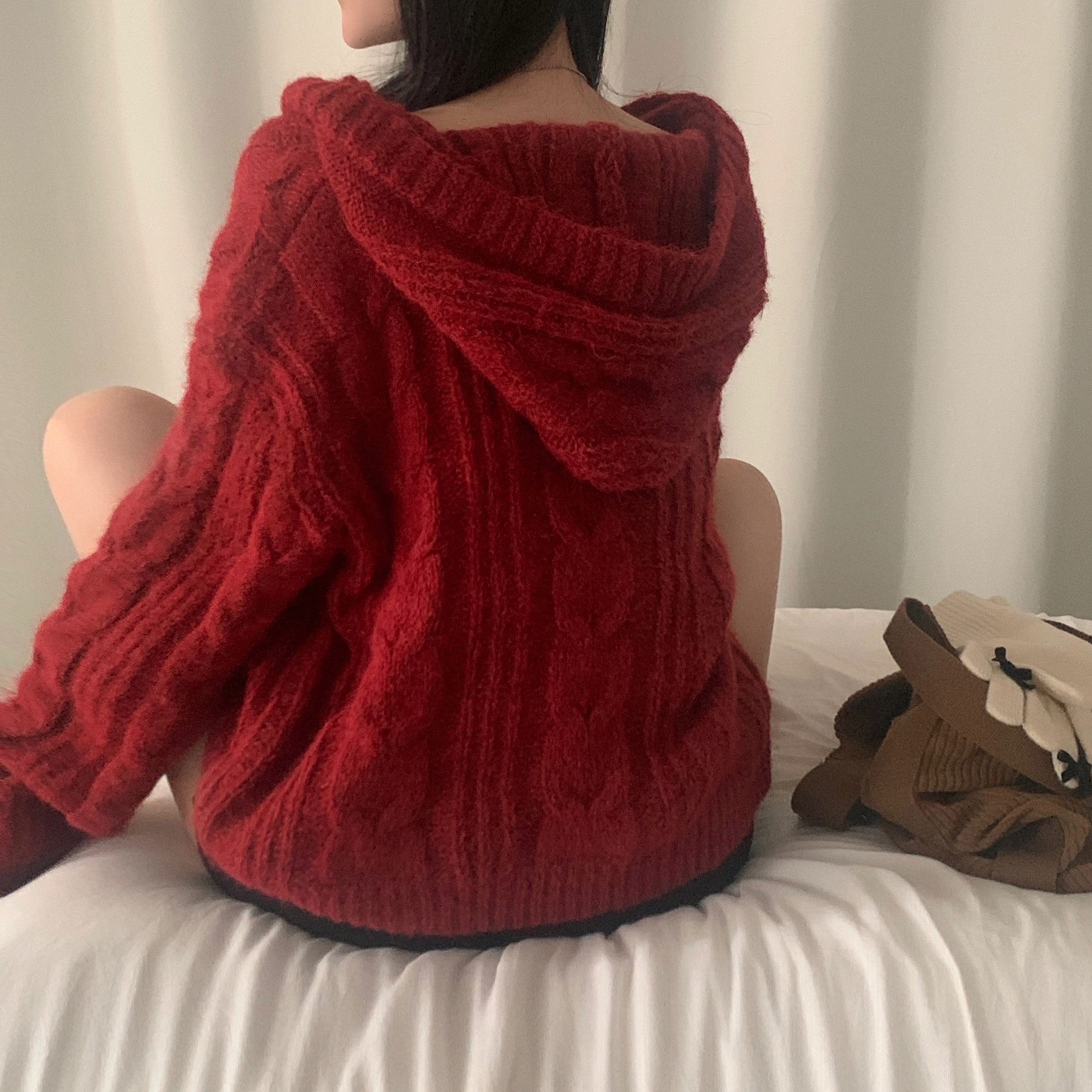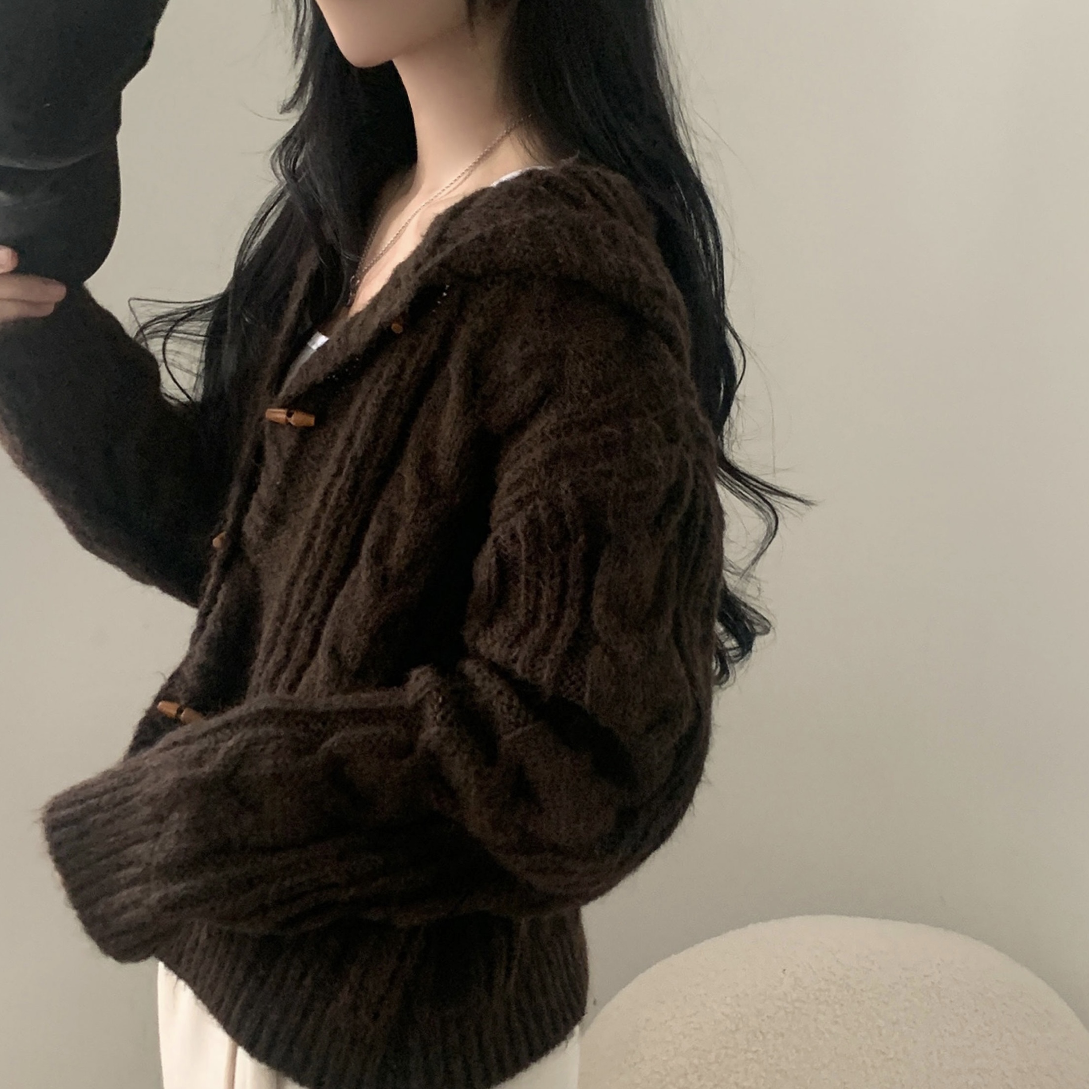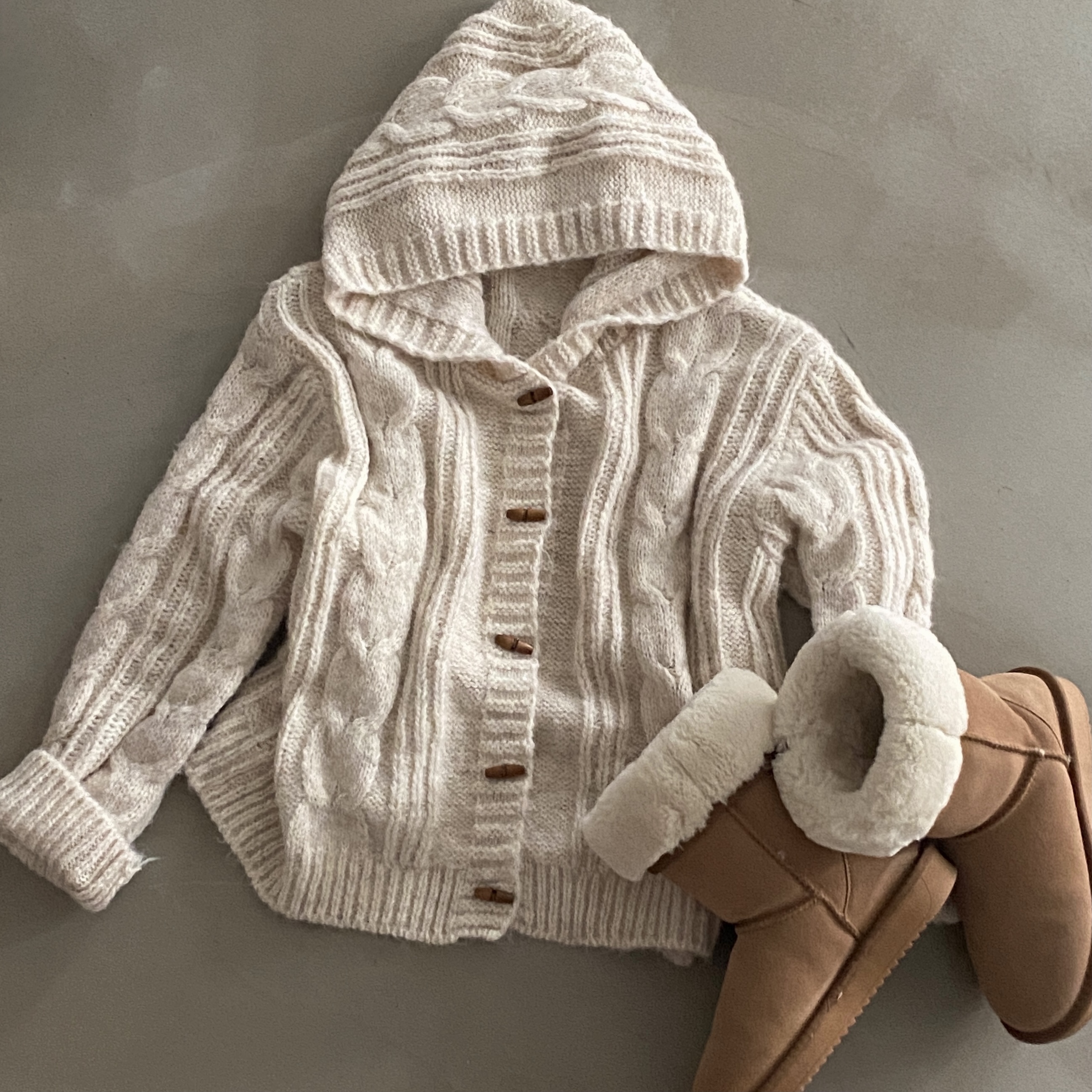 ダッフルツイストフード付きニットカーディガン