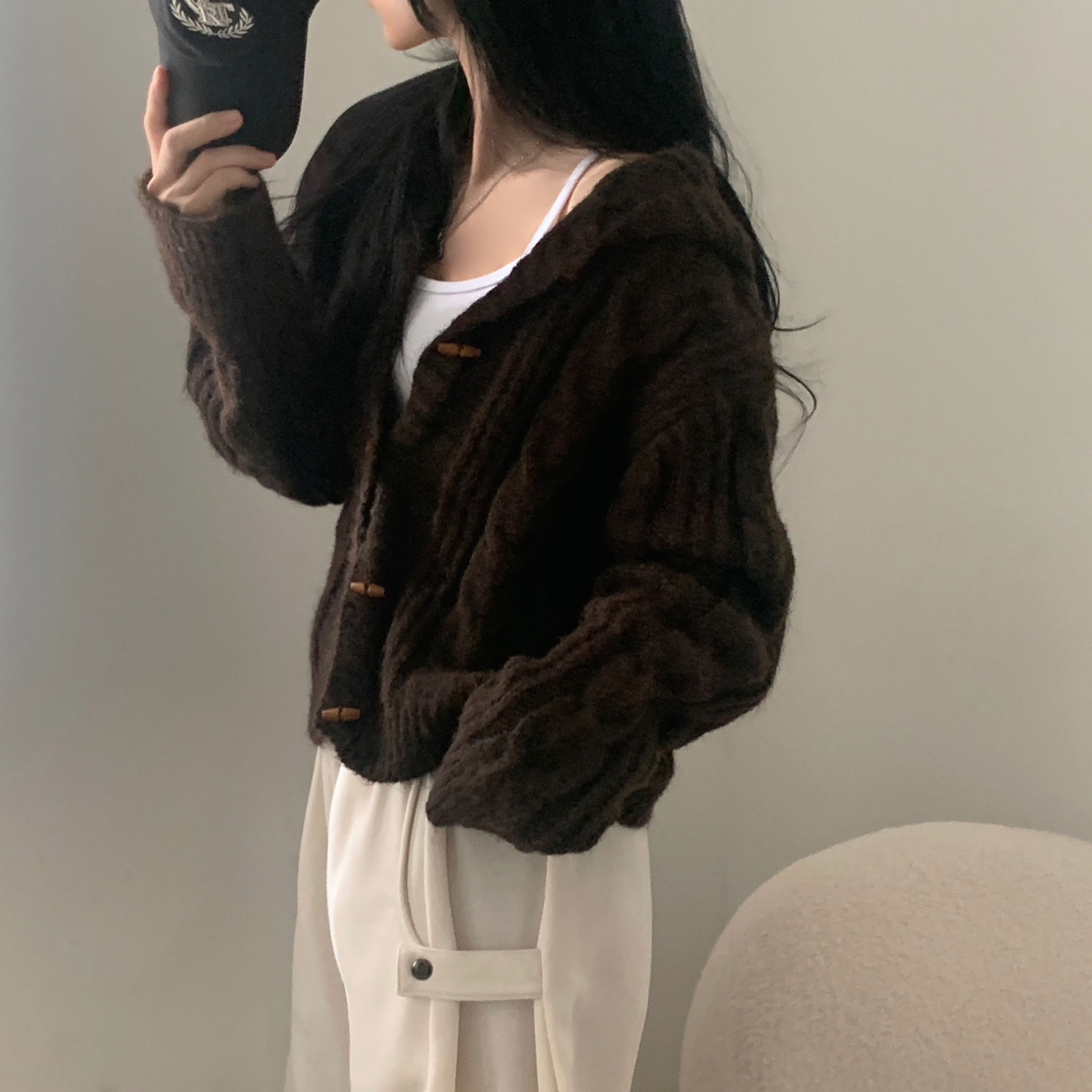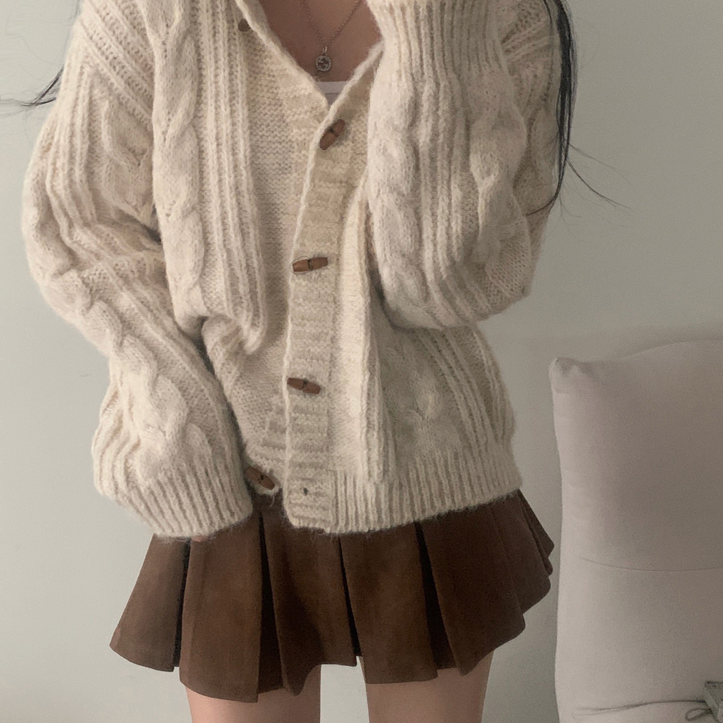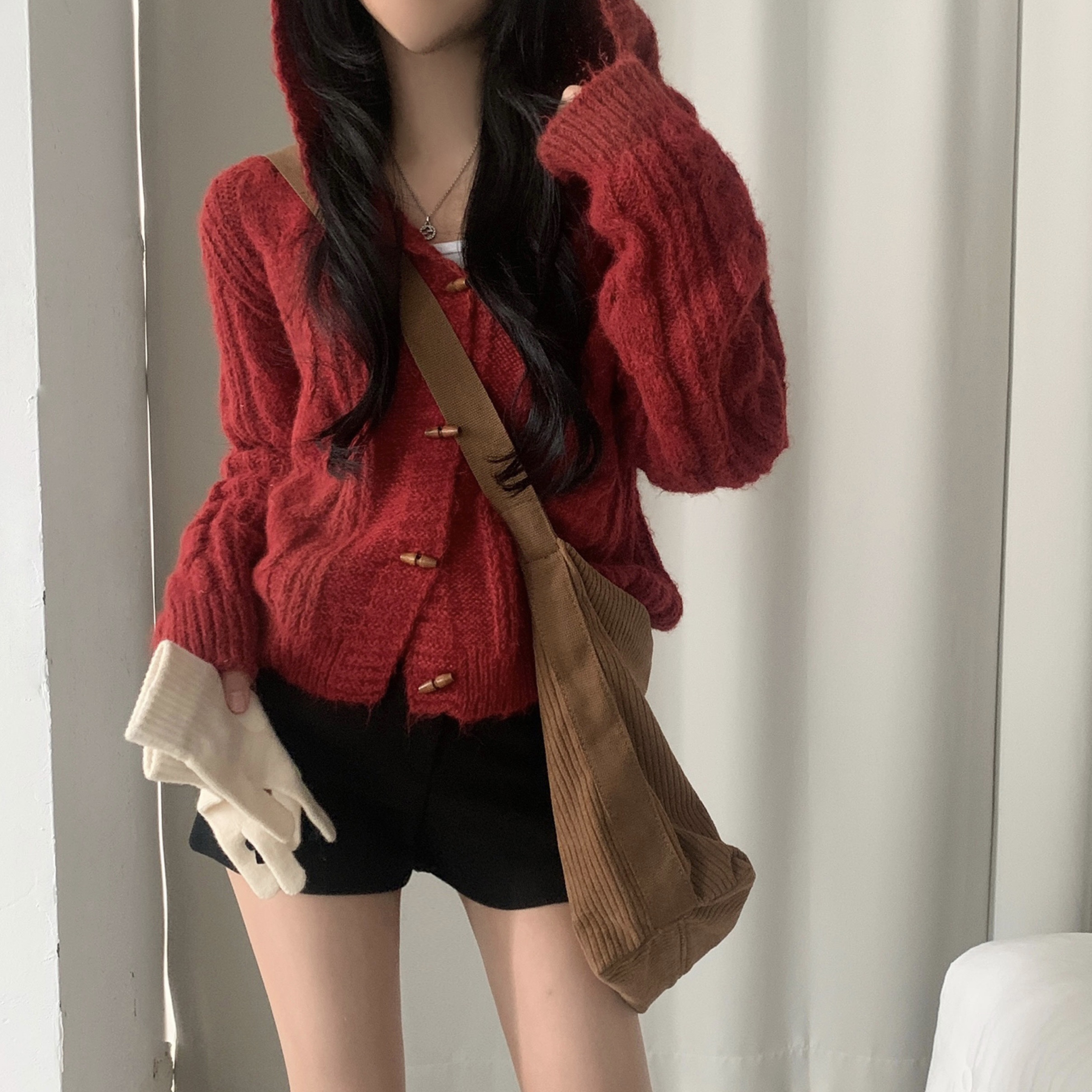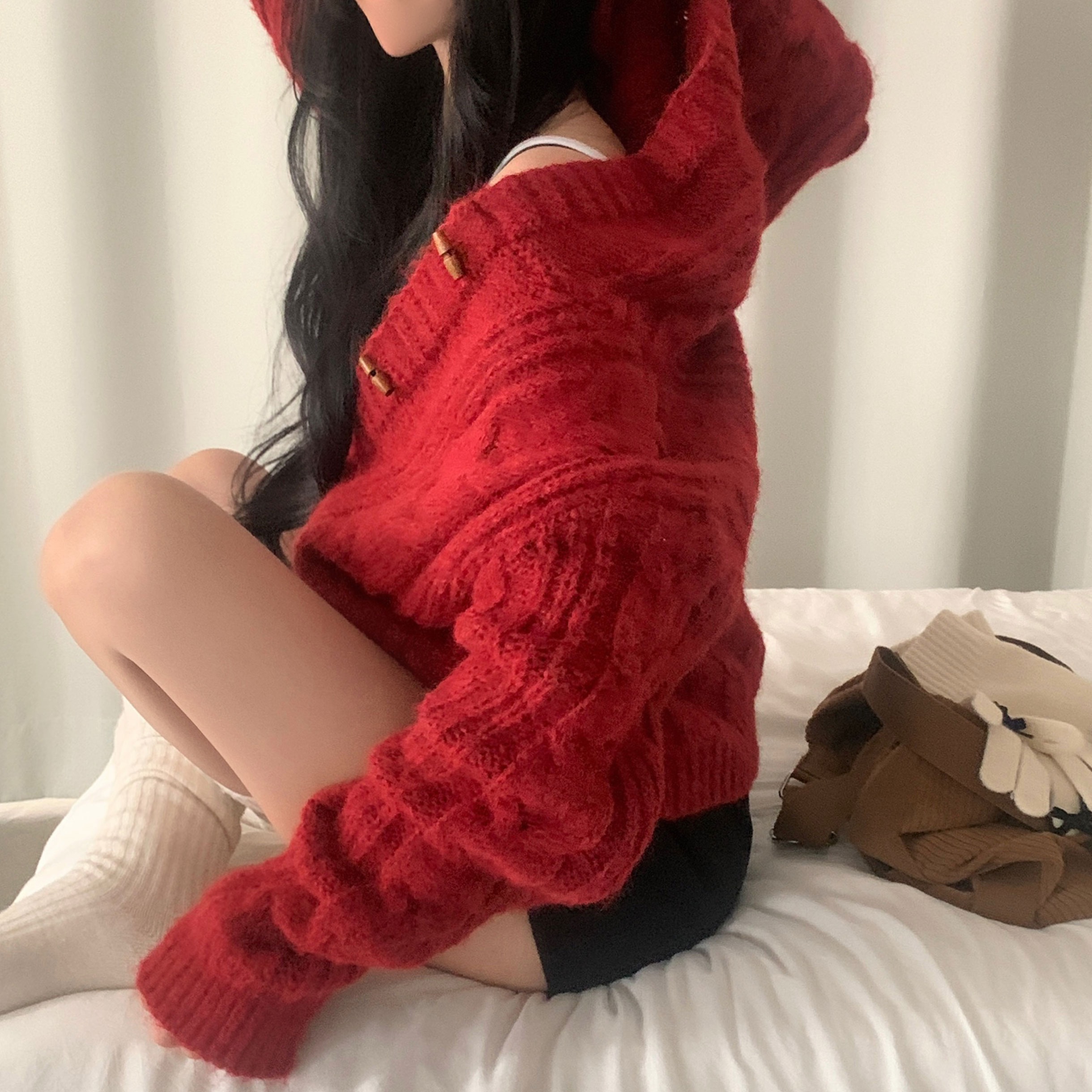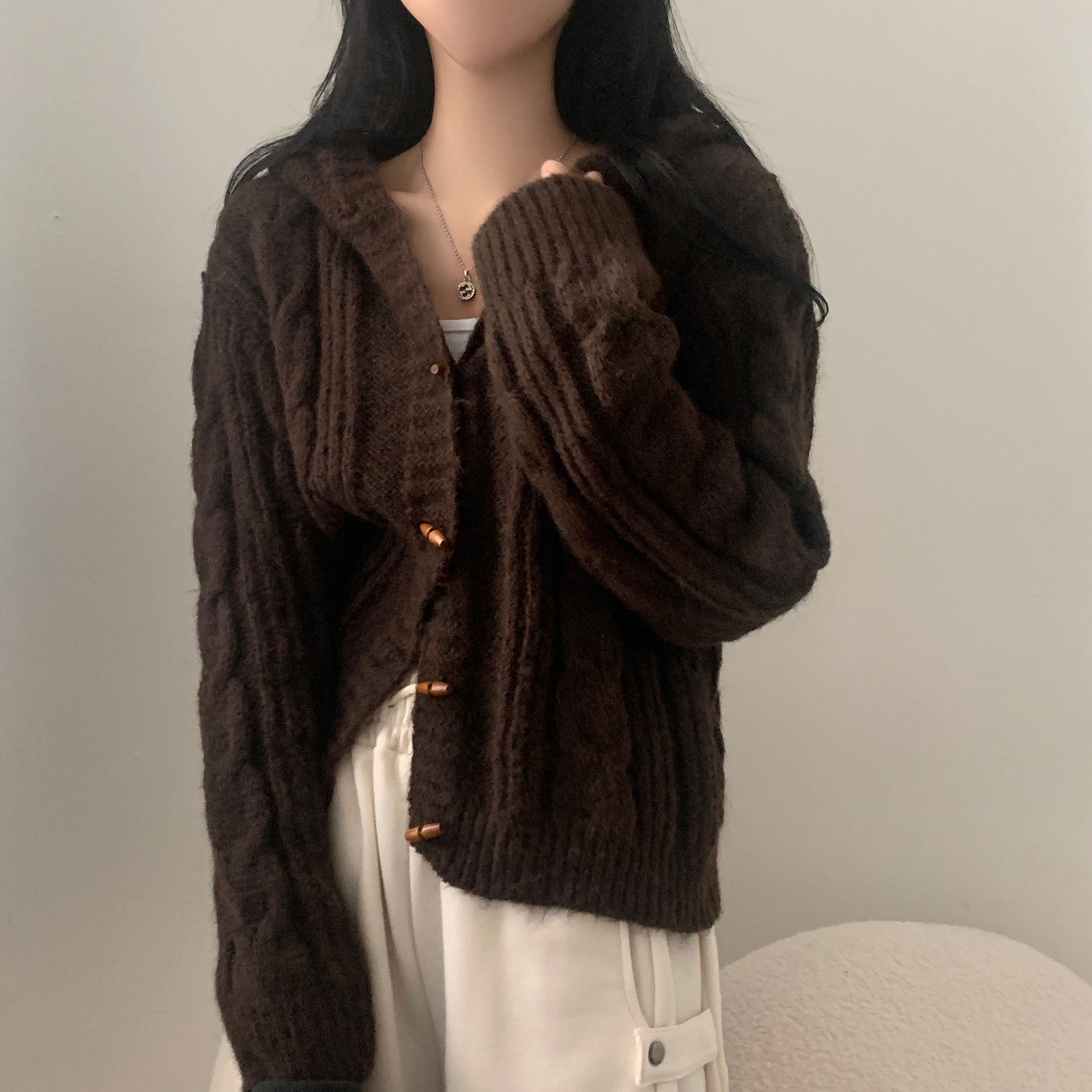 ダッフルツイストフード付きニットカーディガン