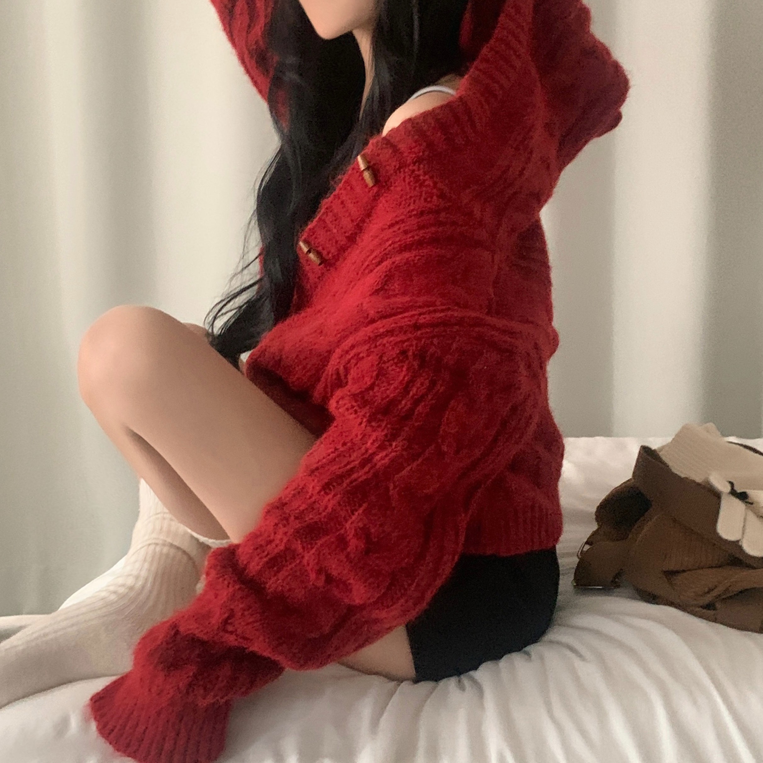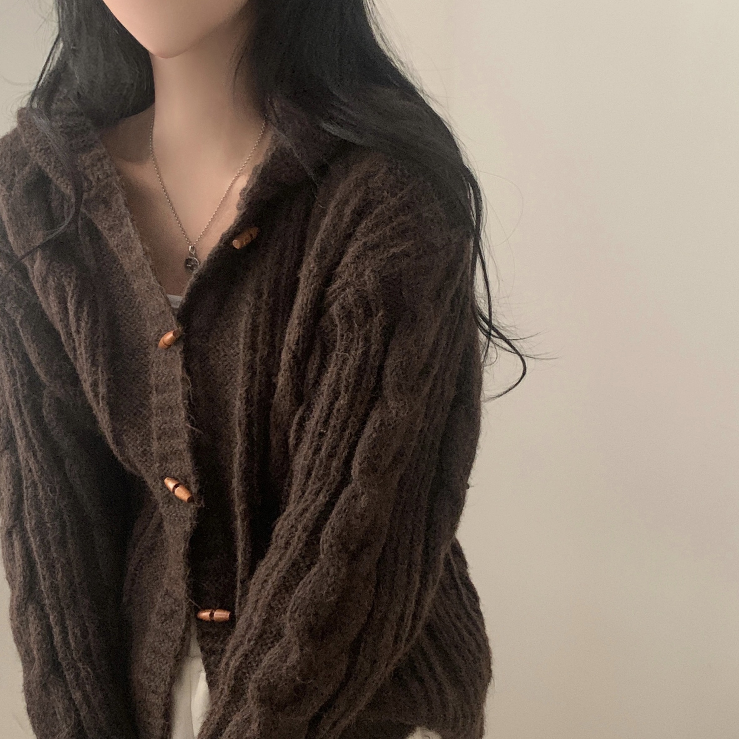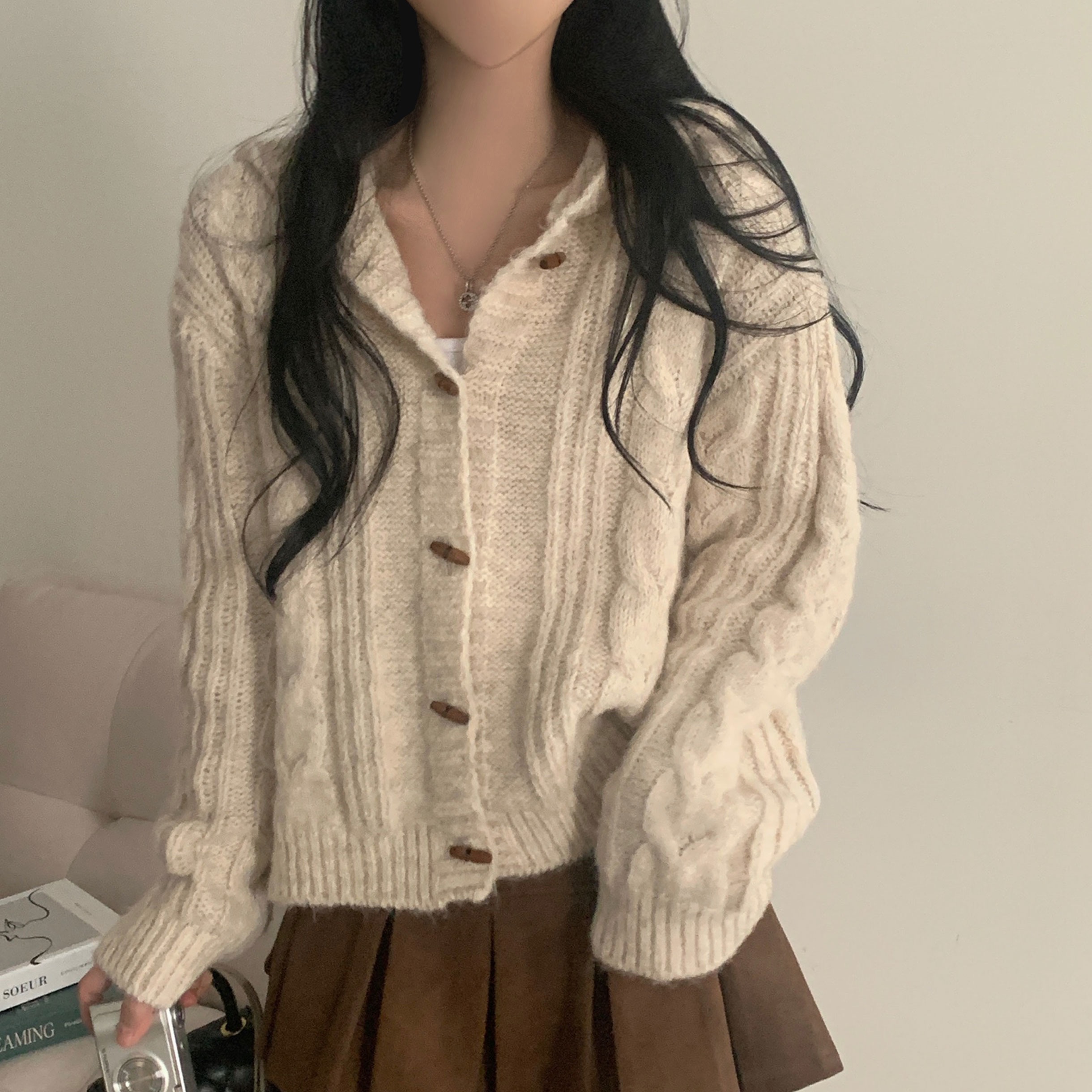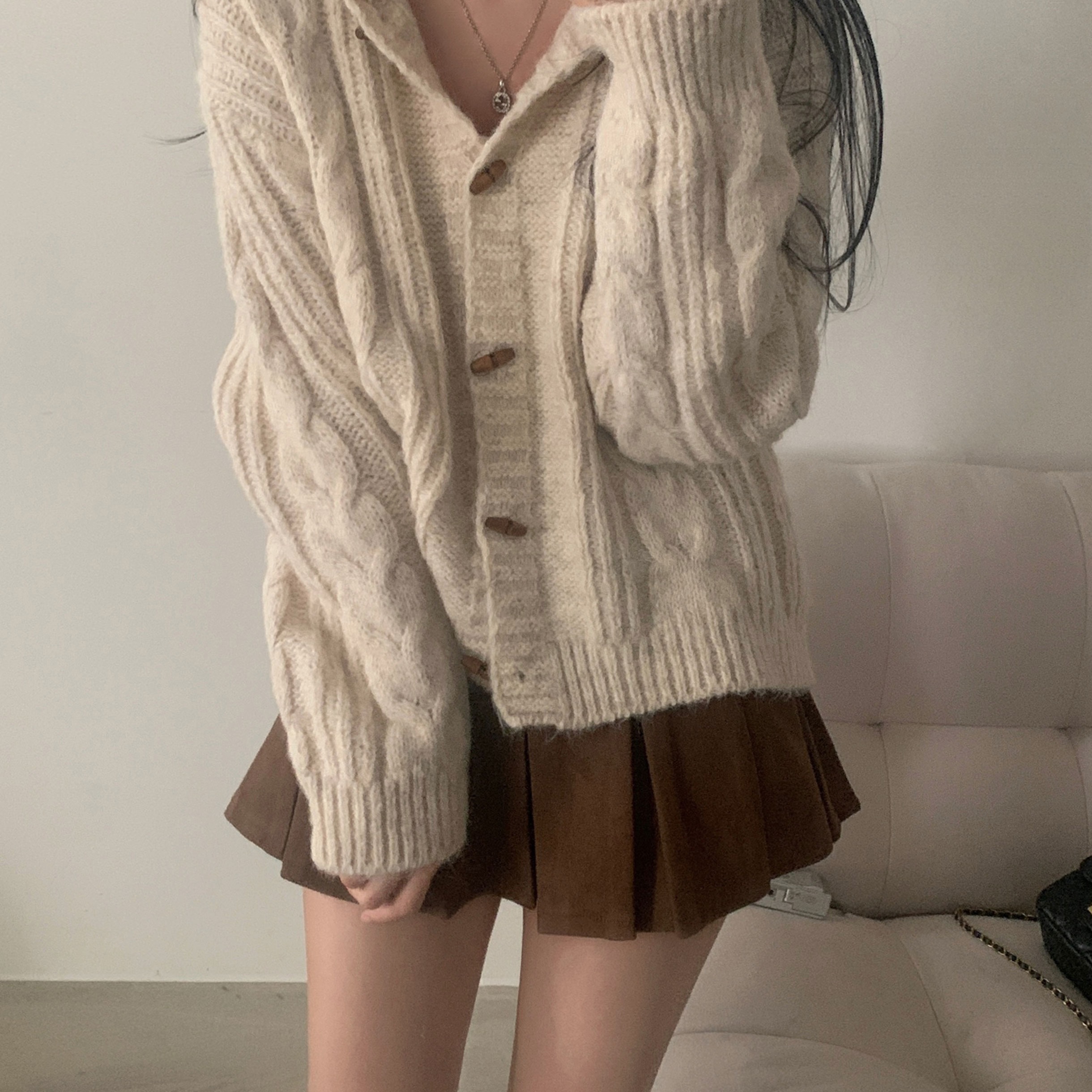 ダッフルツイストフード付きニットカーディガン