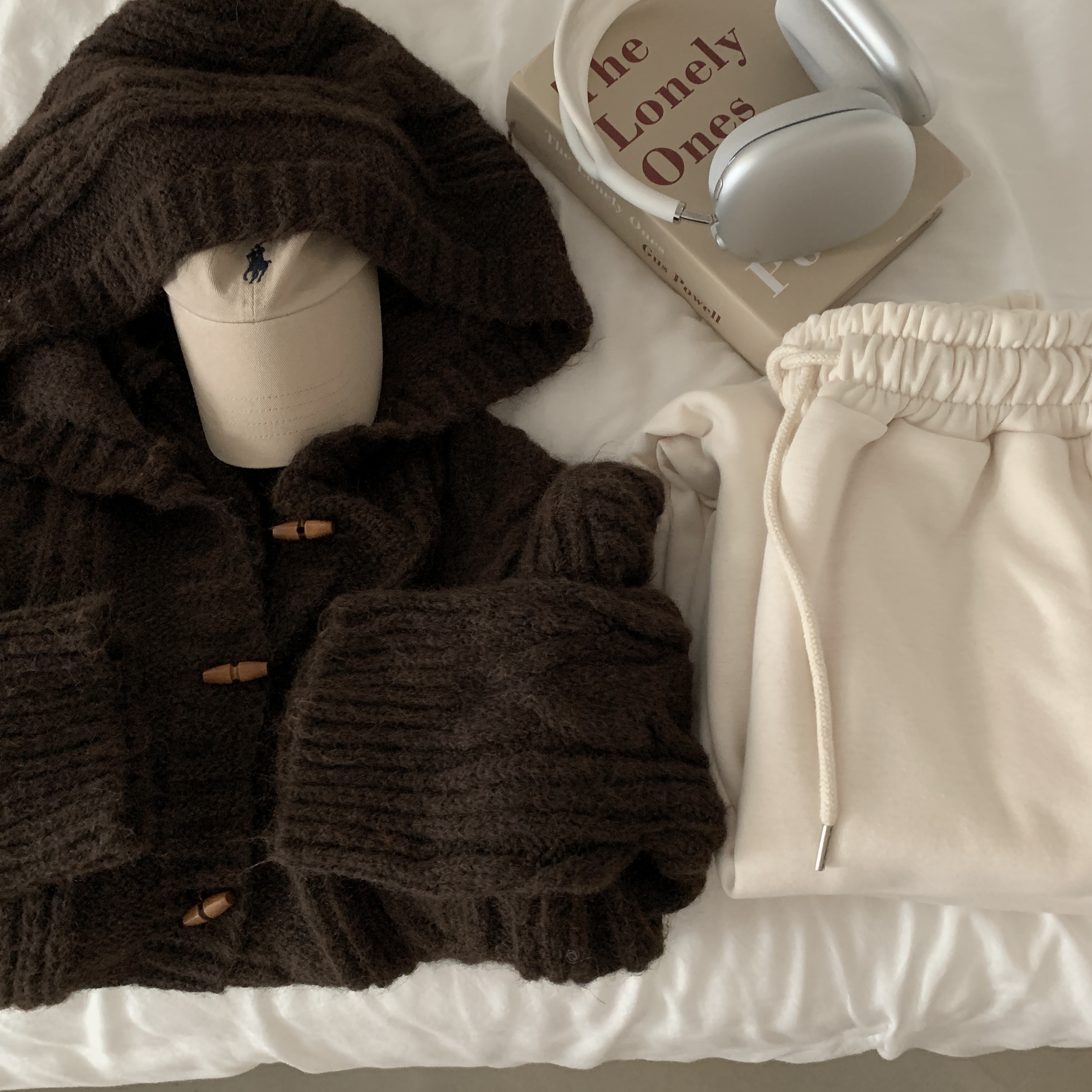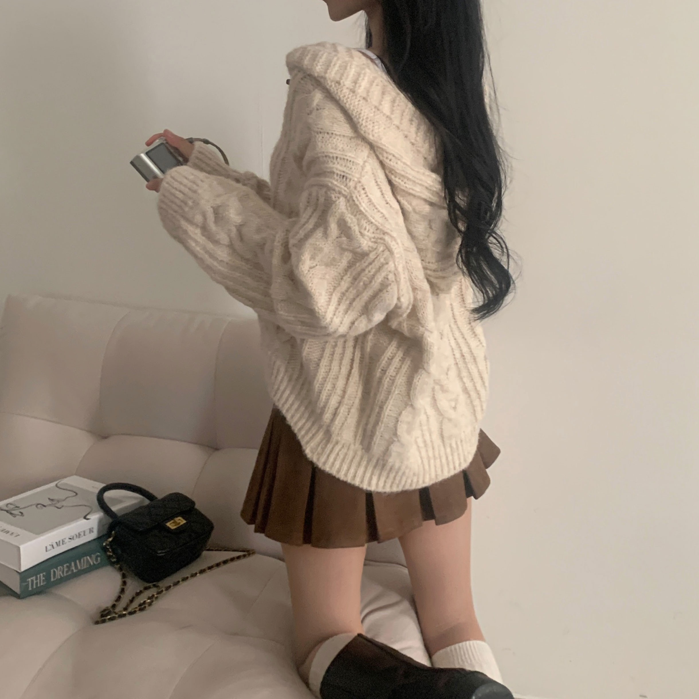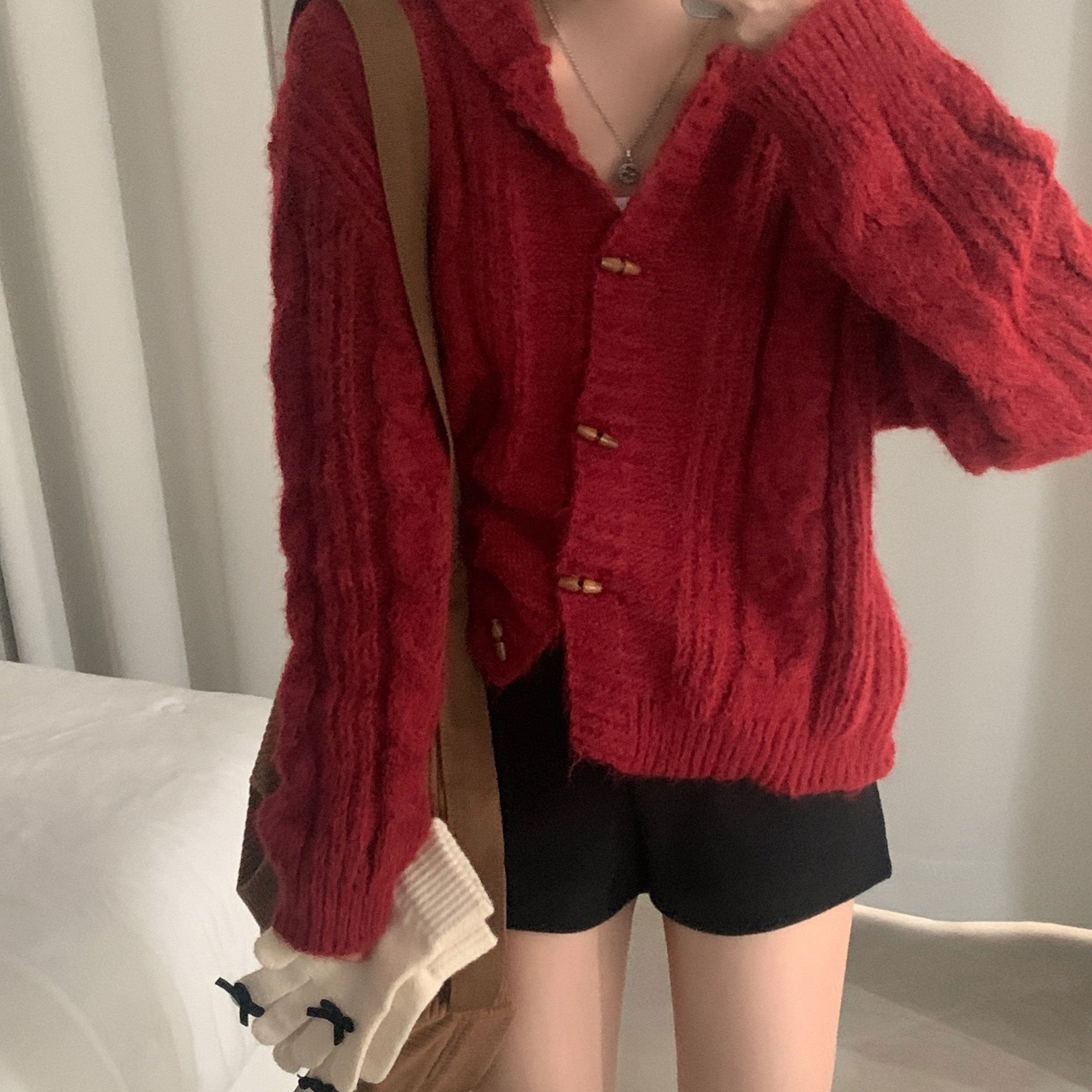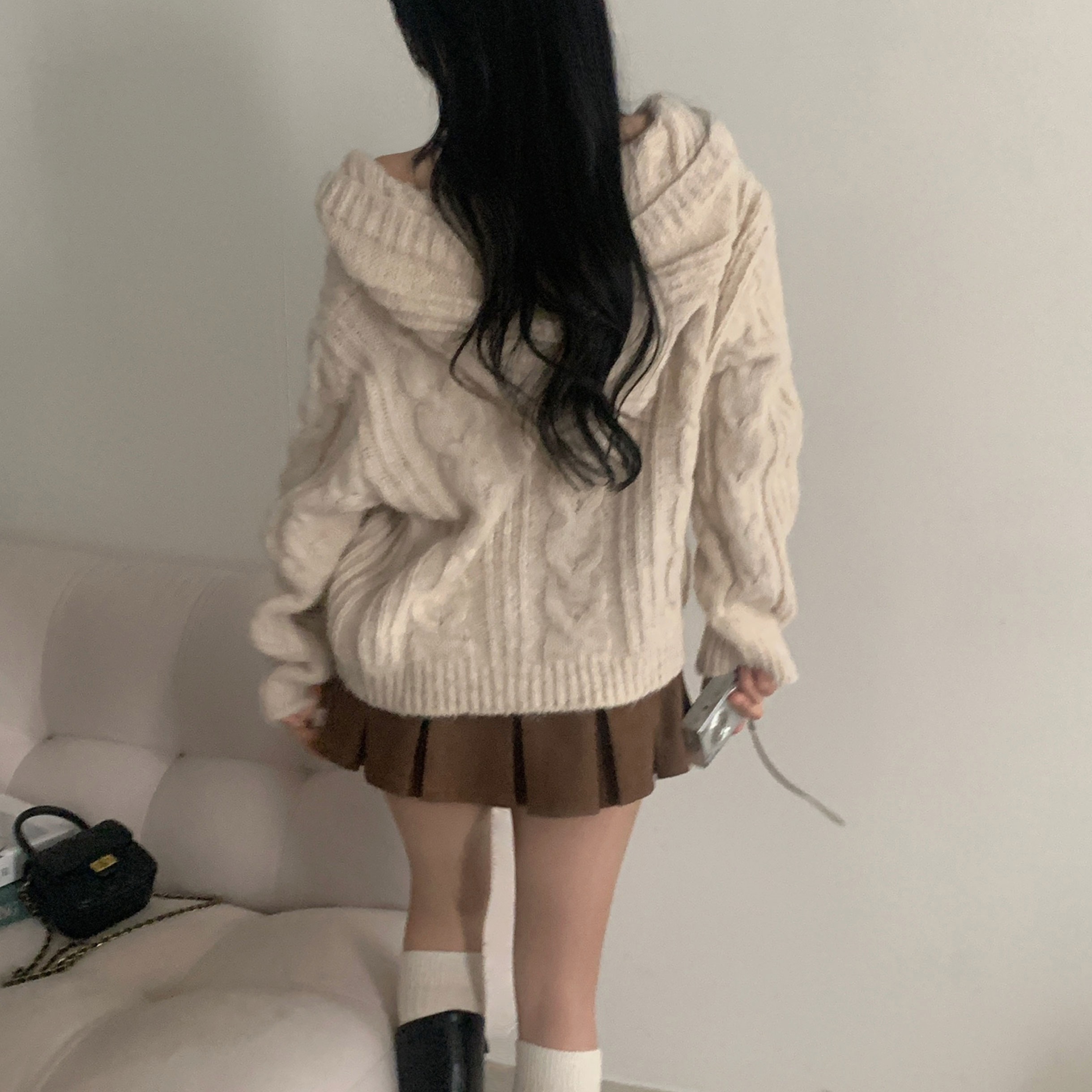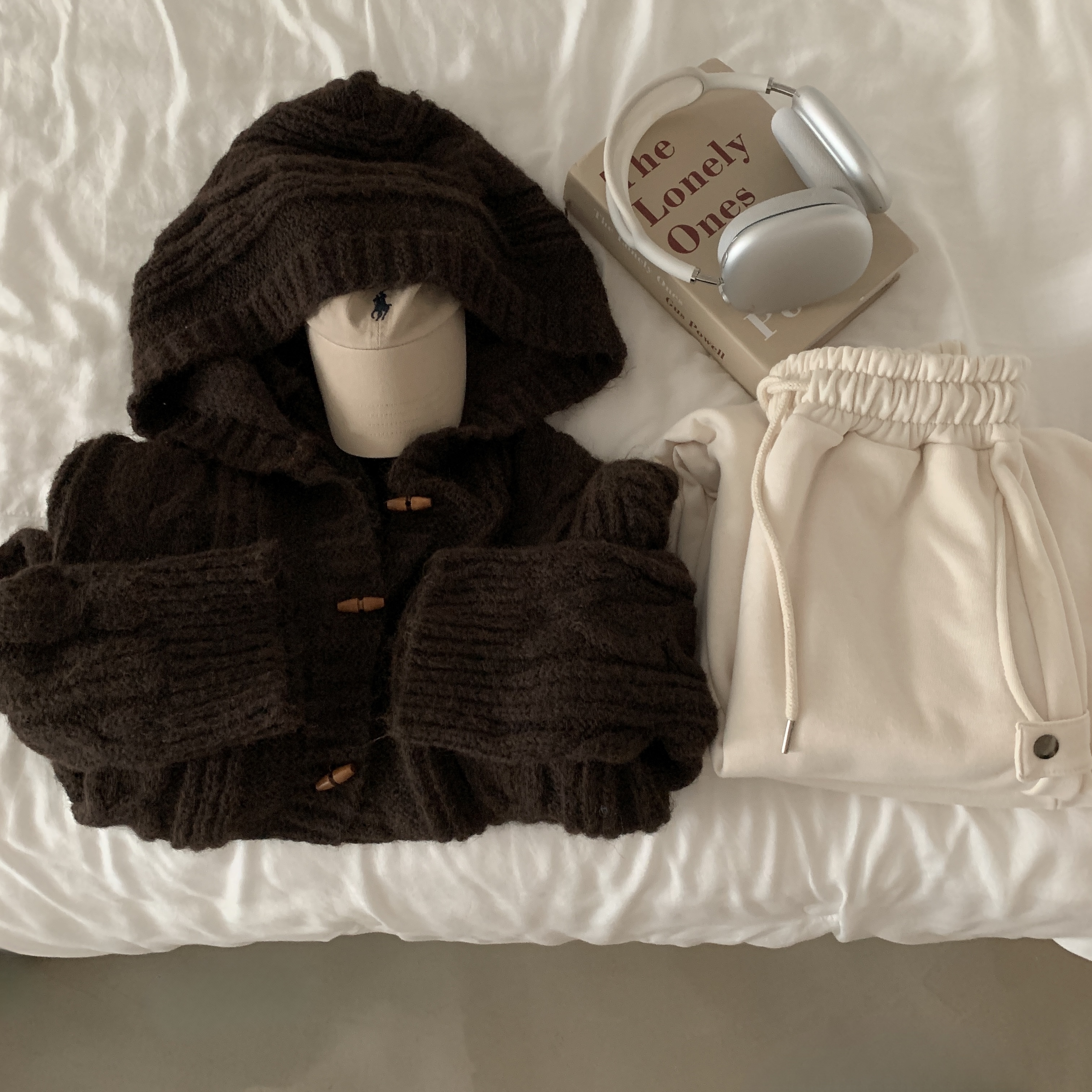 ダッフルツイストフード付きニットカーディガン