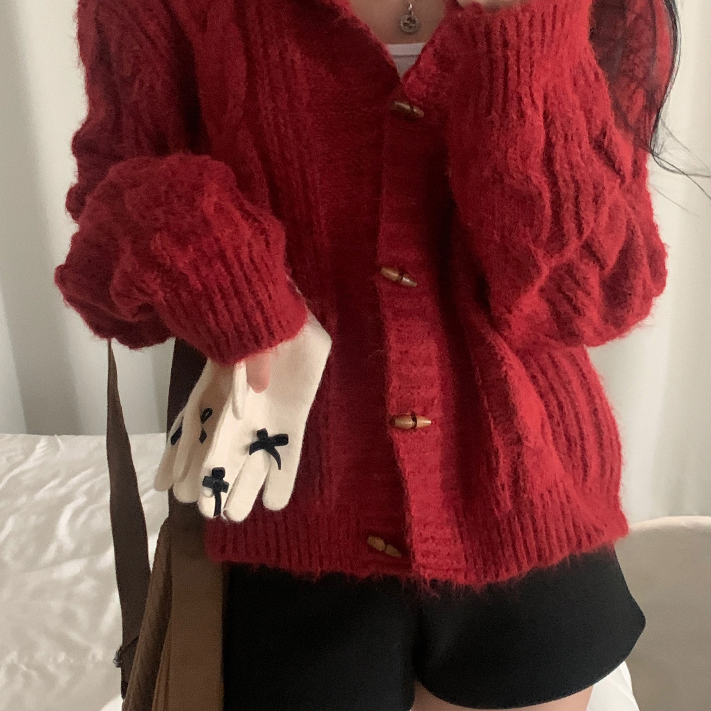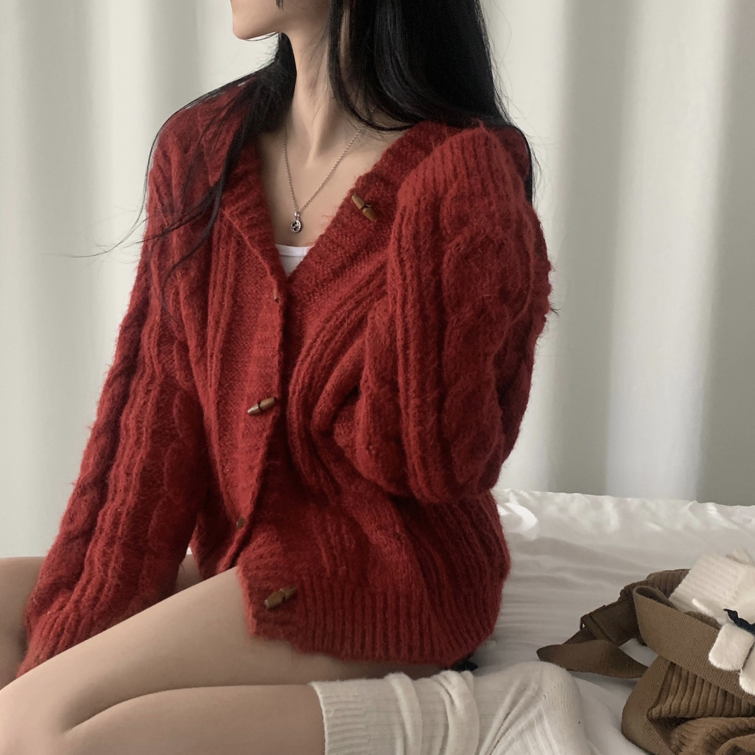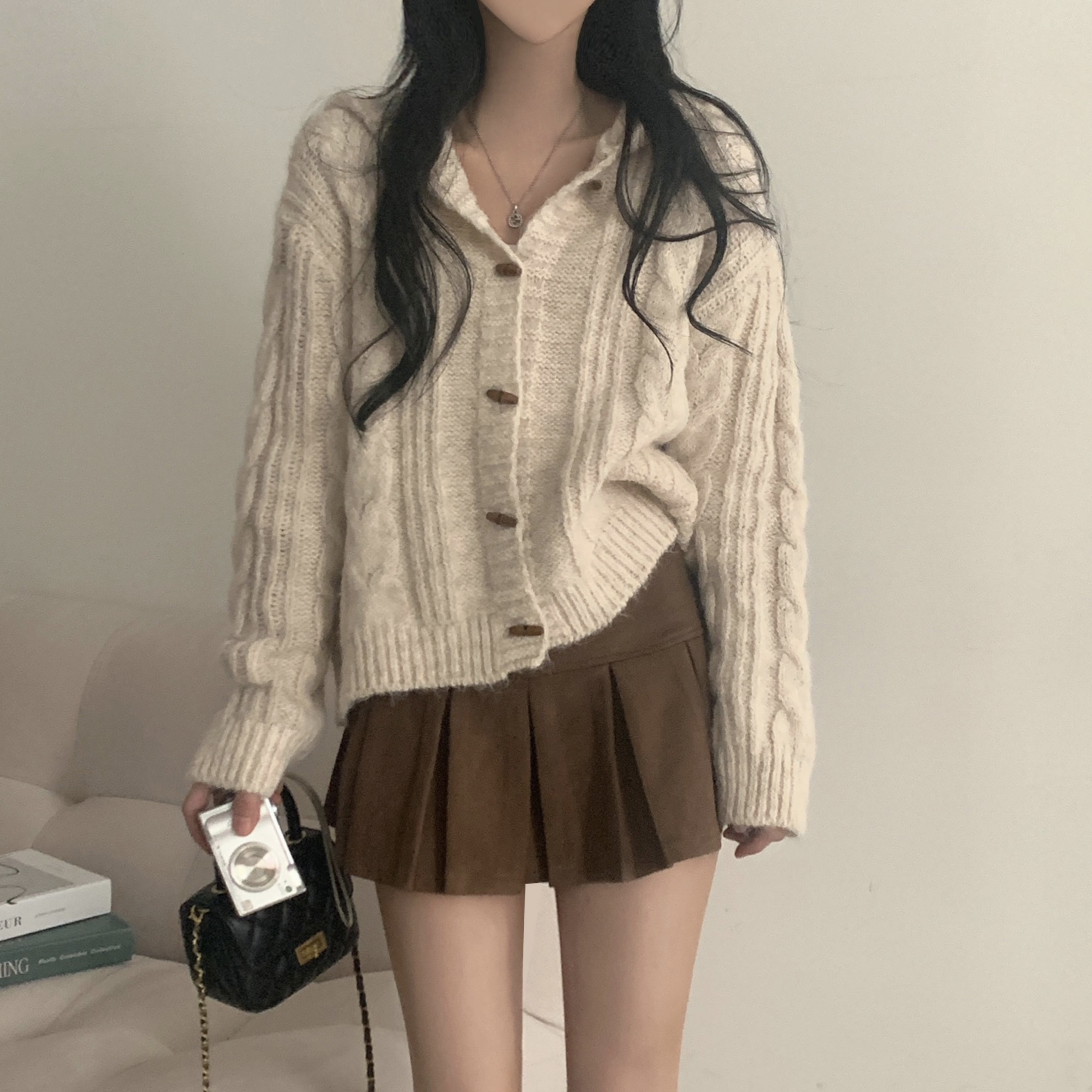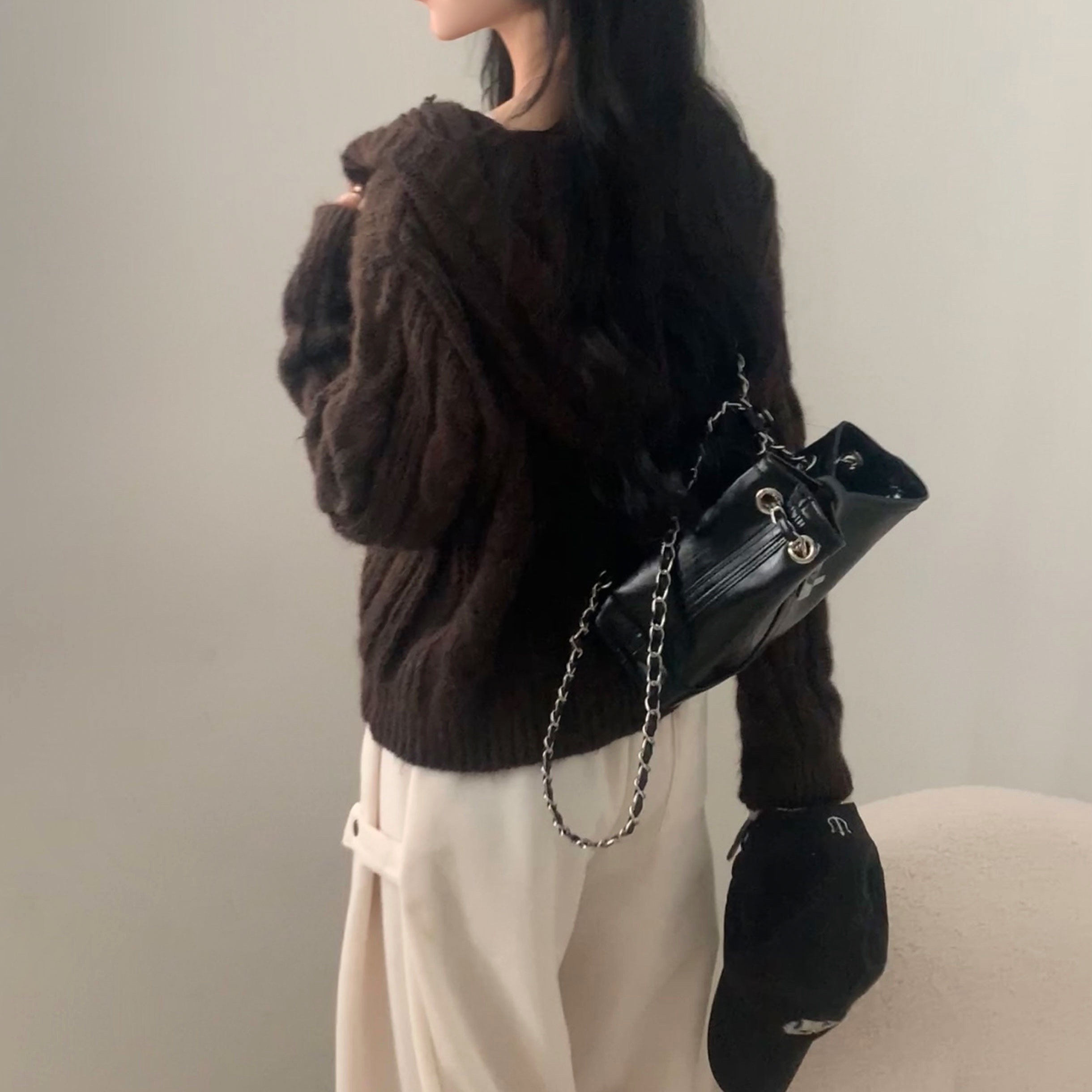 ダッフルツイストフード付きニットカーディガン