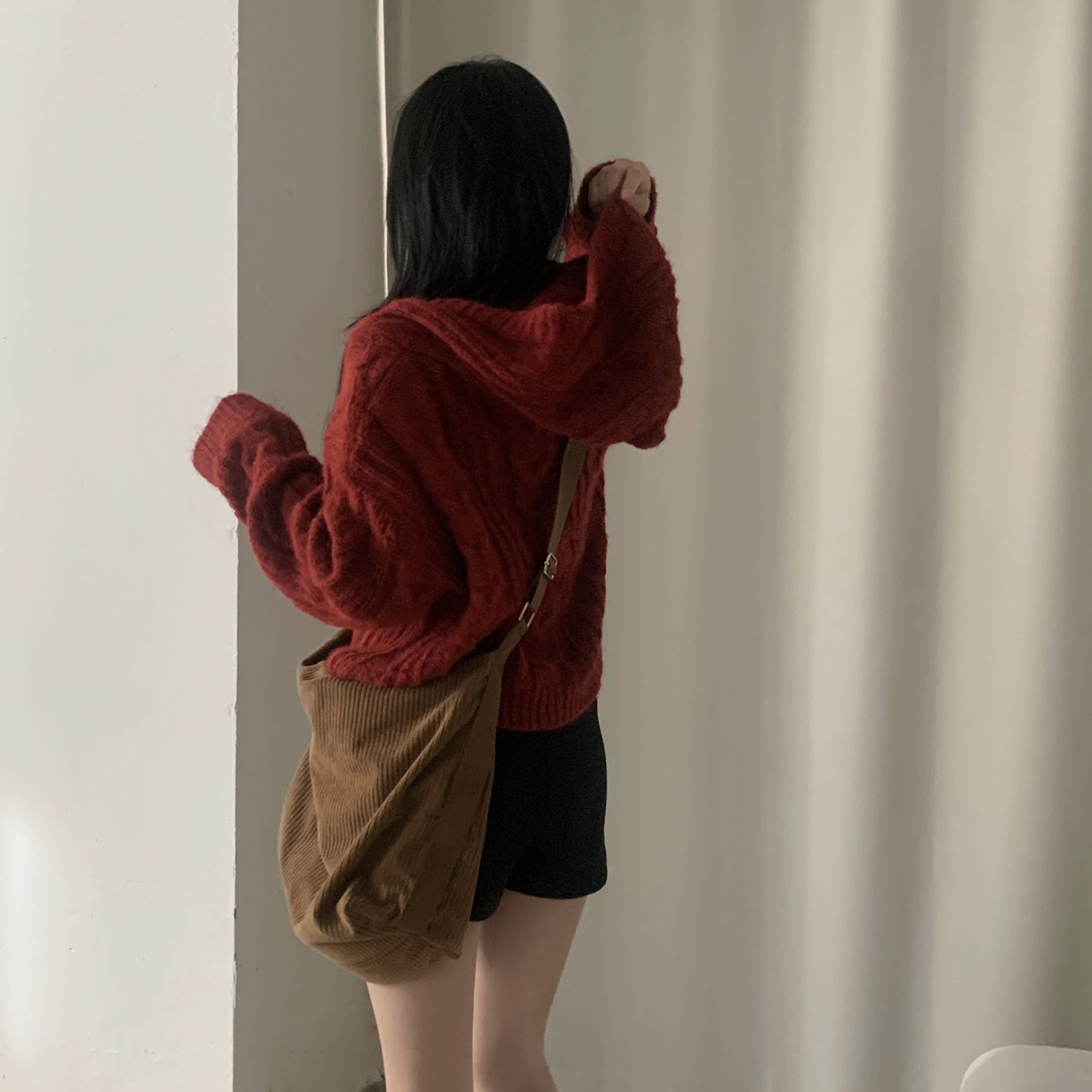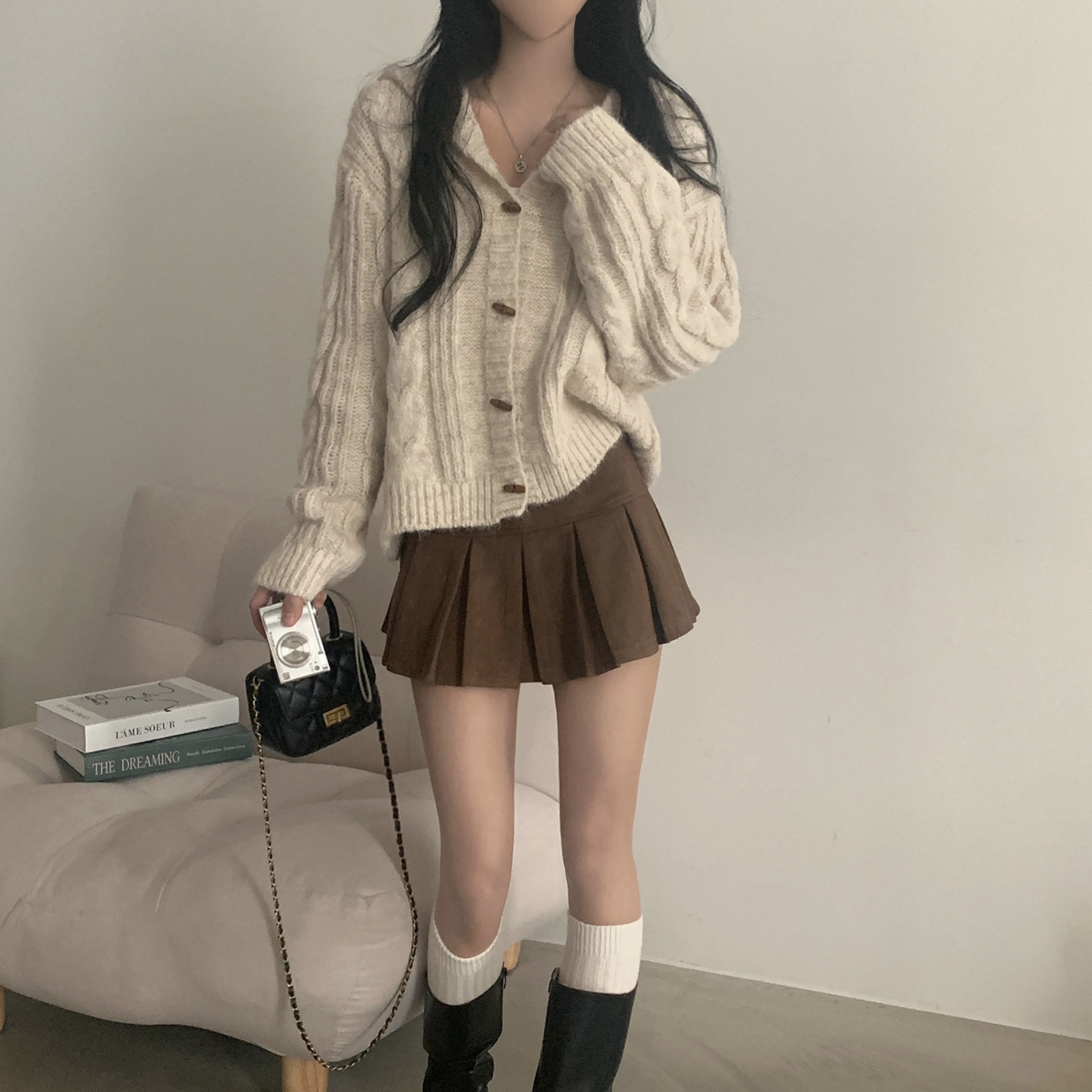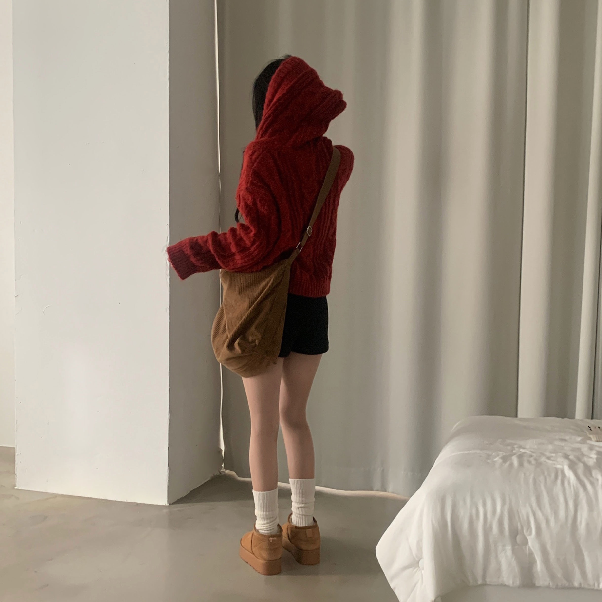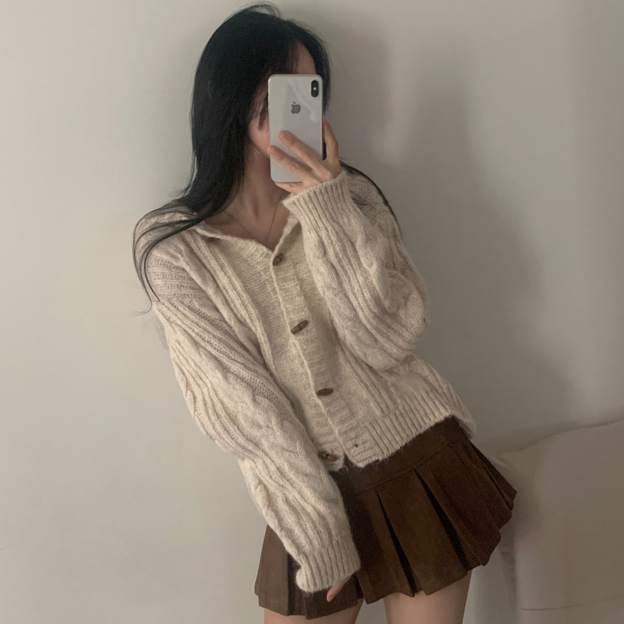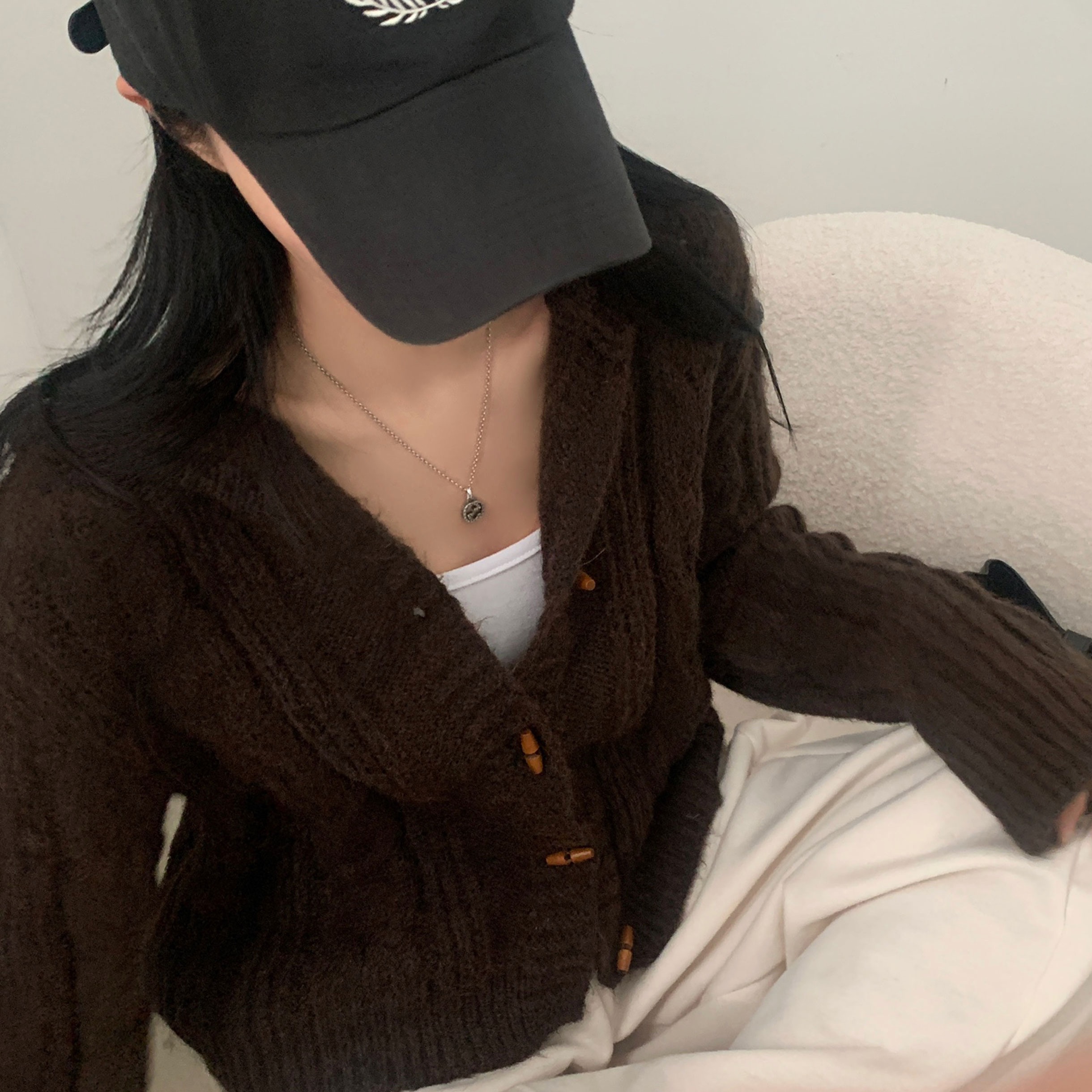 ダッフルツイストフード付きニットカーディガン