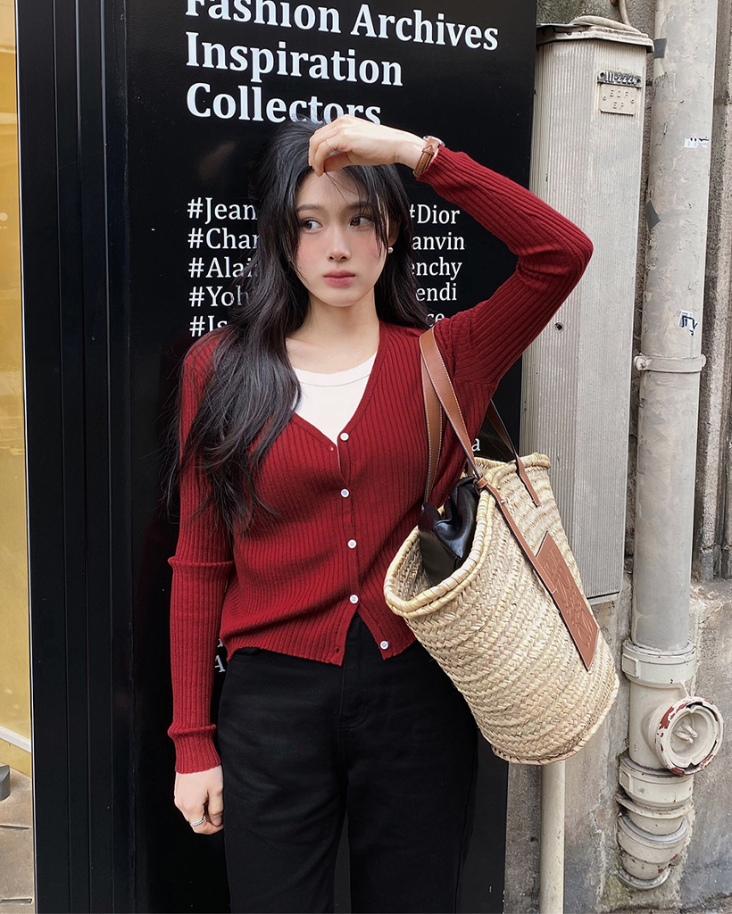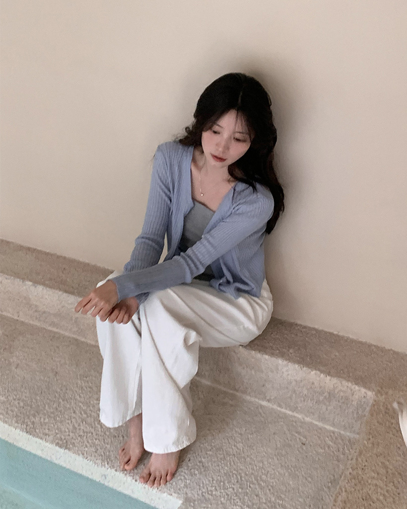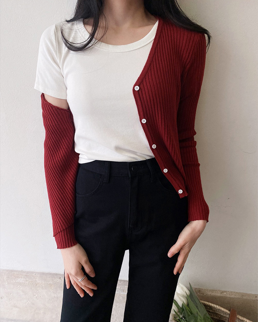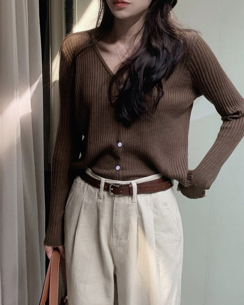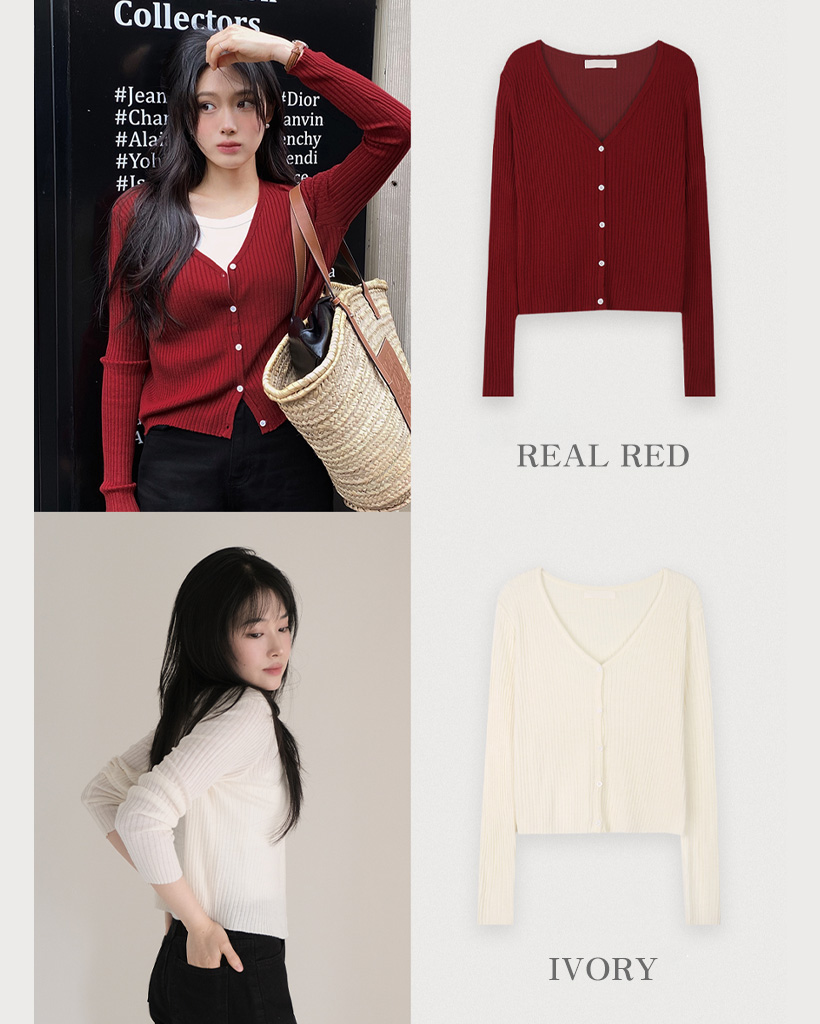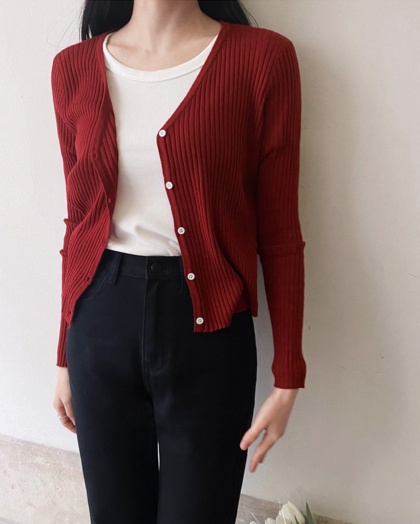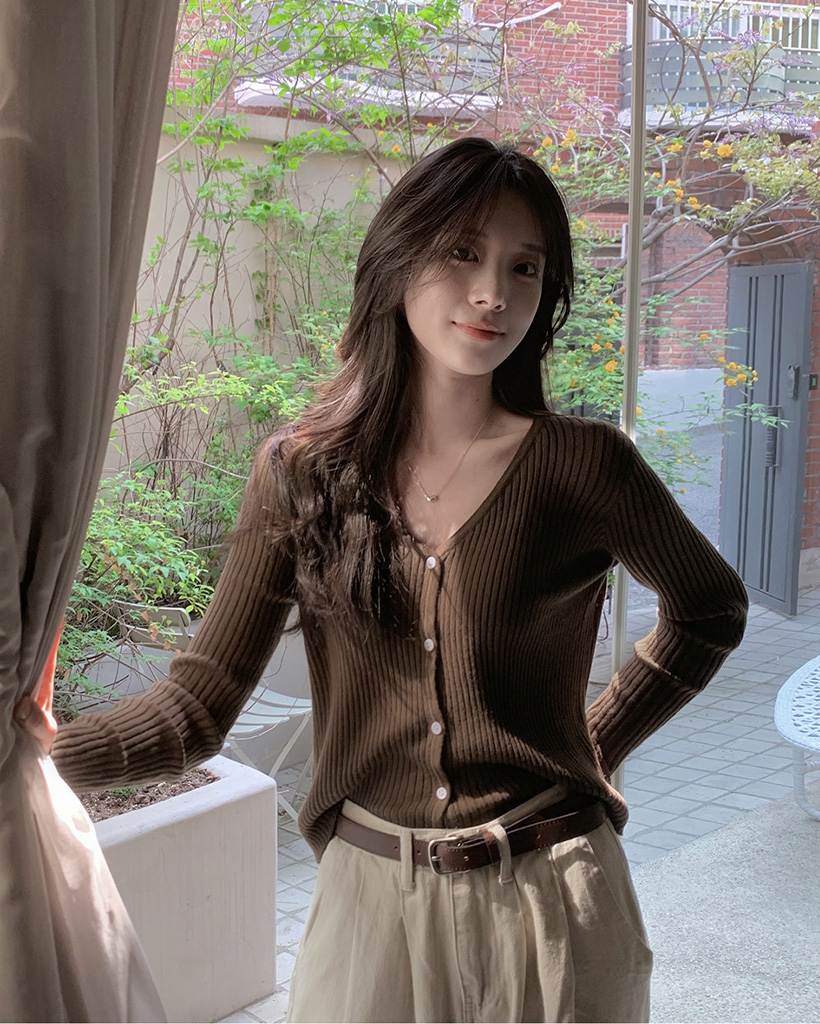 7色サマーVネックリブカーディガン (春夏対応)