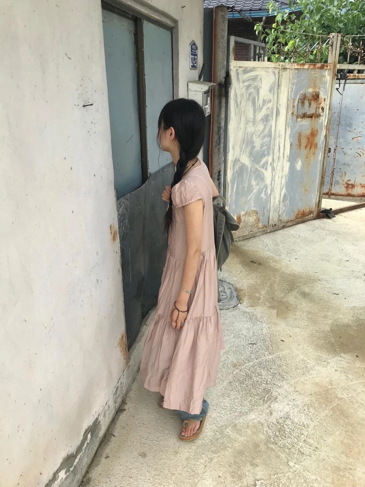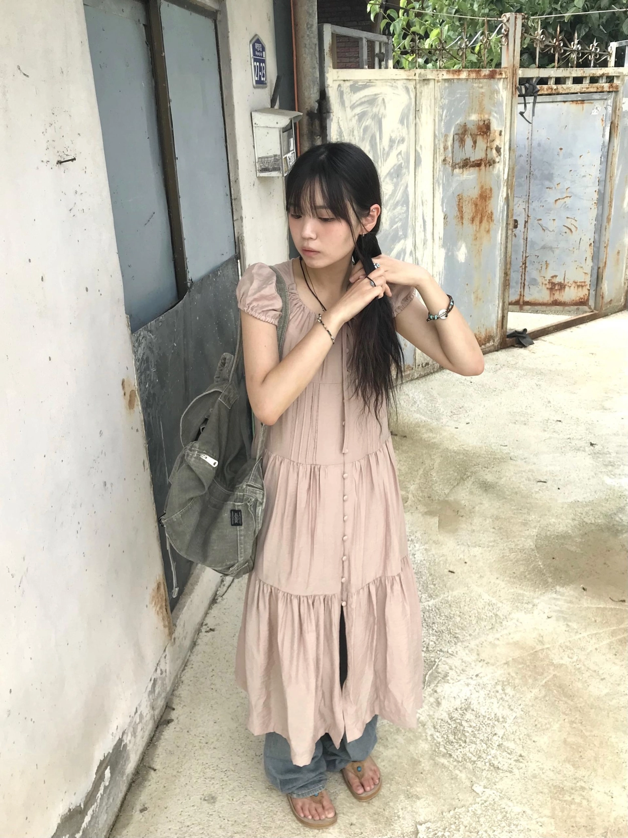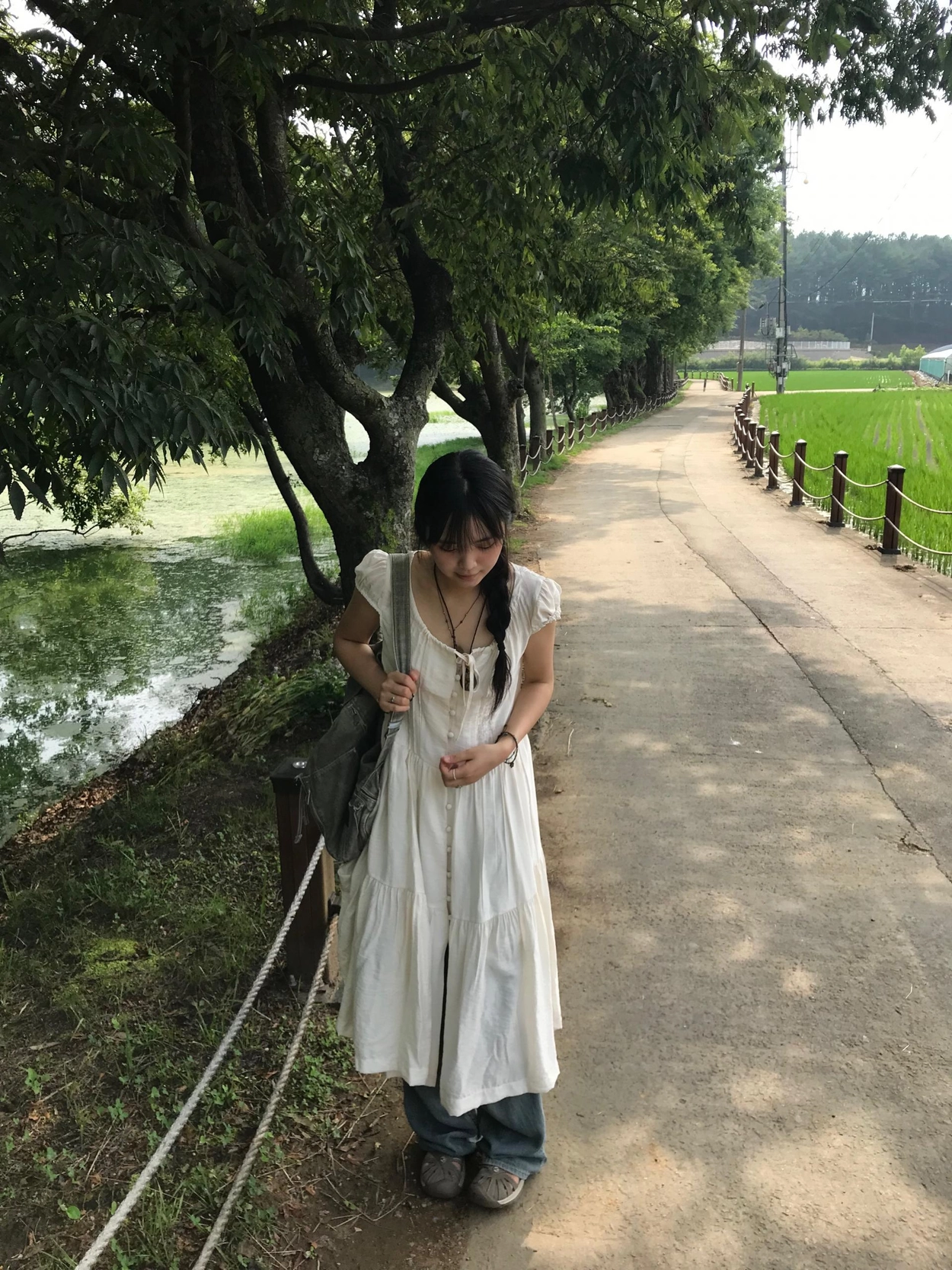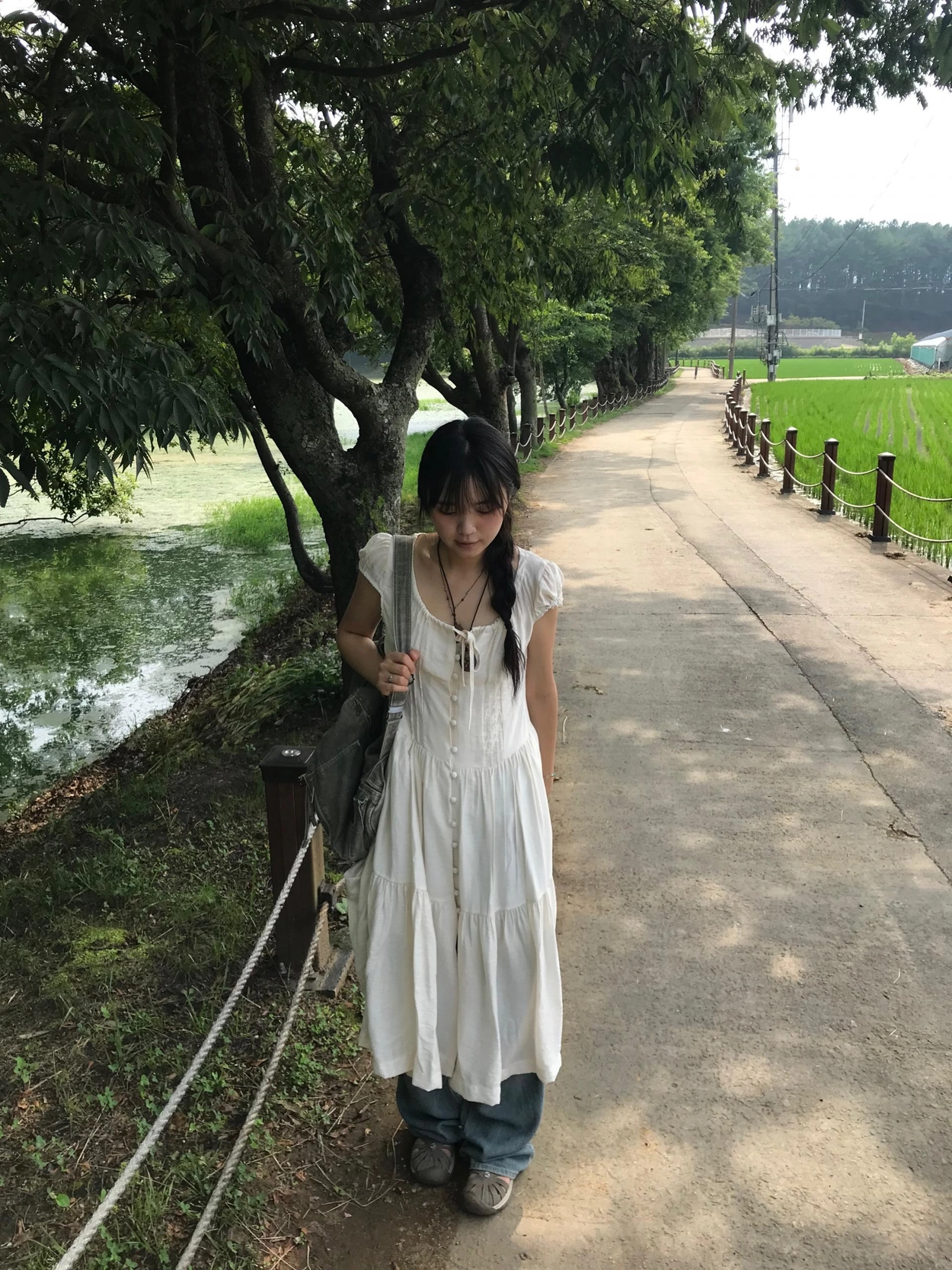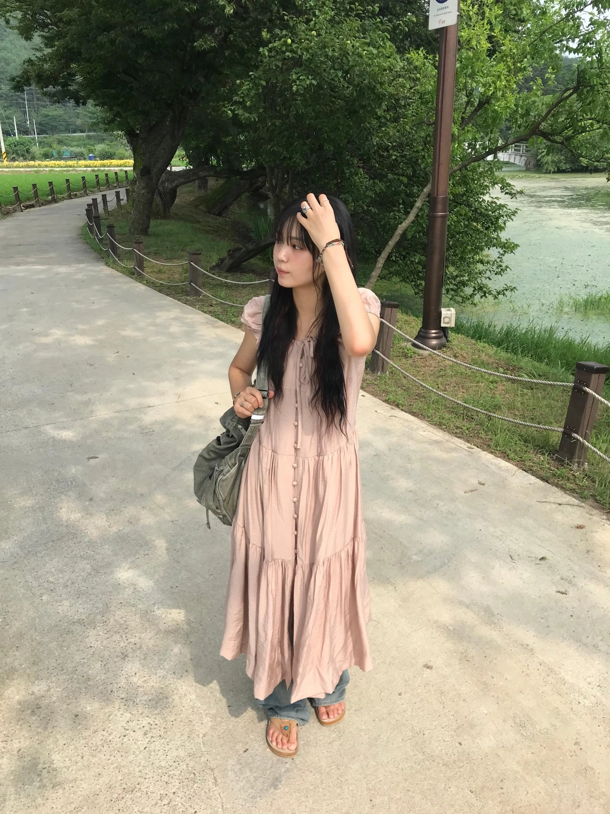 リボン半袖ロングワンピース
