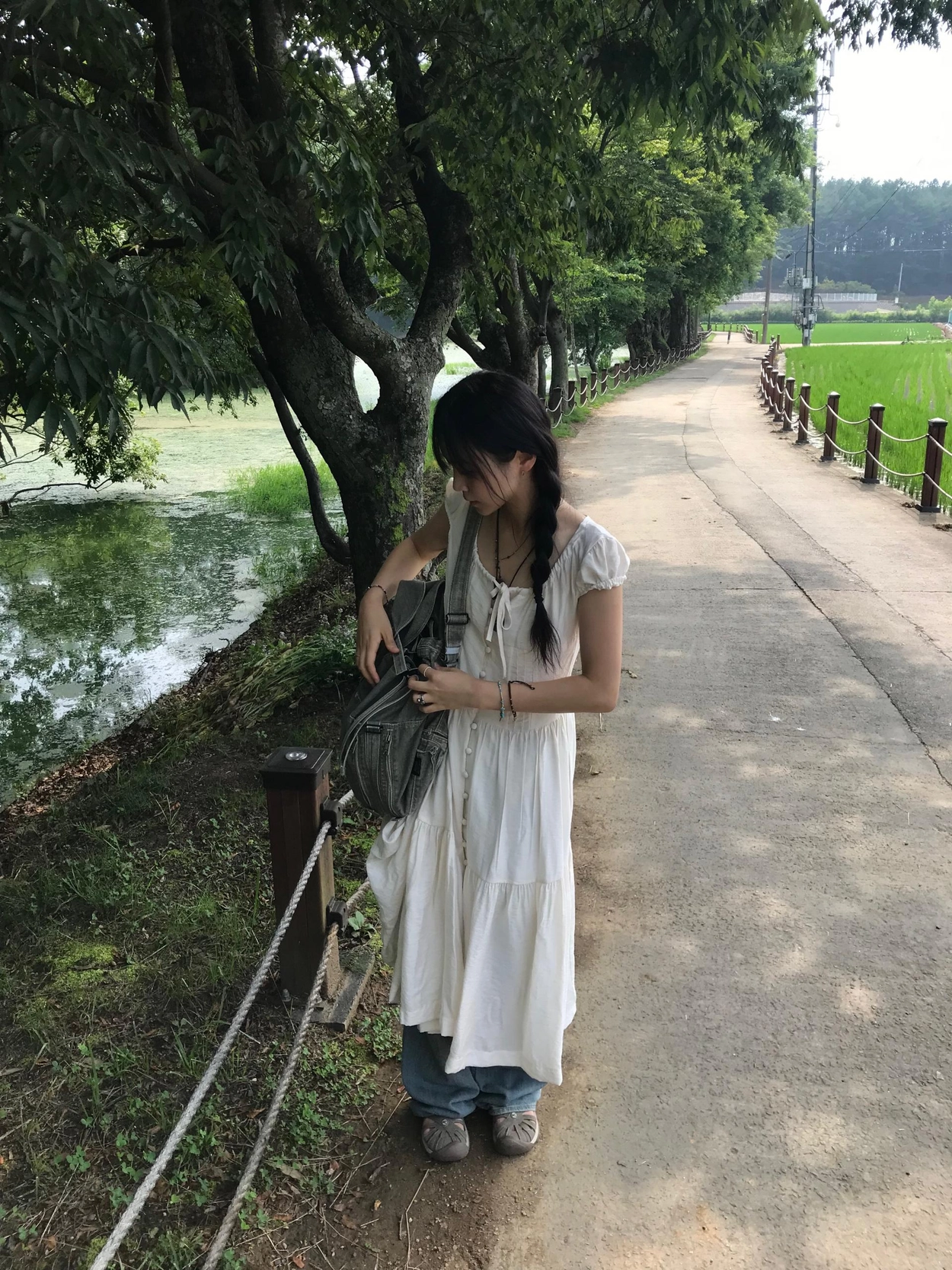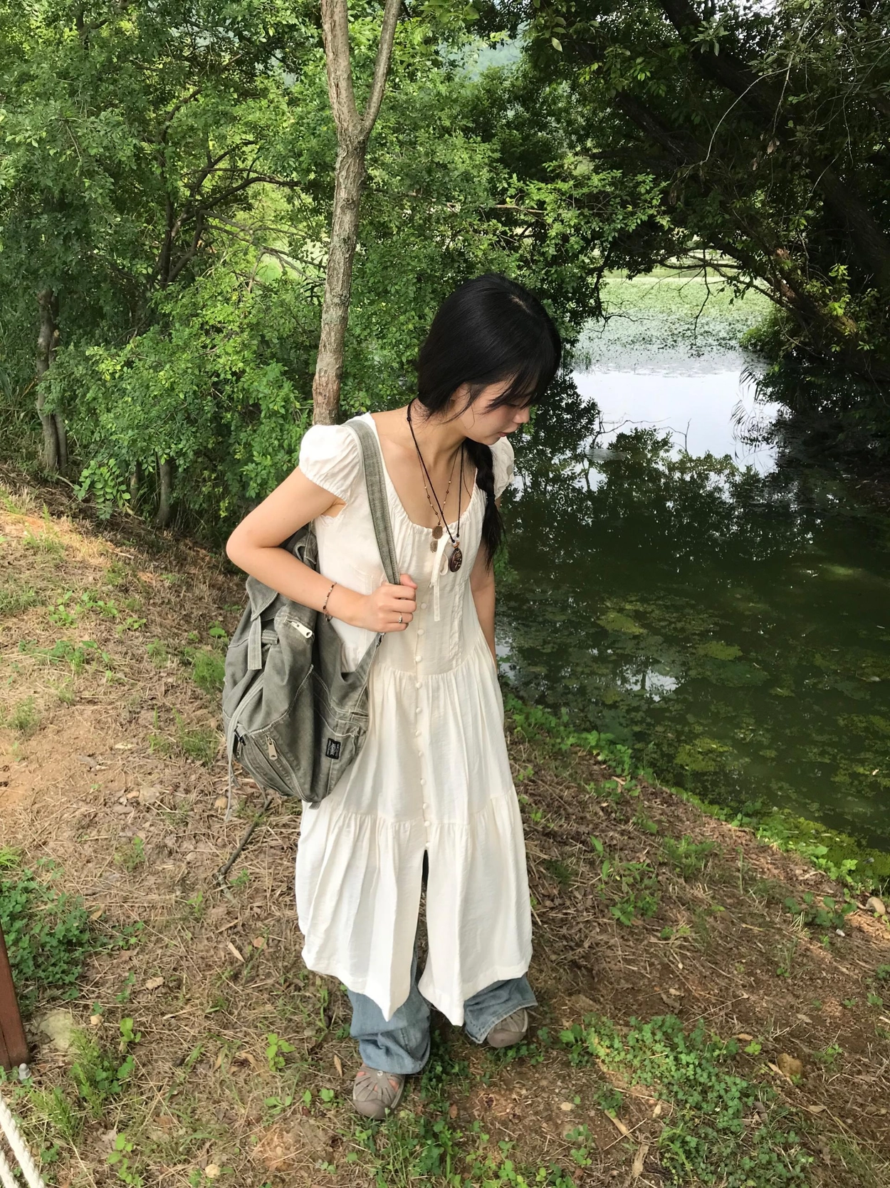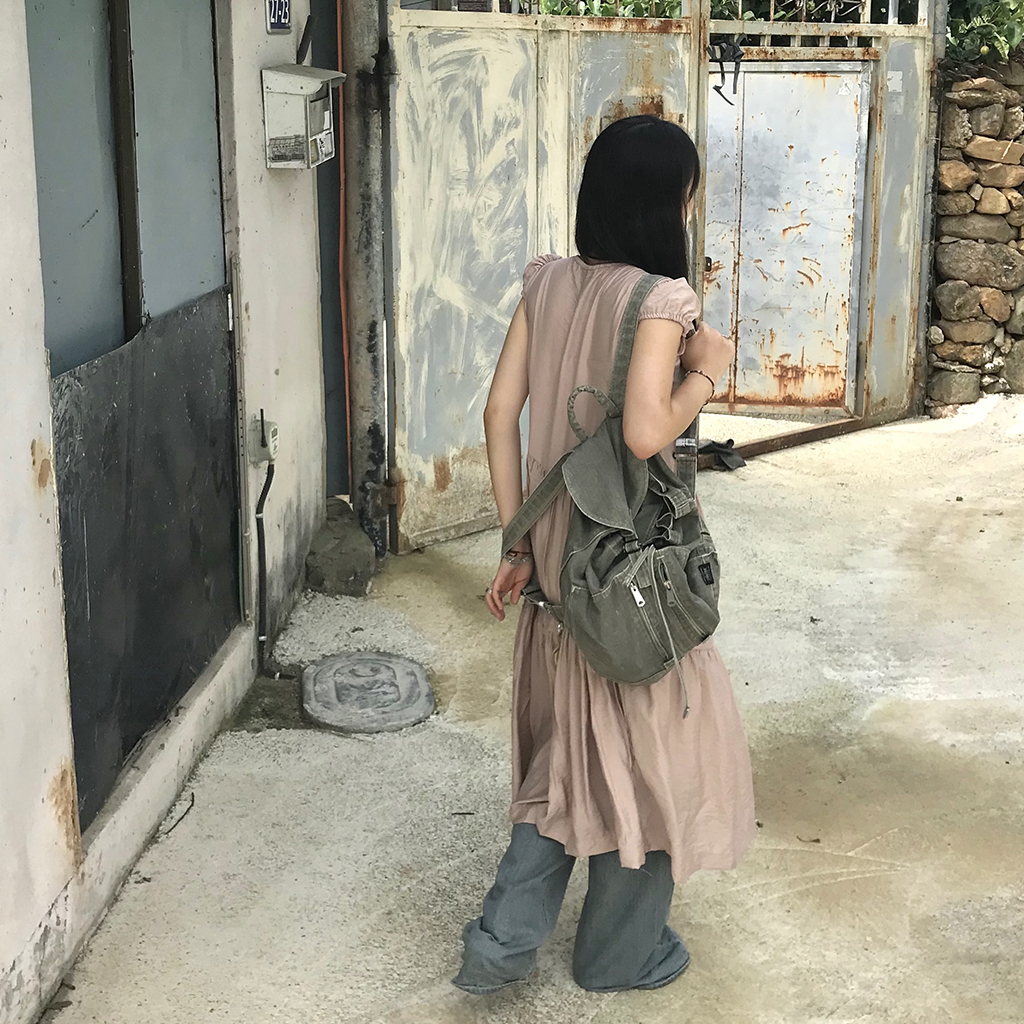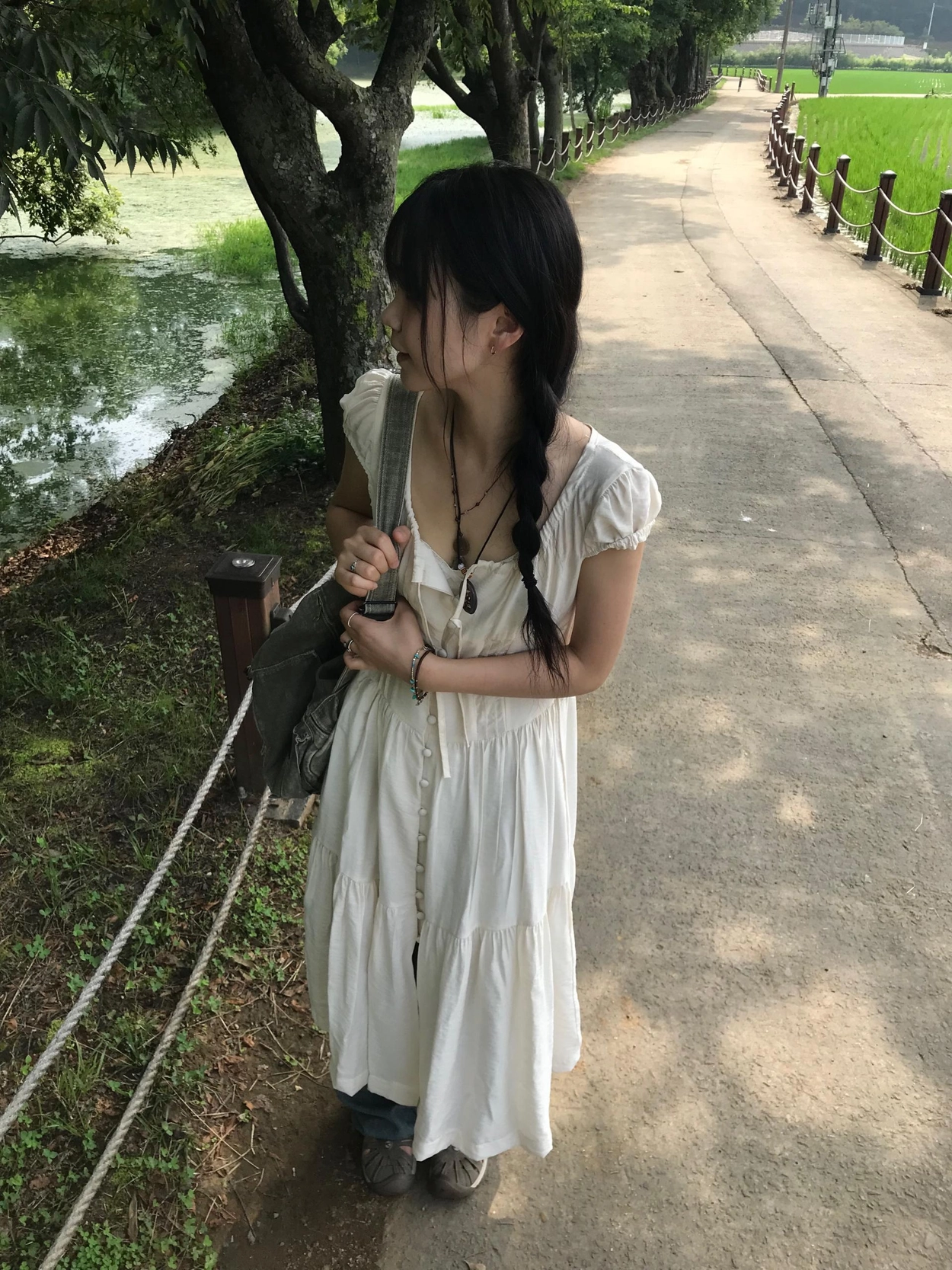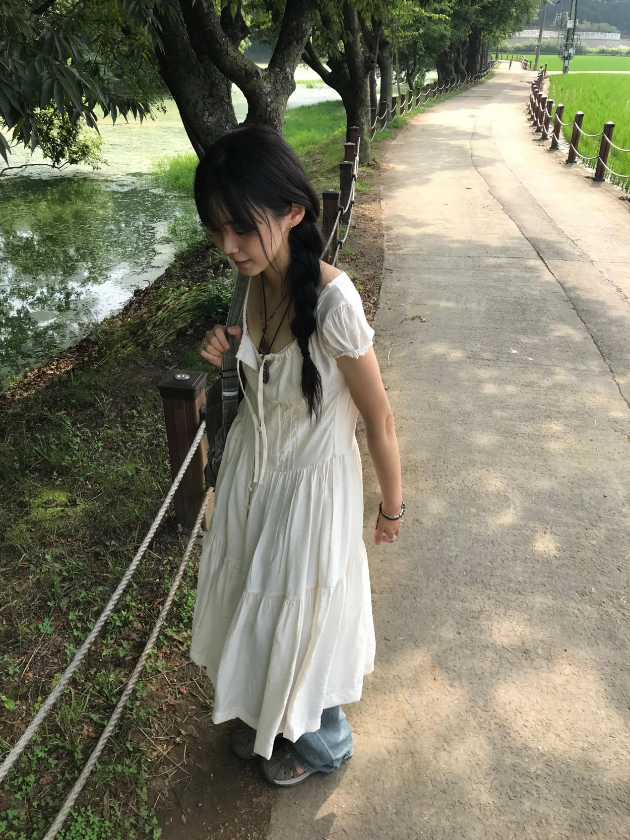 リボン半袖ロングワンピース