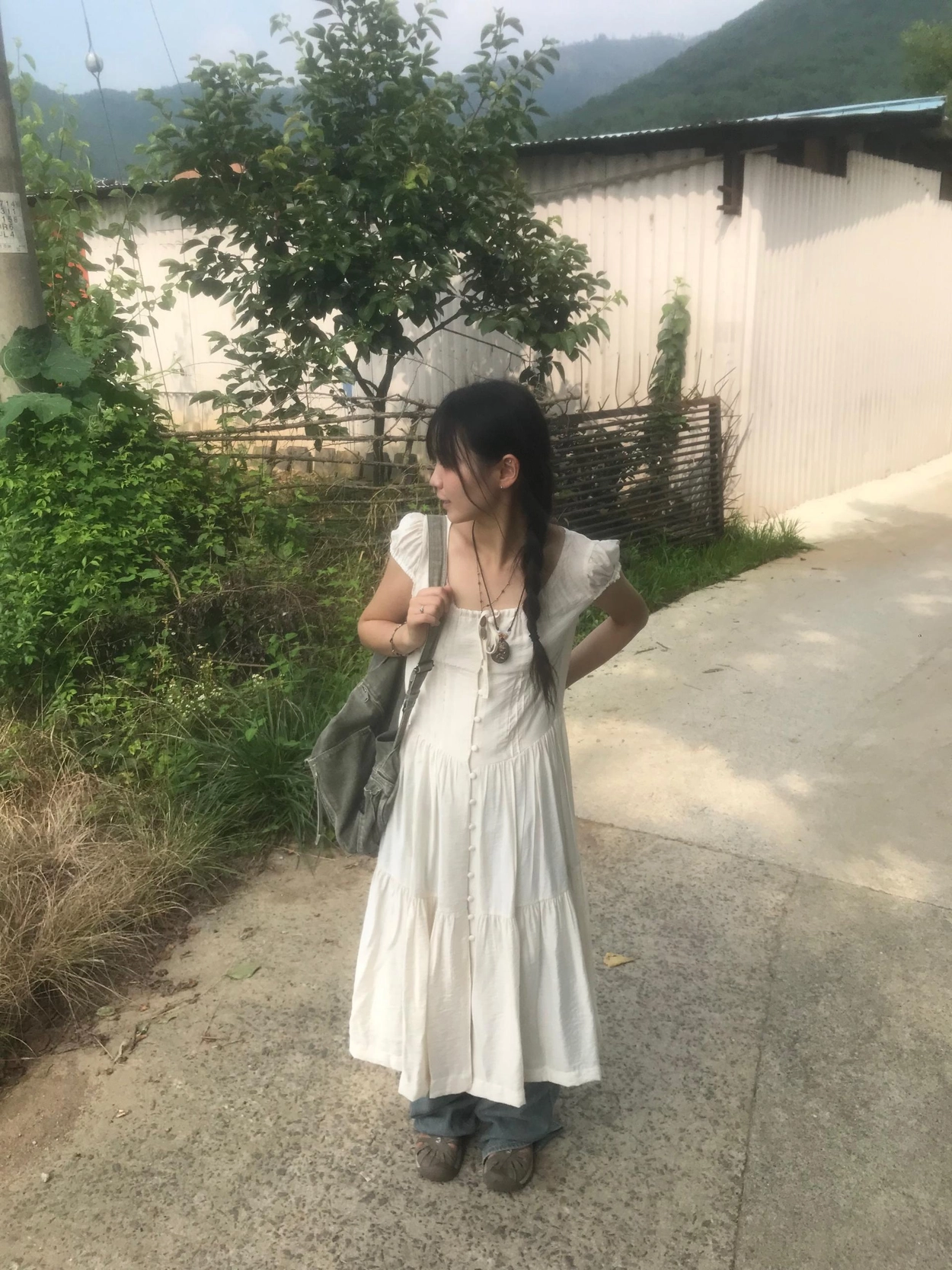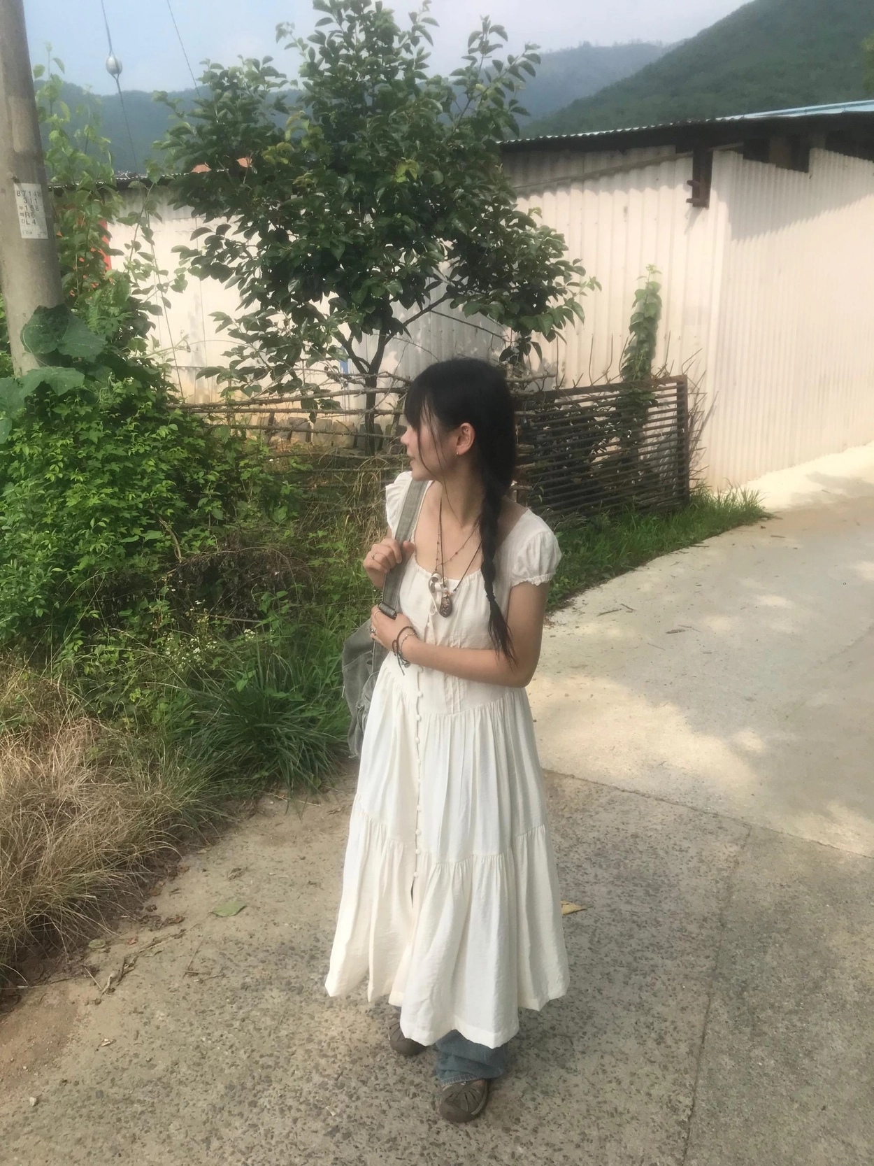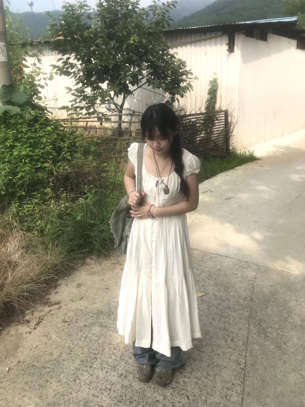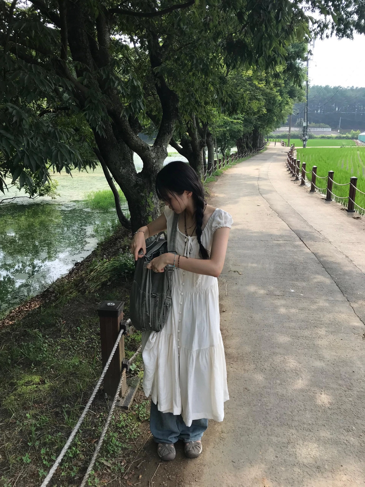 リボン半袖ロングワンピース