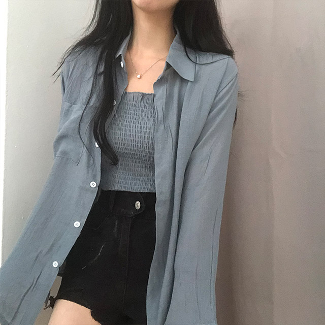 【SHIRT】肩幅 44 / 胸囲 50 / アームホール 22 / 袖丈 54 / 裾幅 48 / 着丈 62