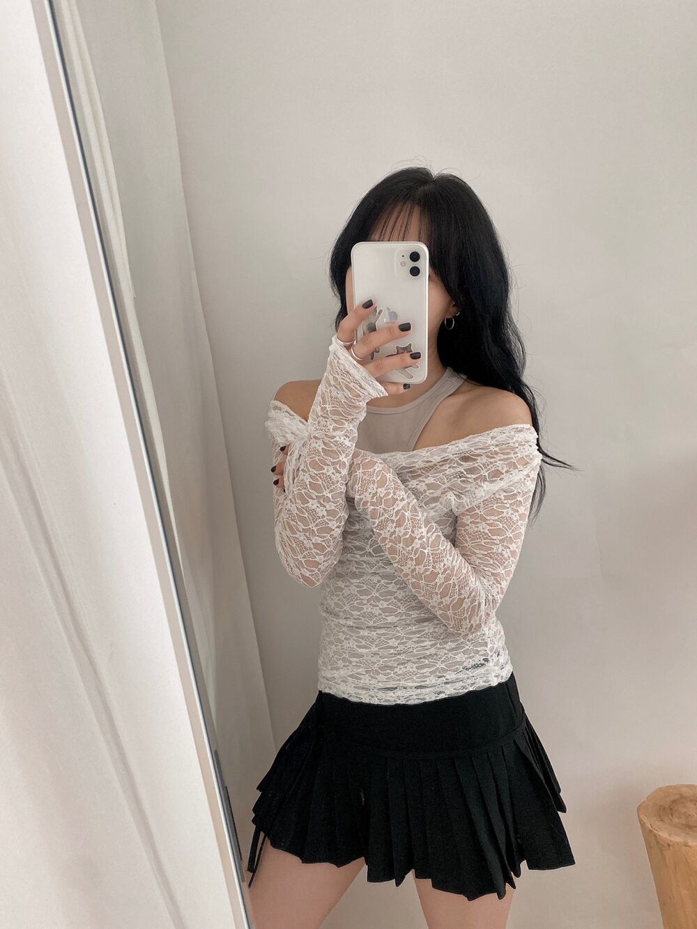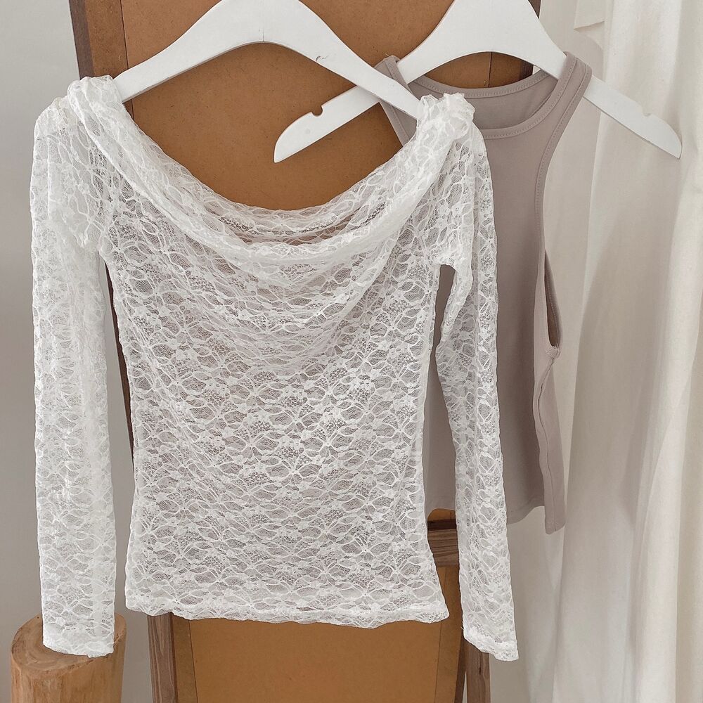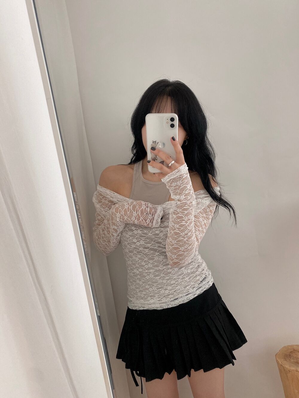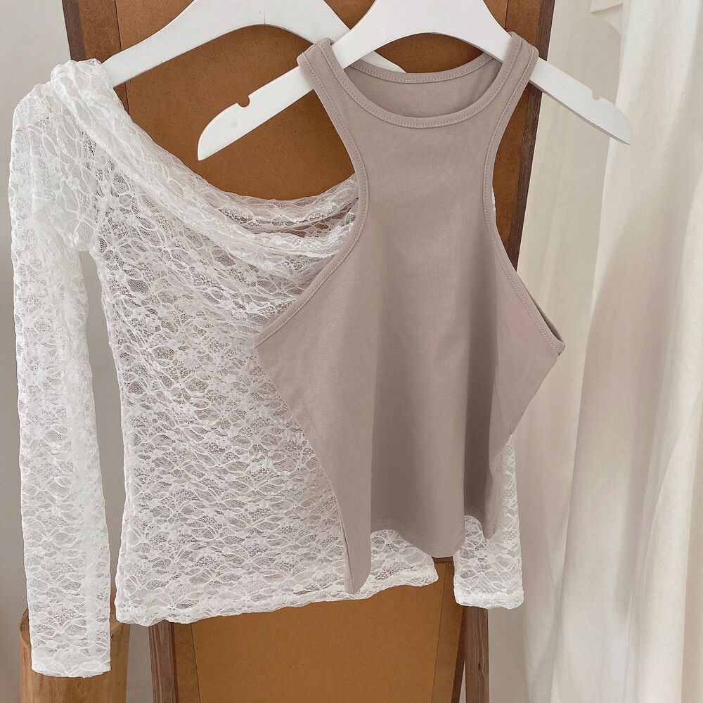 [SET] ホルターネックノースリーブ+シースルーレースTシャツセット