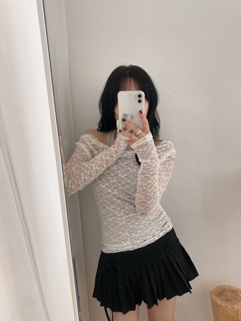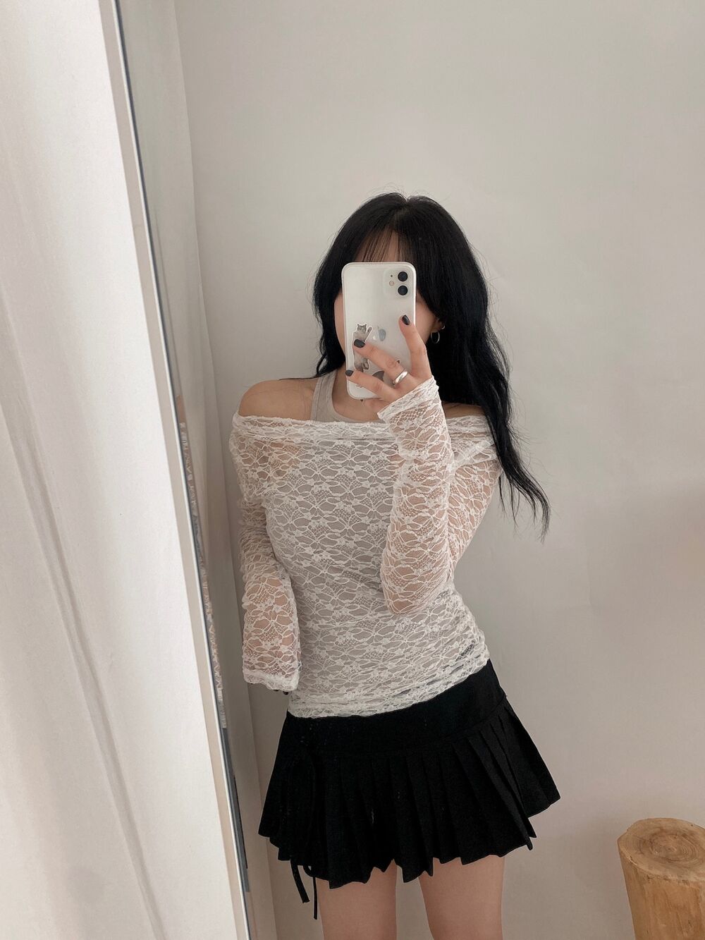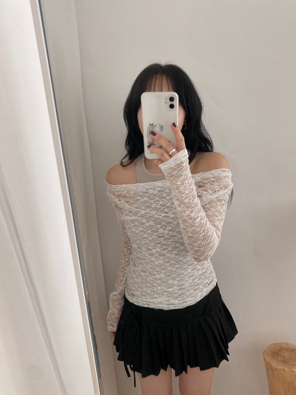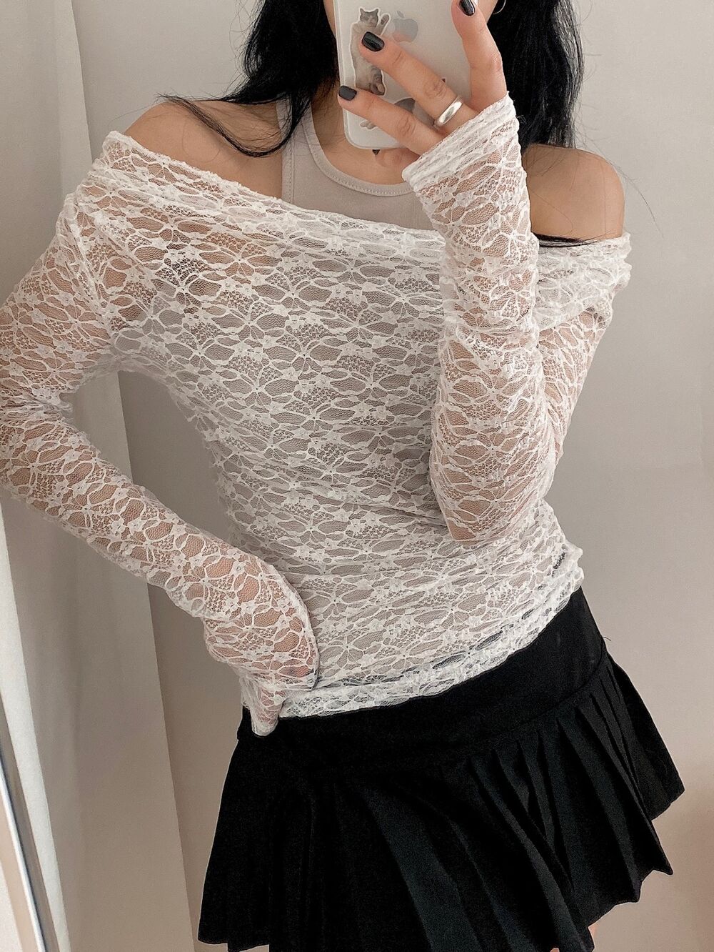 [SET] ホルターネックノースリーブ+シースルーレースTシャツセット