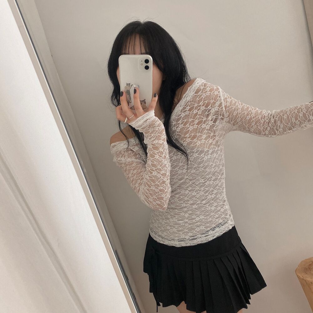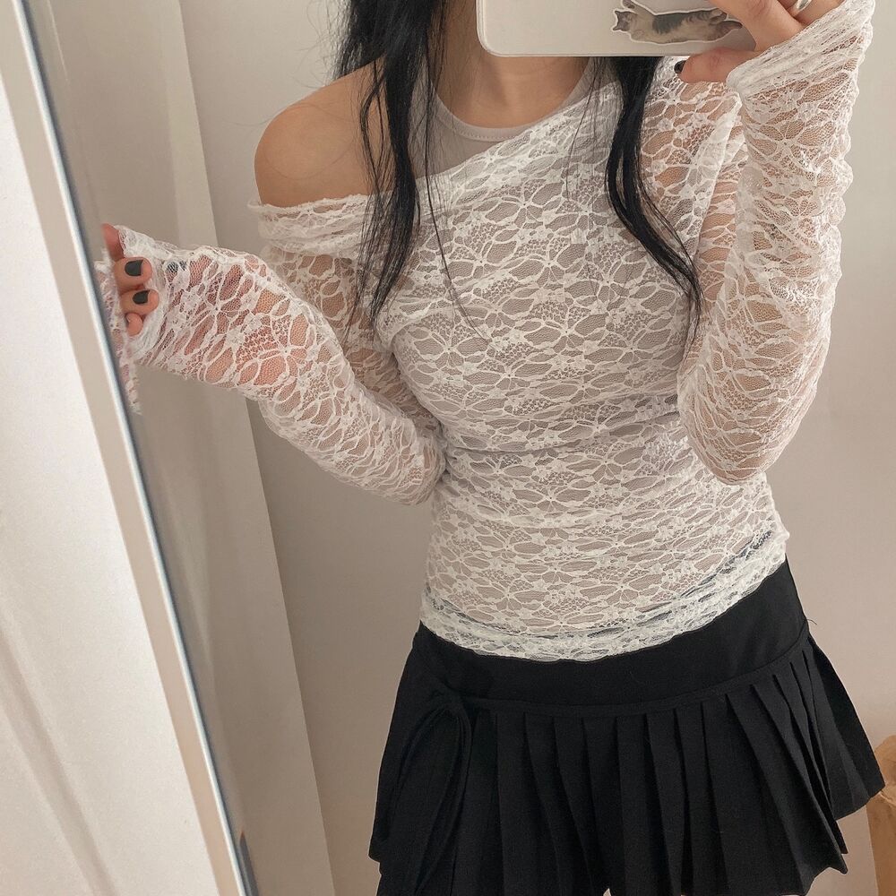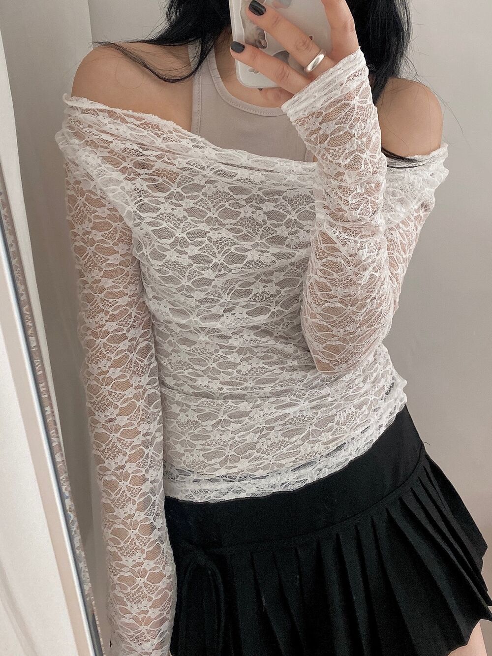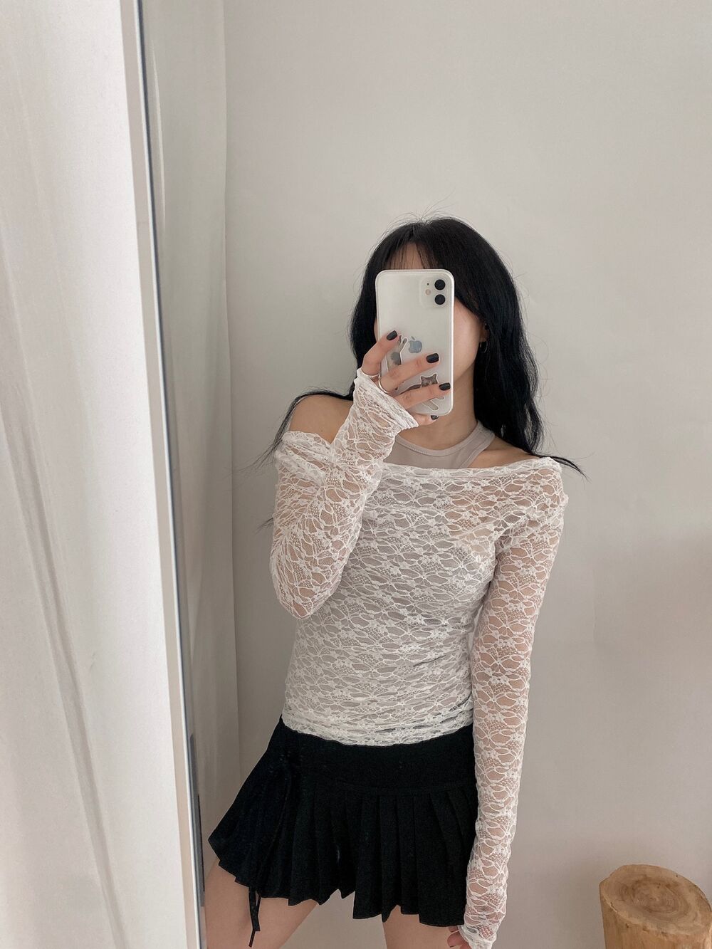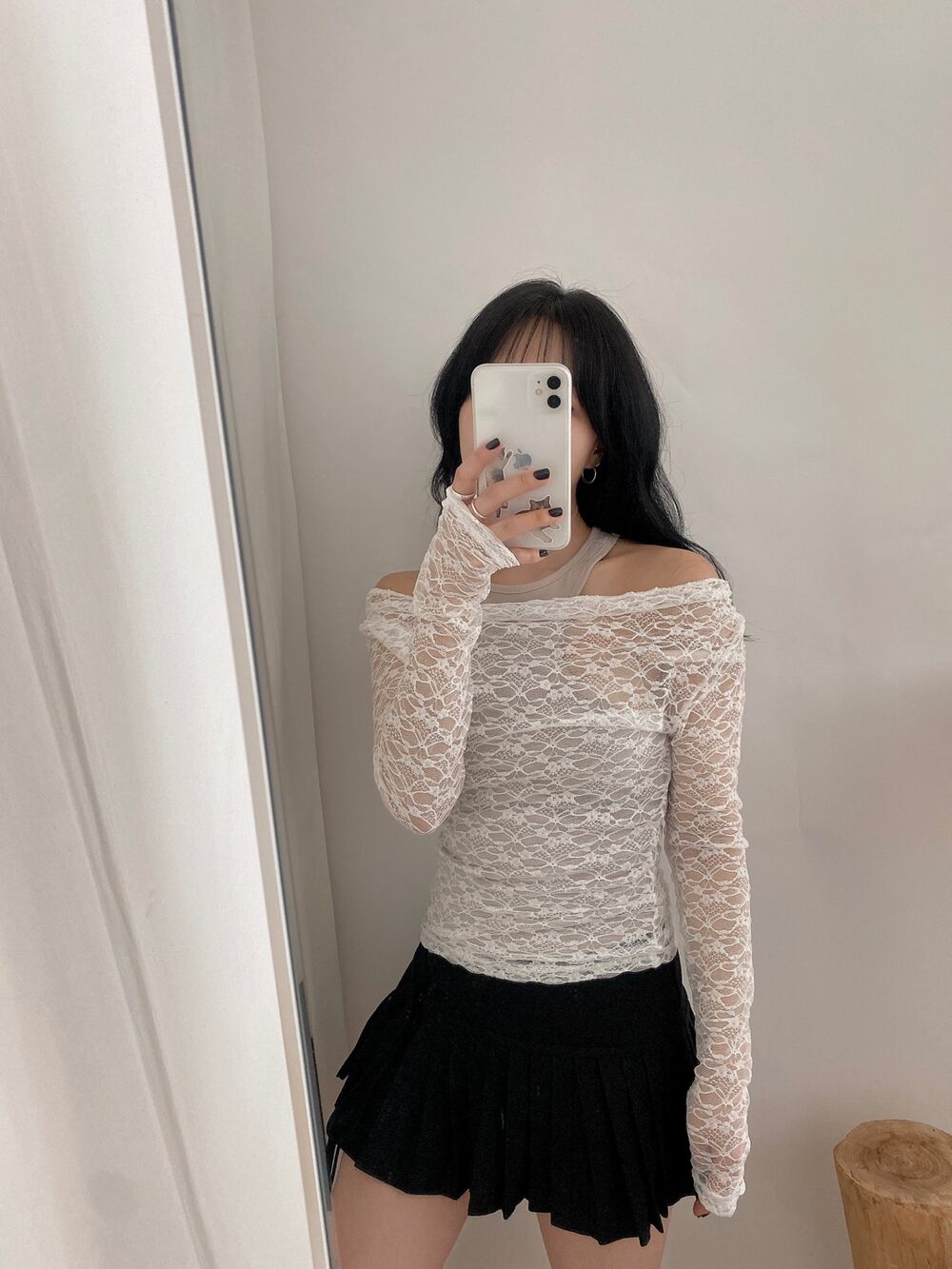 [SET] ホルターネックノースリーブ+シースルーレースTシャツセット