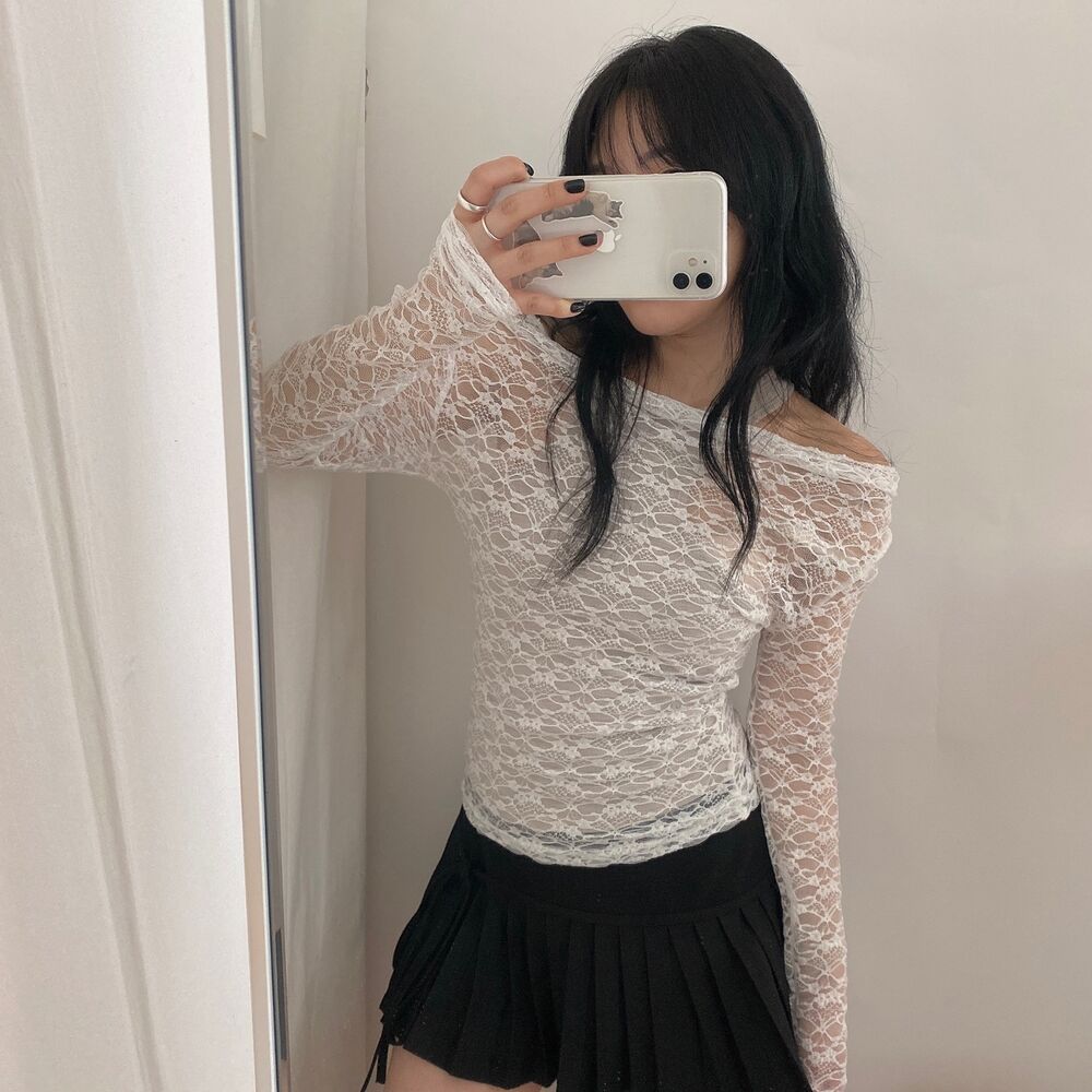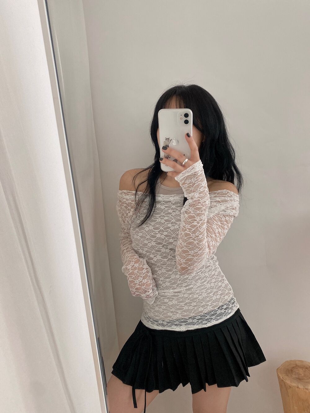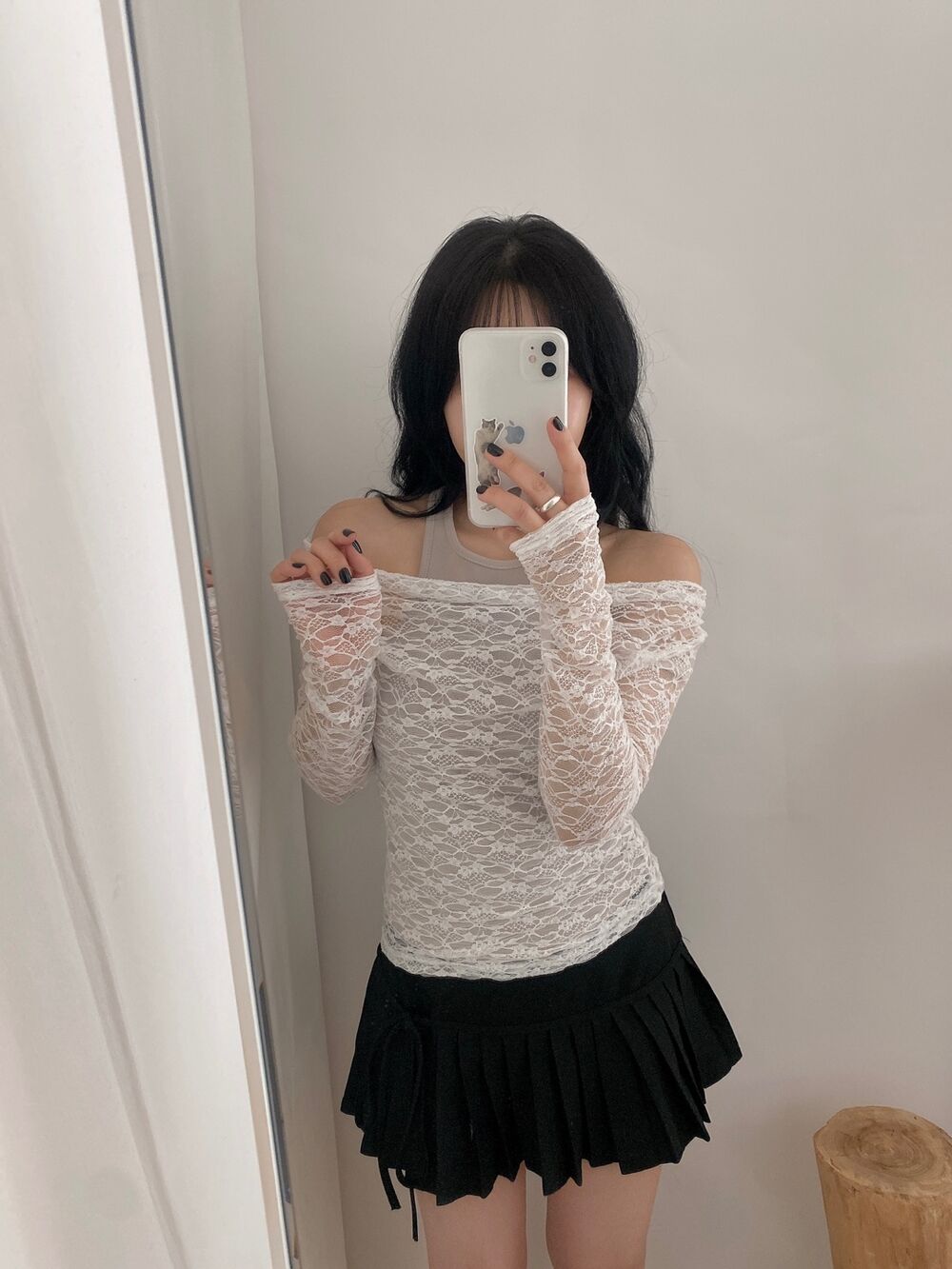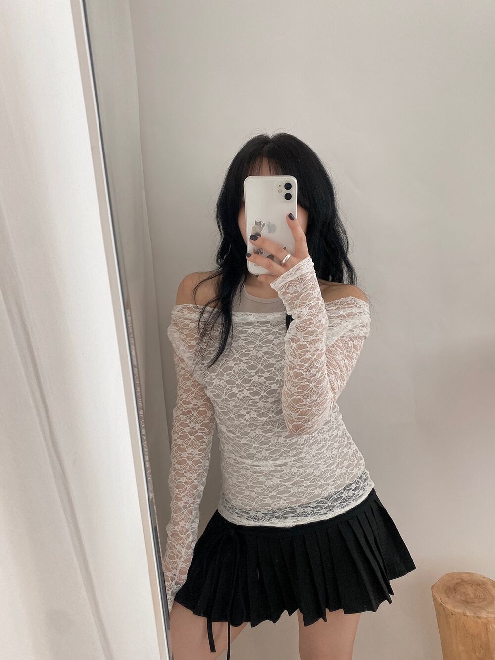 [SET] ホルターネックノースリーブ+シースルーレースTシャツセット