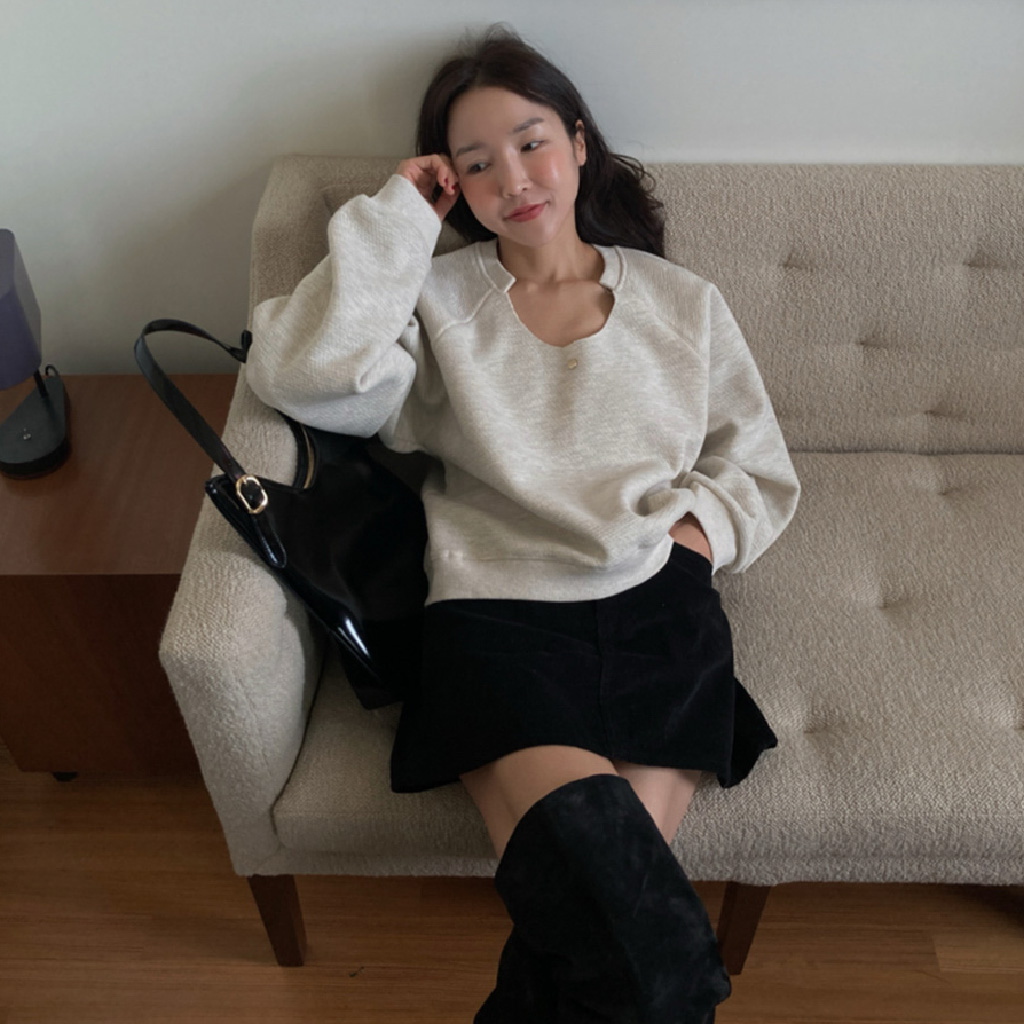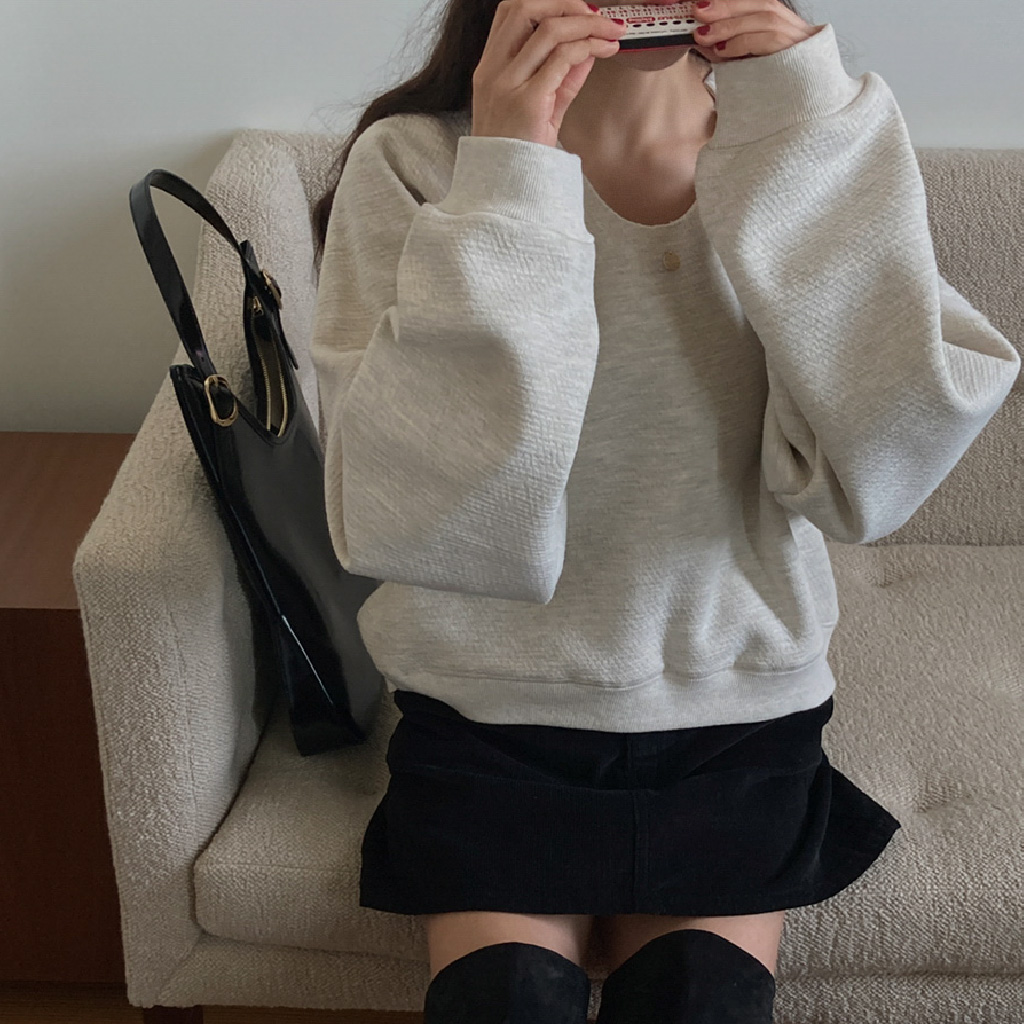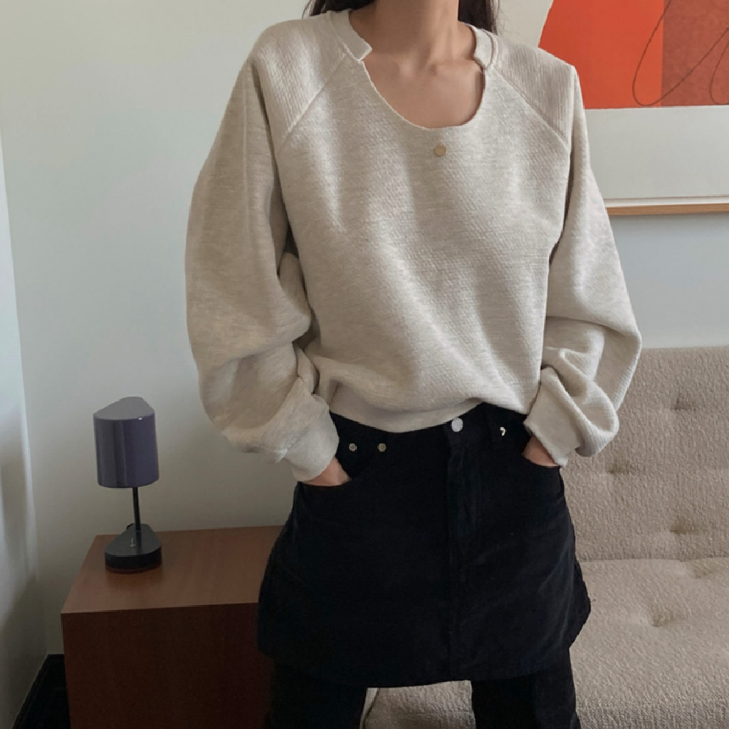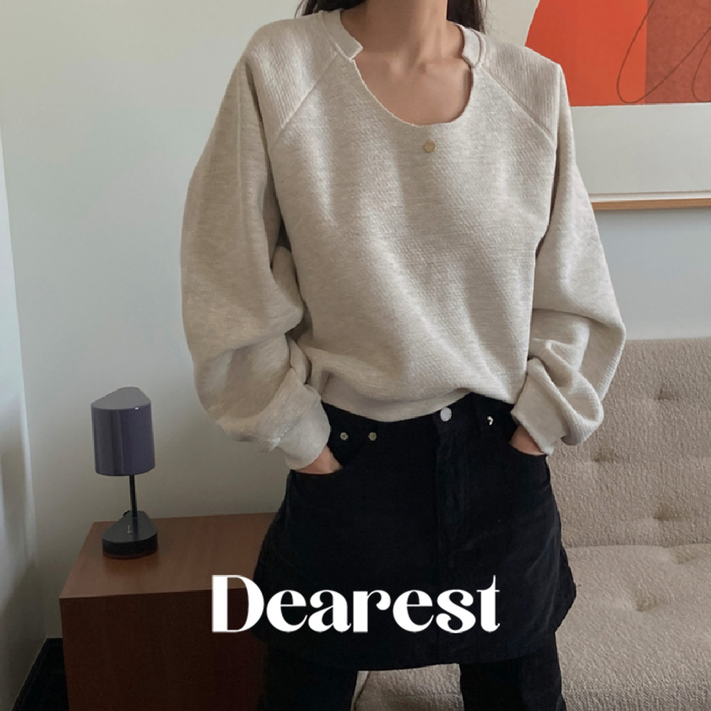 [Dearest] Cornerユニークネックラインコットンスウェット(オートミール)