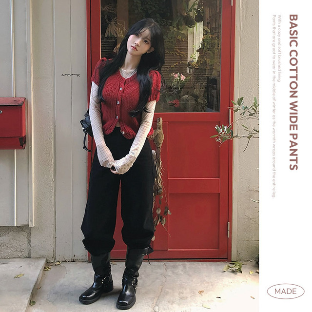 (ORIGINAL) 裏起毛、オールデイベーシックコットンワイドパンツ