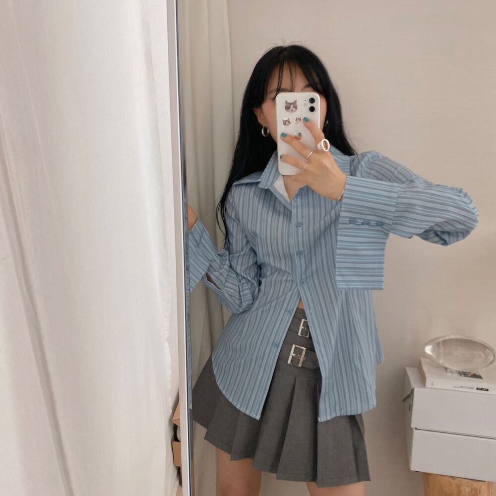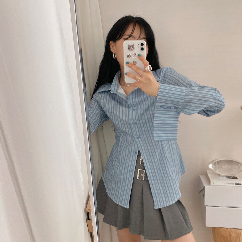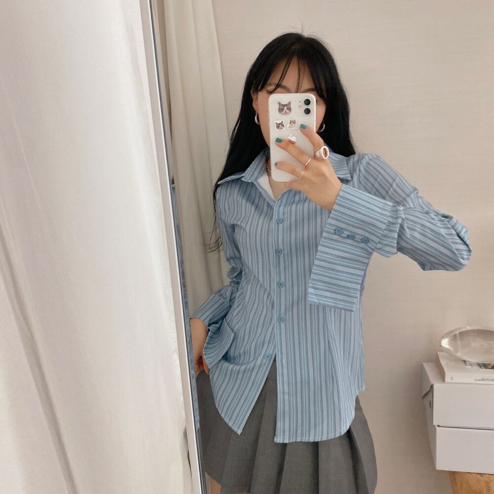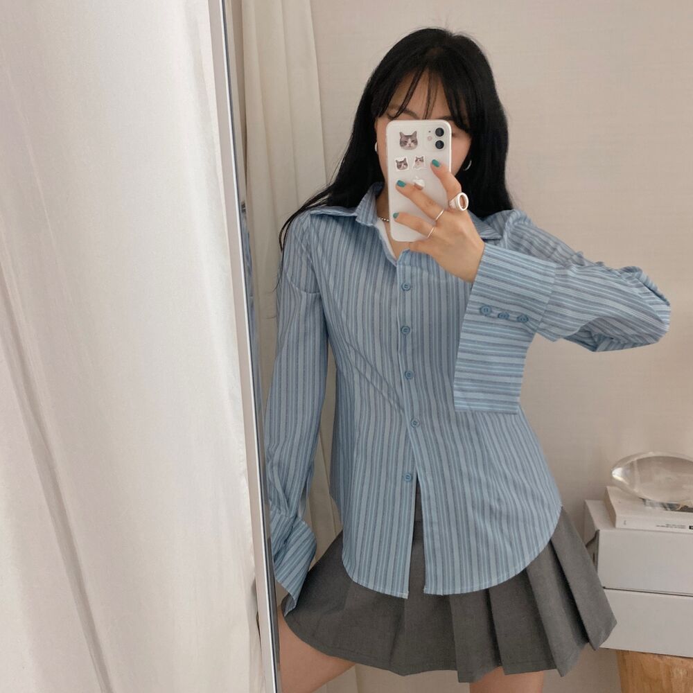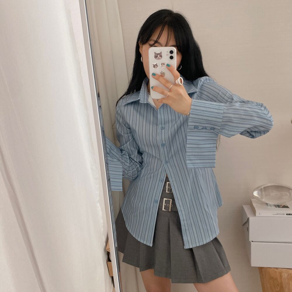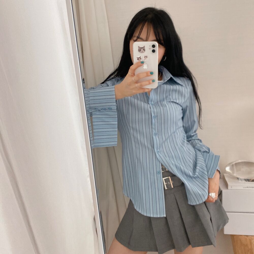カット入りストライプブールシャツ