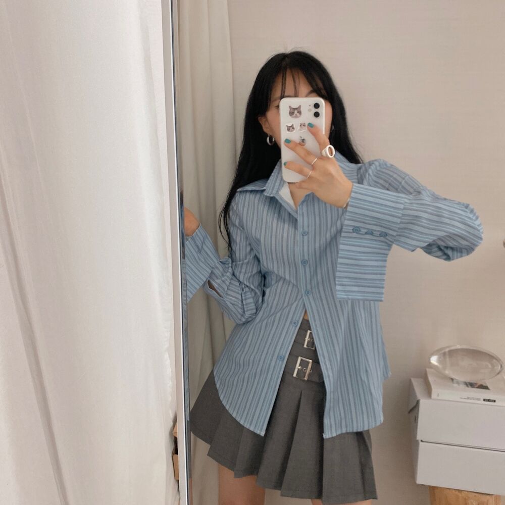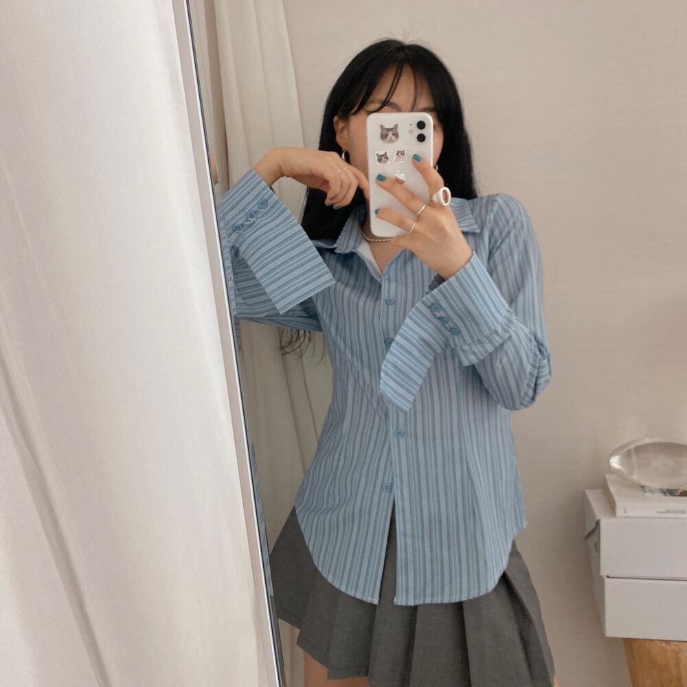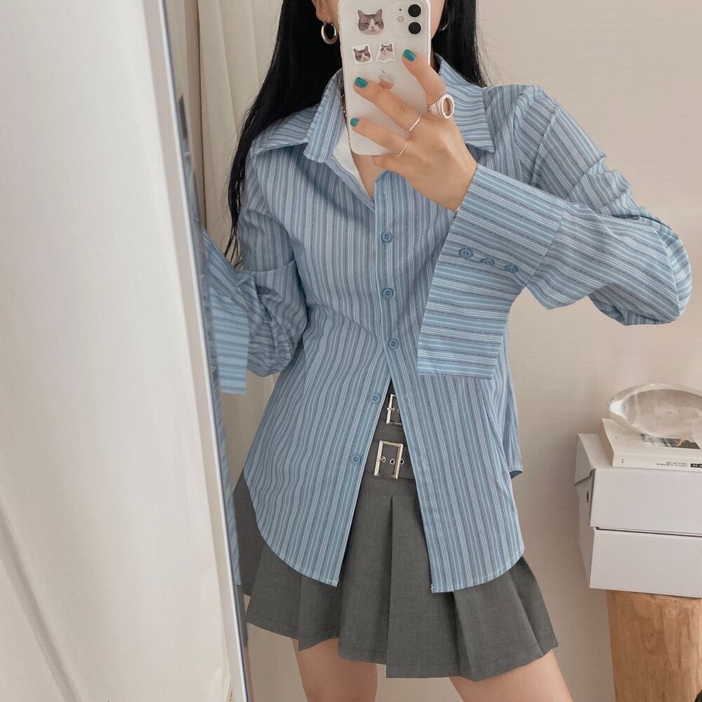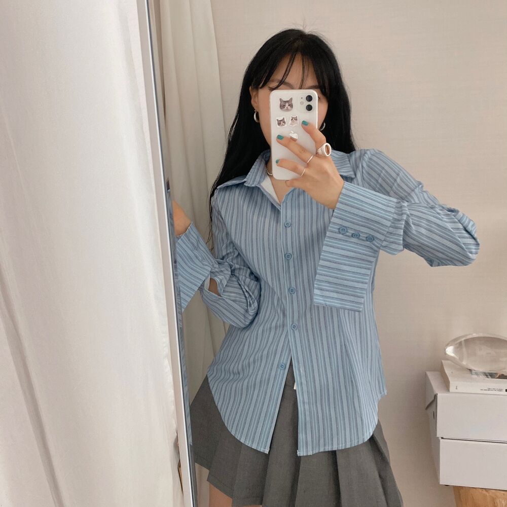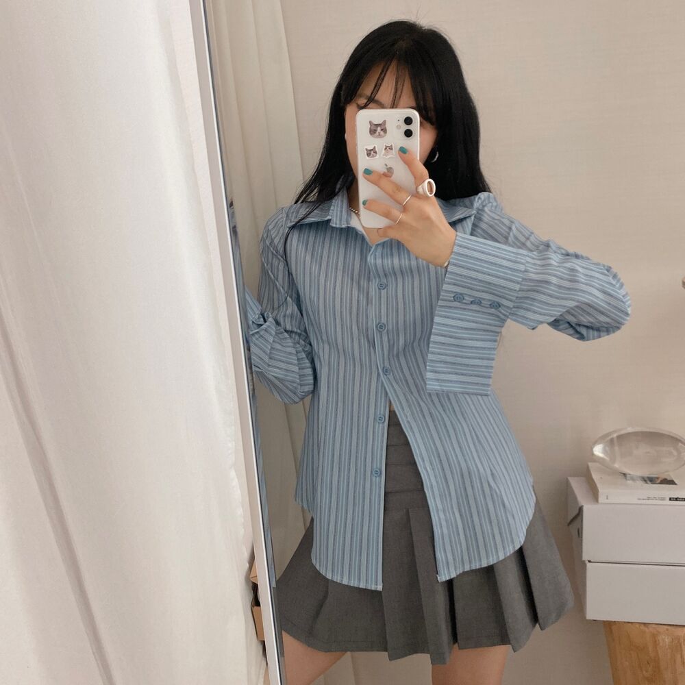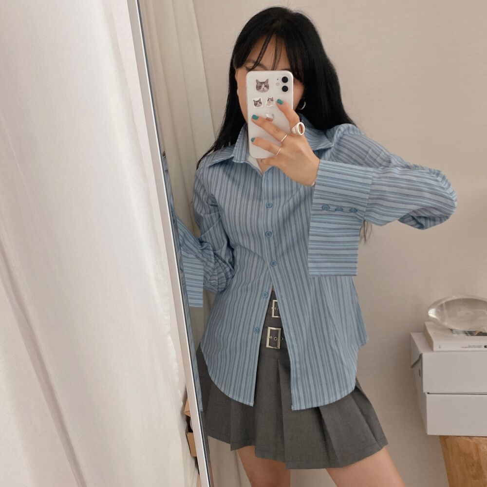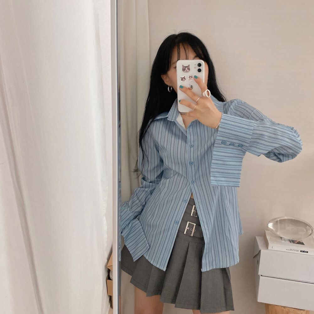 カット入りストライプブールシャツ