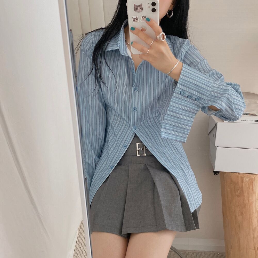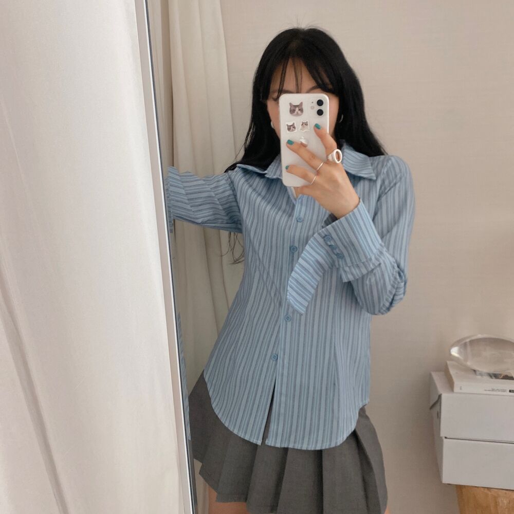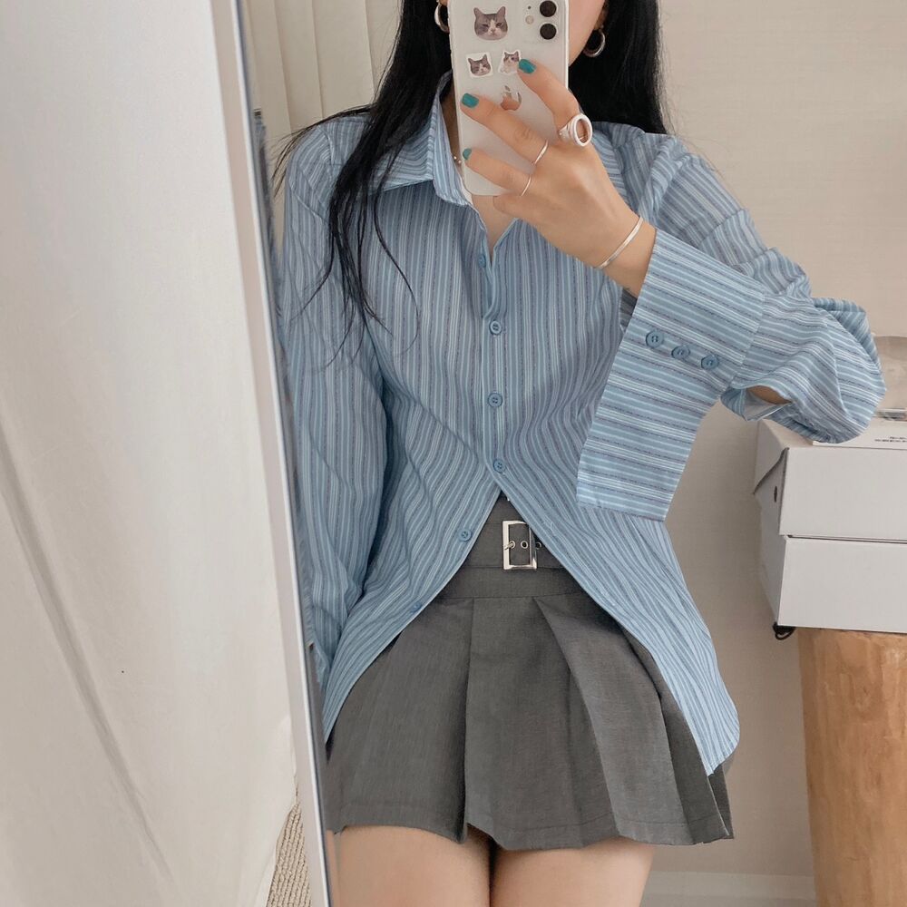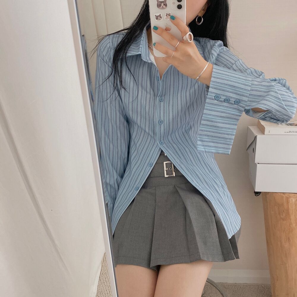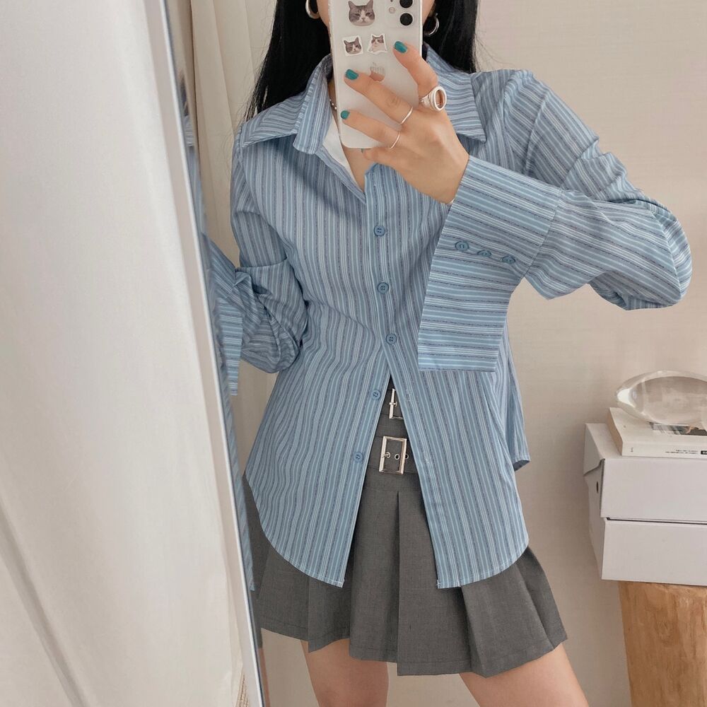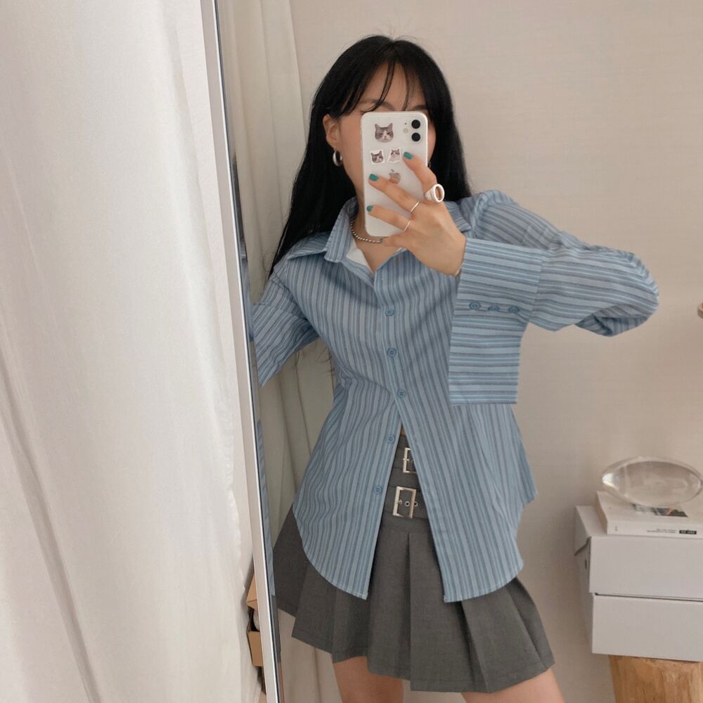 カット入りストライプブールシャツ