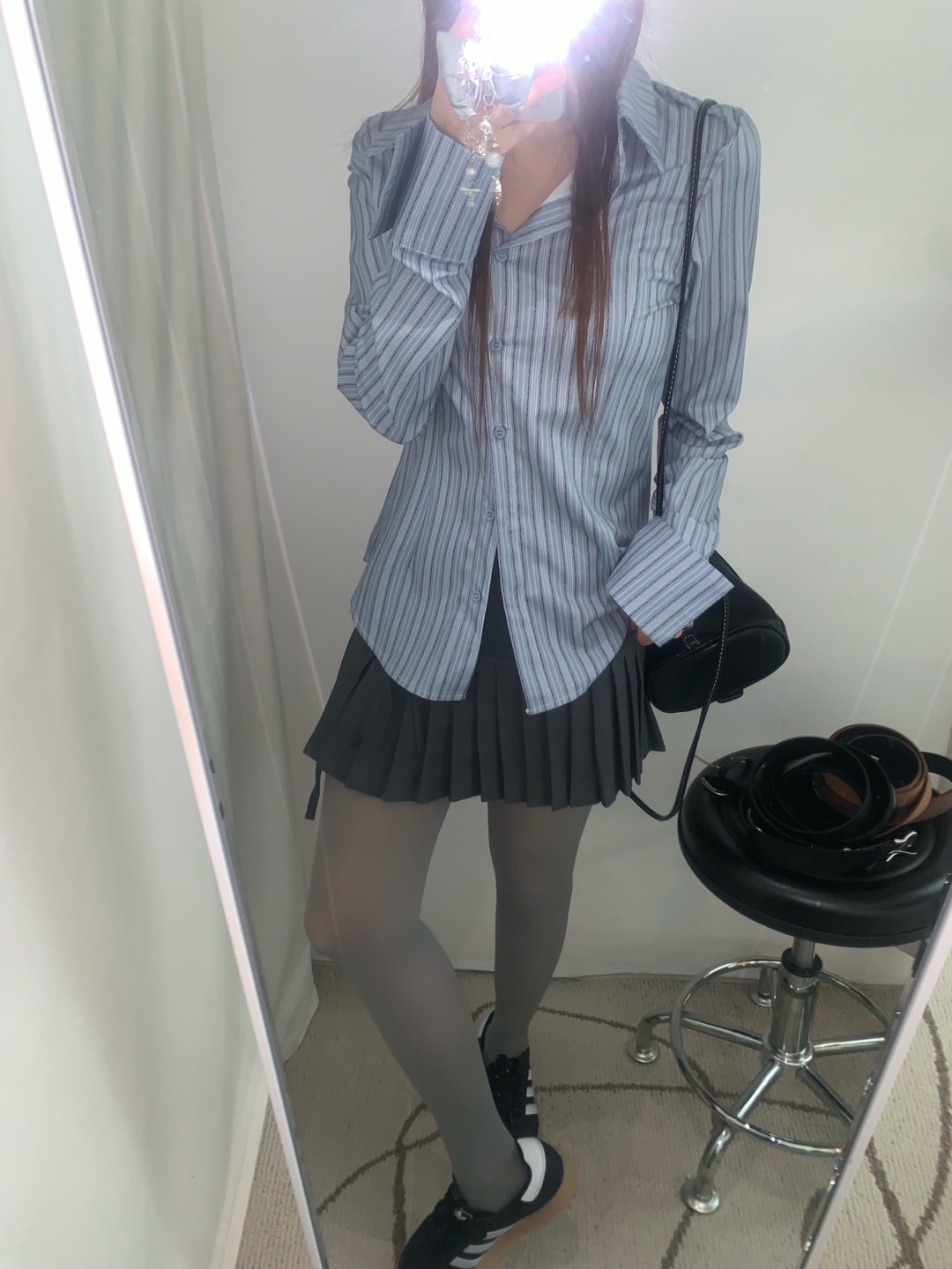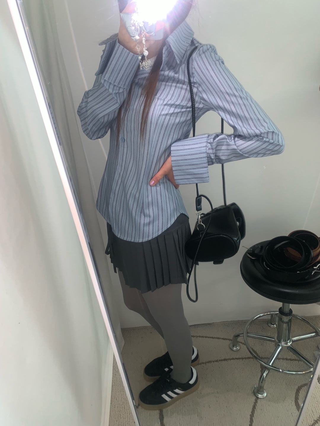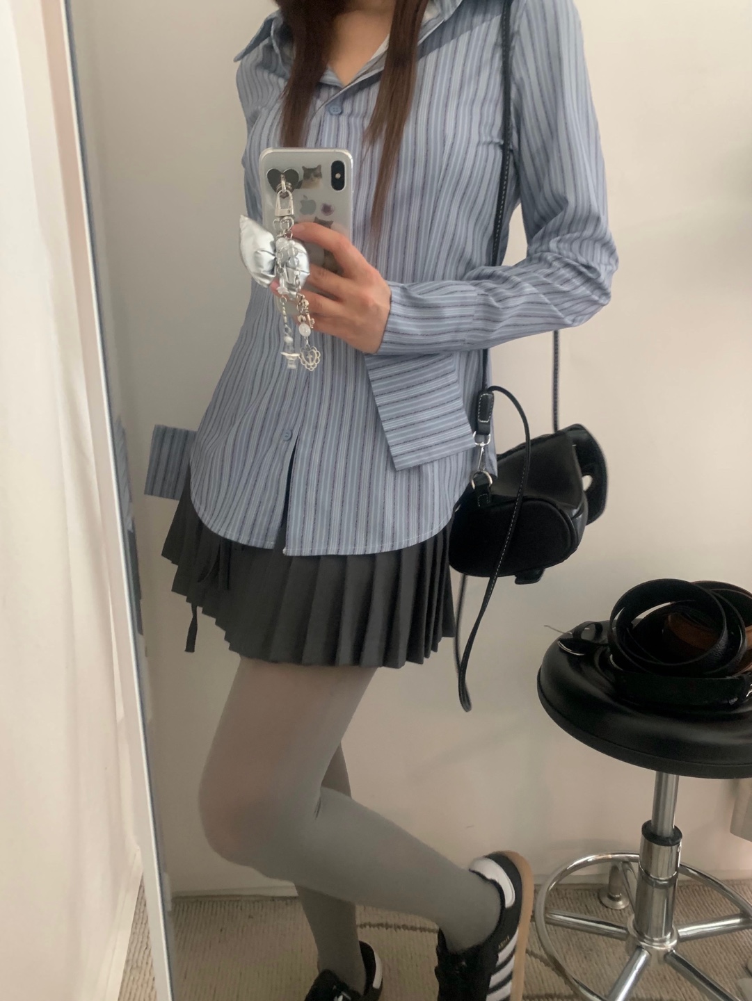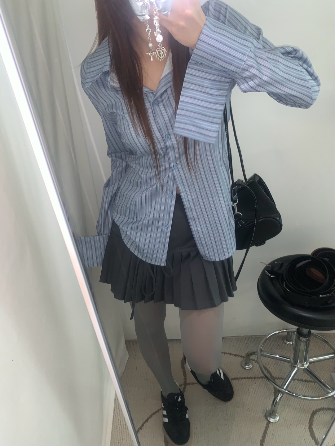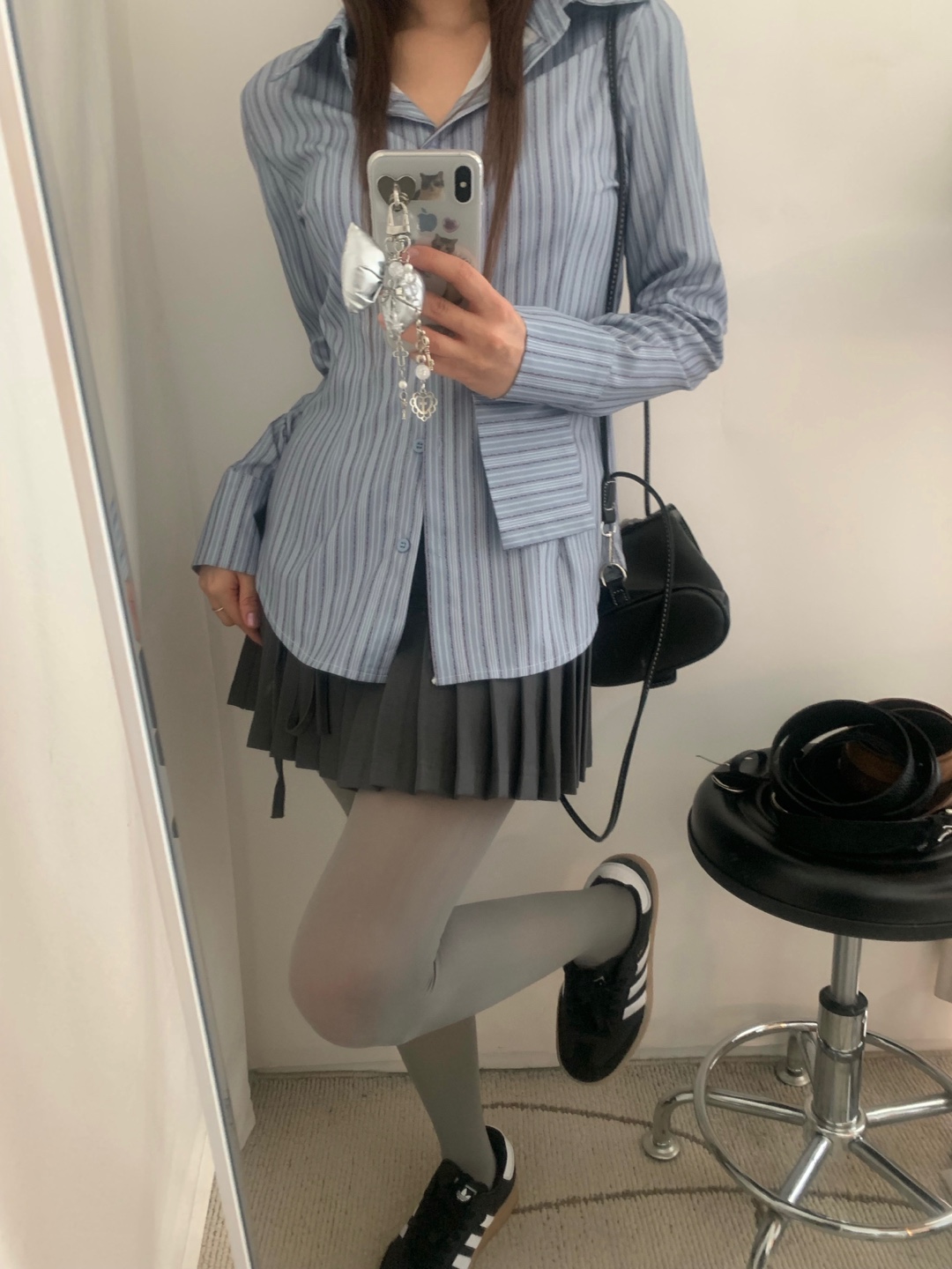 カット入りストライプブールシャツ