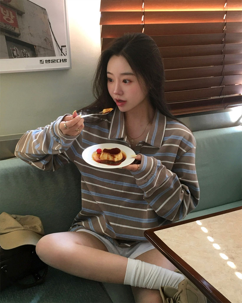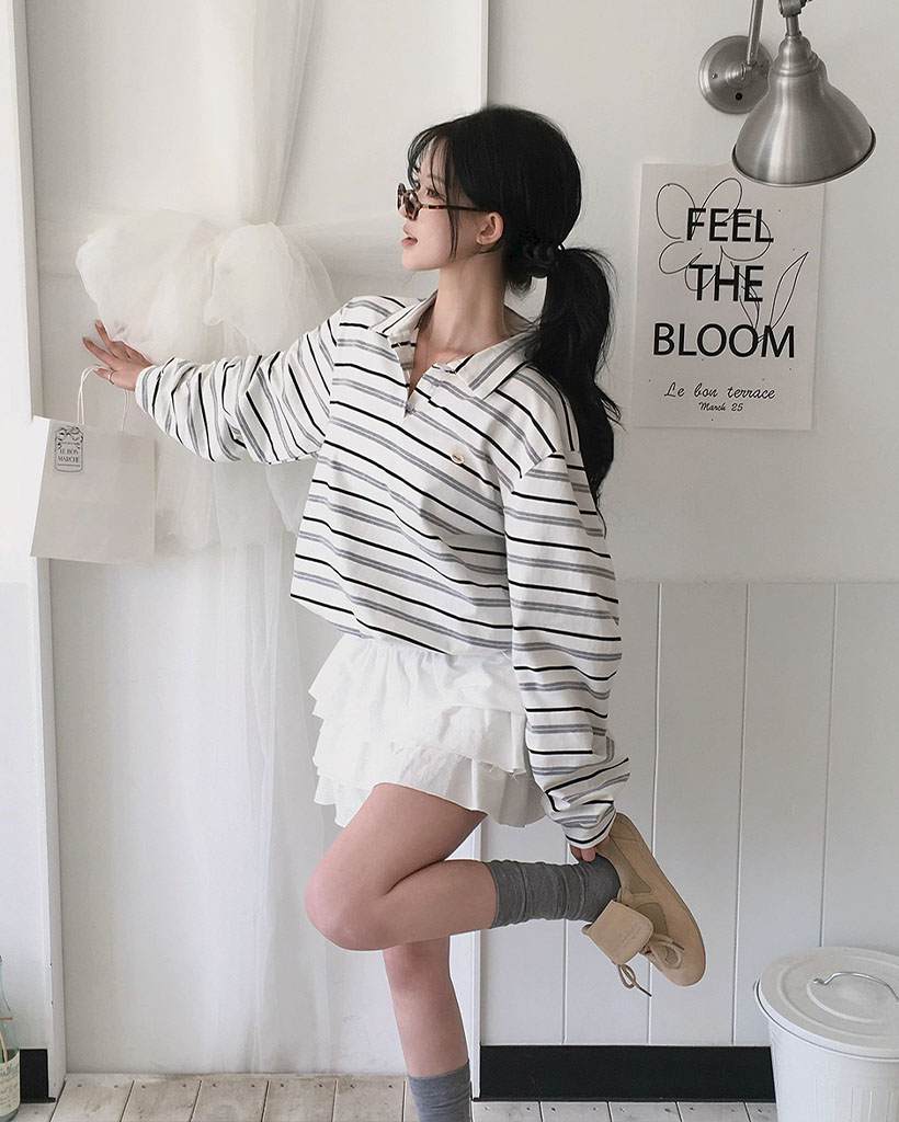 (ORIGINAL) ポポ、ストライプストリングのTシャツ