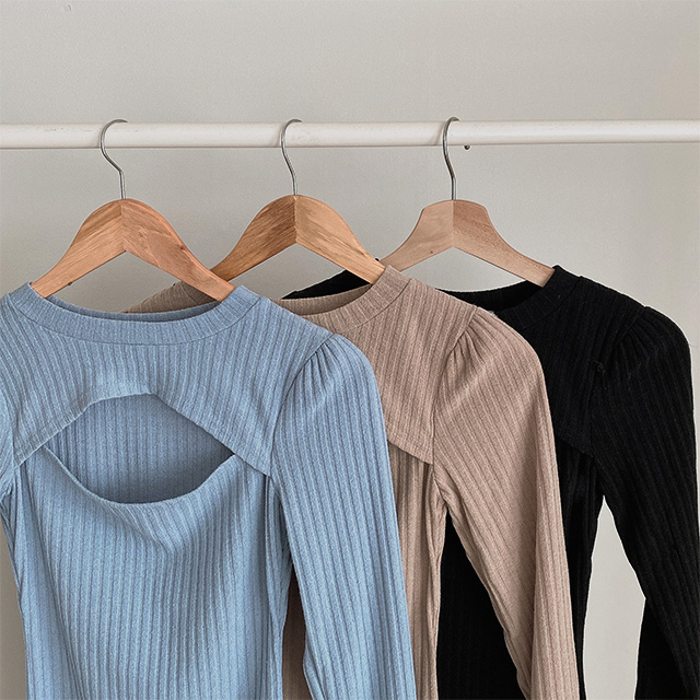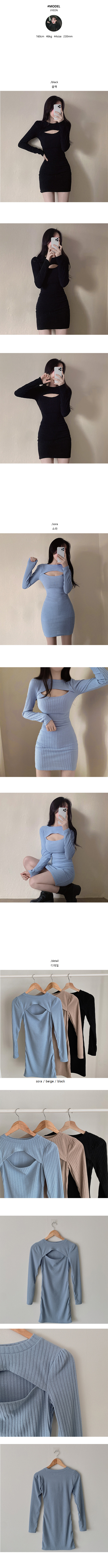 (3col)スリットリブスリムラウンド長袖ミニワンピース