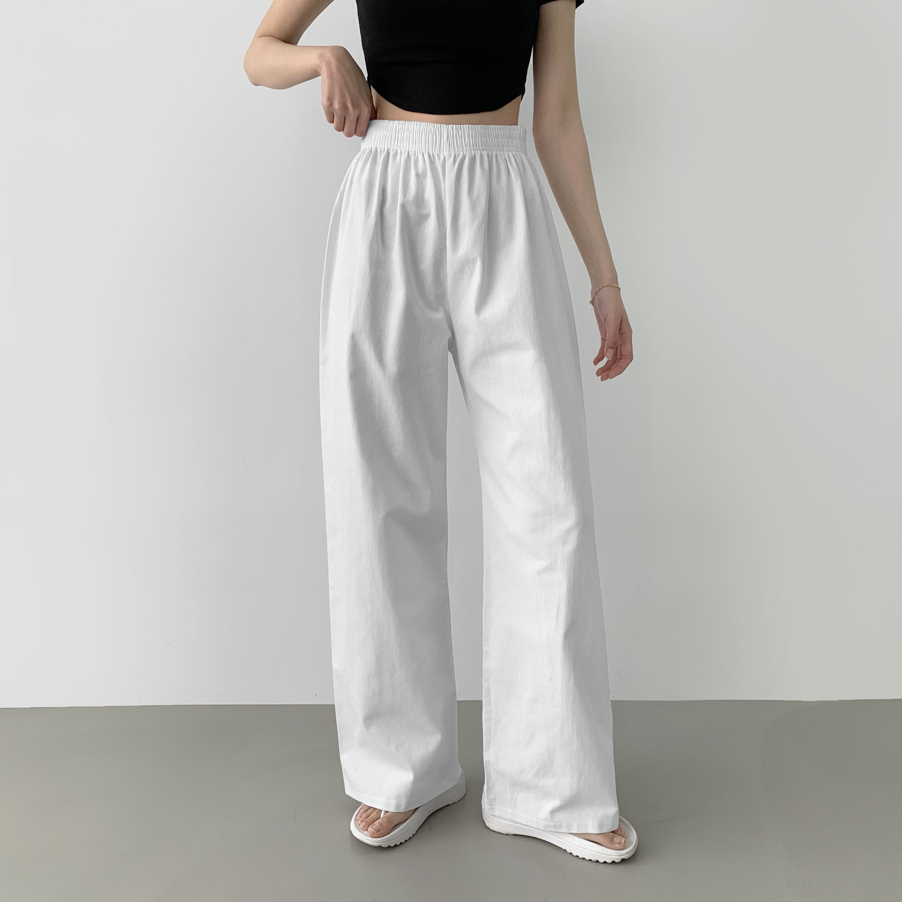 [選べる着丈] リネンワイドゴムパンツ