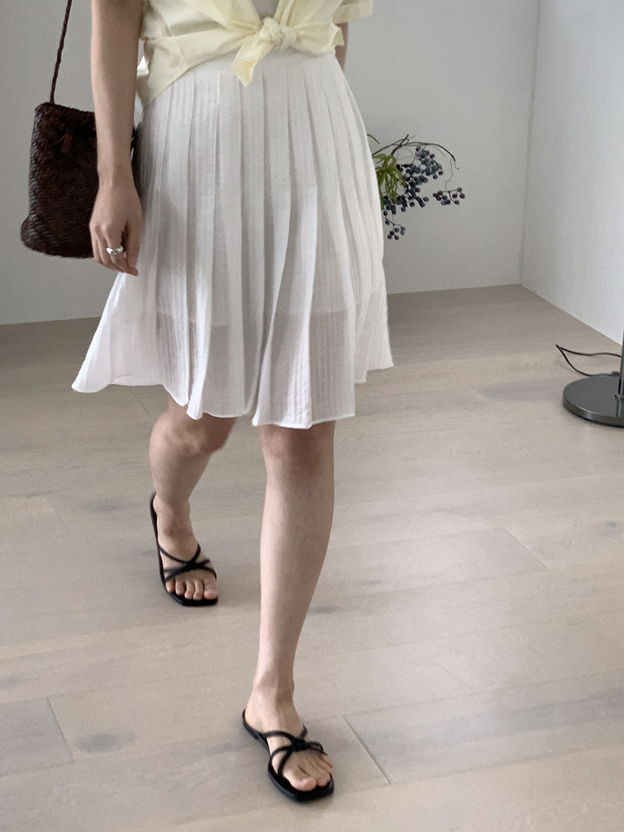 シフォンプリーツスカートAラインシャーリングミドル丈スカート2color