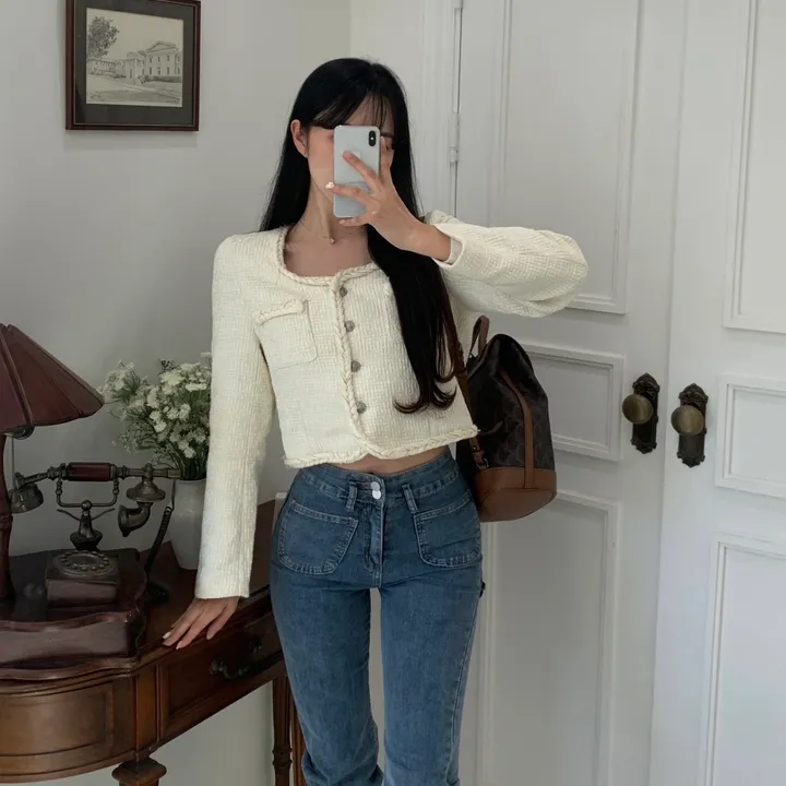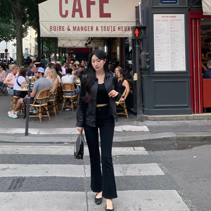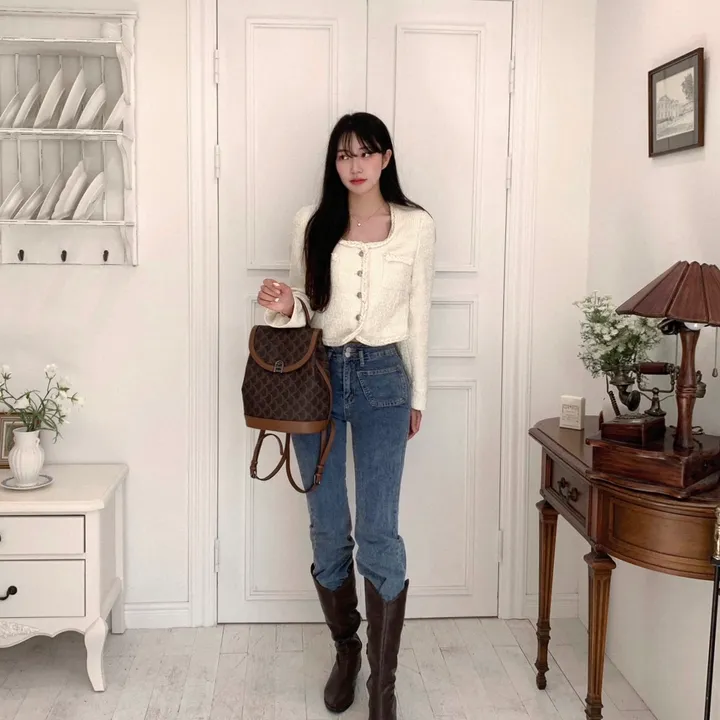 ハイウエストデイリースパンブーツカットコットンロングパンツ