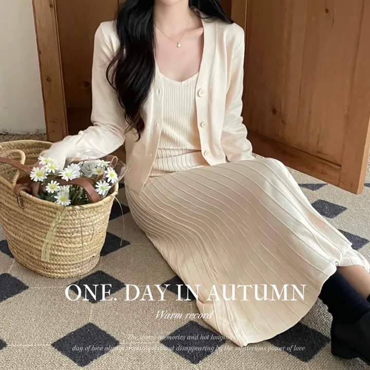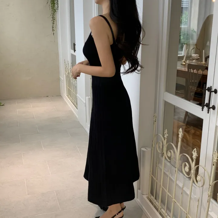 [SET] カーディガン+ノースリーブプリーツロングワンピースセットアップ