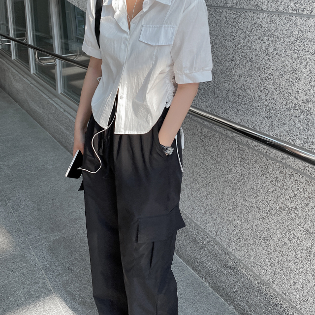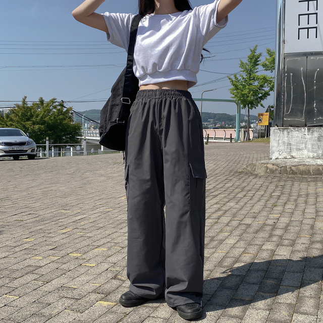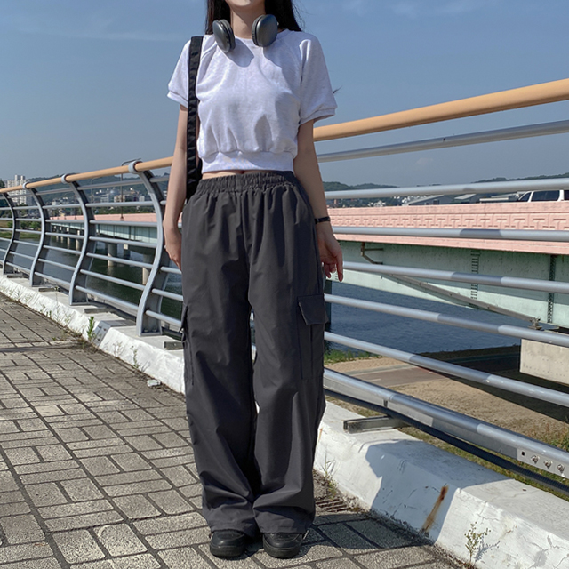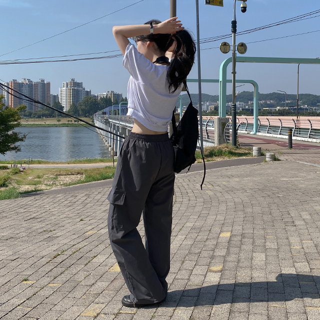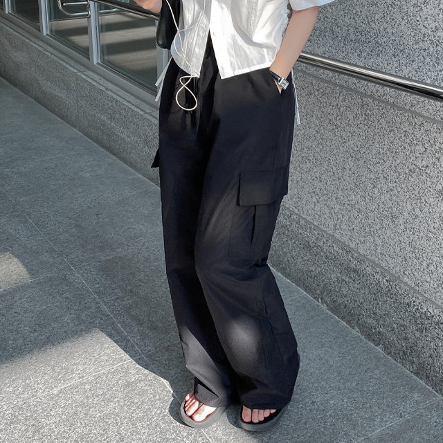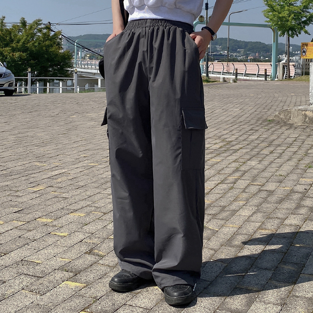 夏ワイドゴムトレーニング2WAYジョガーストリングカーゴパンツ