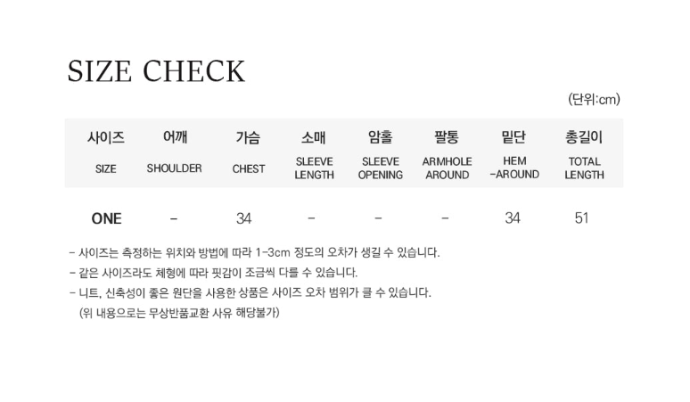"サイズの測定方法によっては1~3cmほど誤差が生じる場合があります。