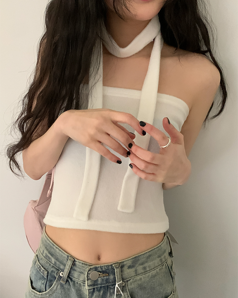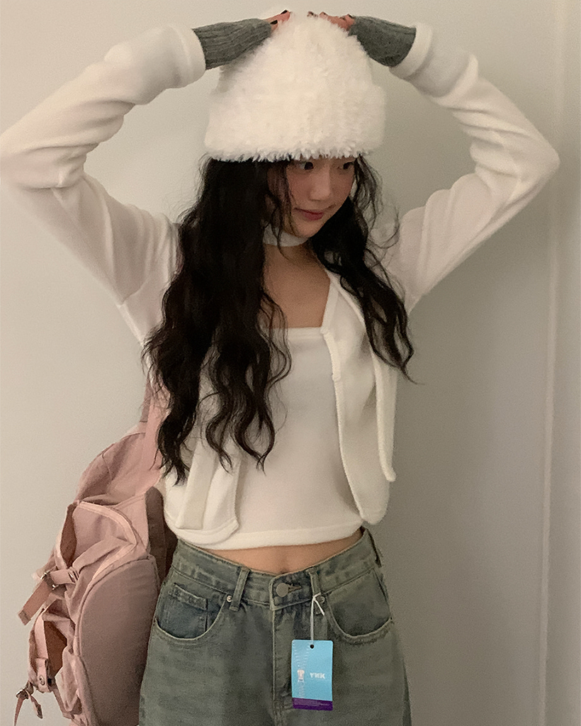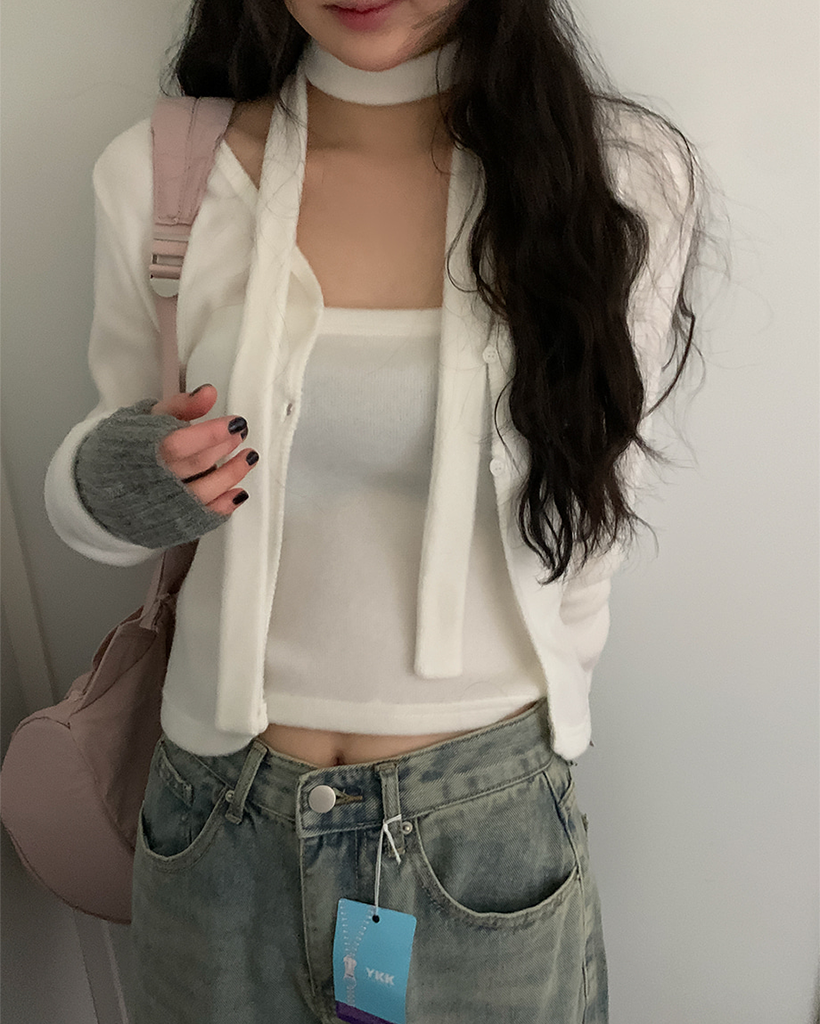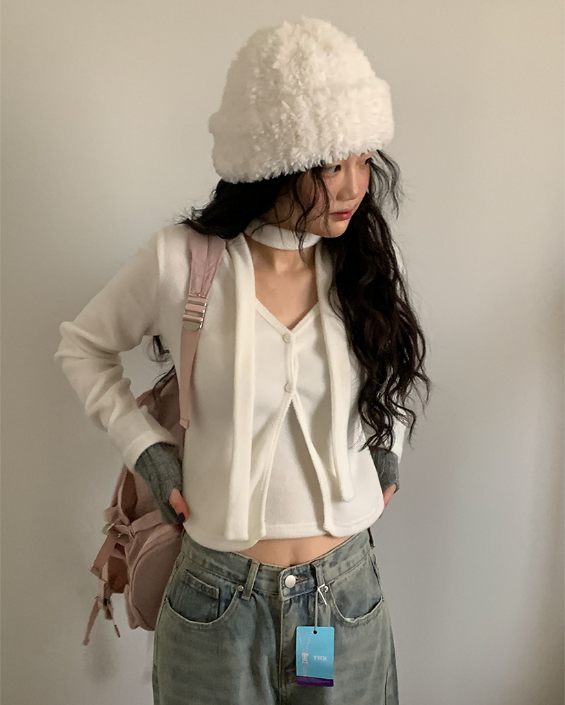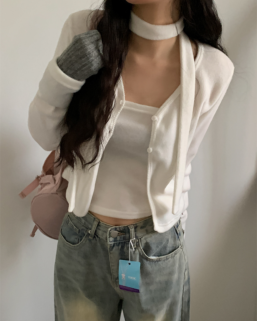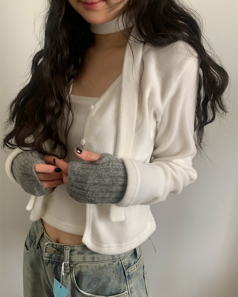 裏起毛マフラーチューブトップレイヤードカーディガンセット
