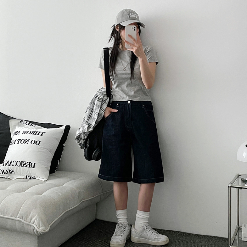 [S~XL]ステッチデニム5分丈半ズボン(1color)