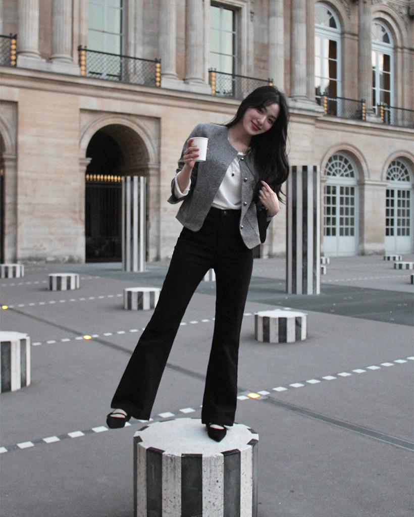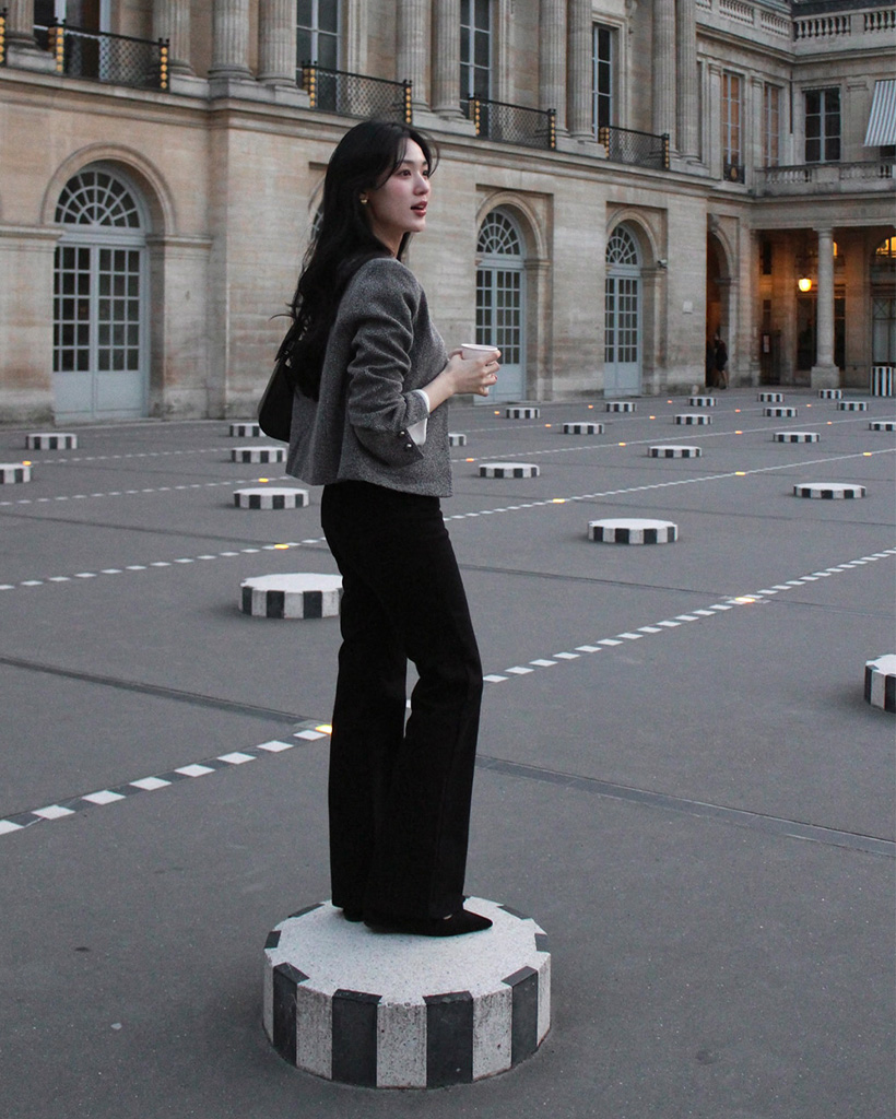 -#SLOWMADE. 핏라인 블랙무드 트위드자켓