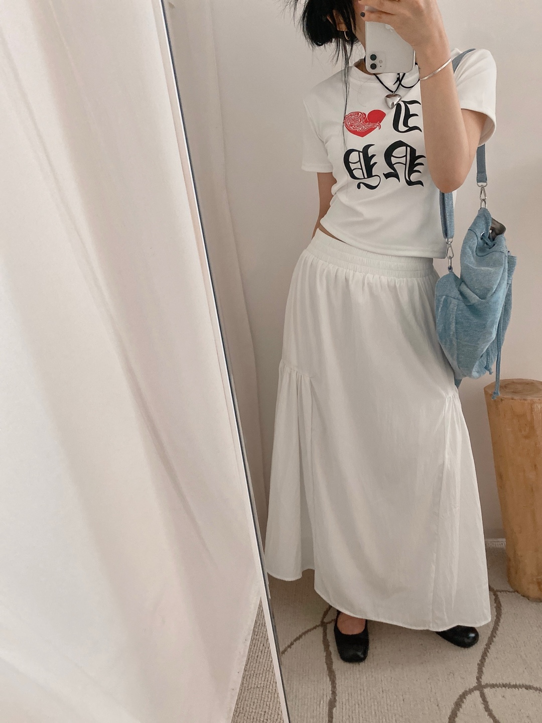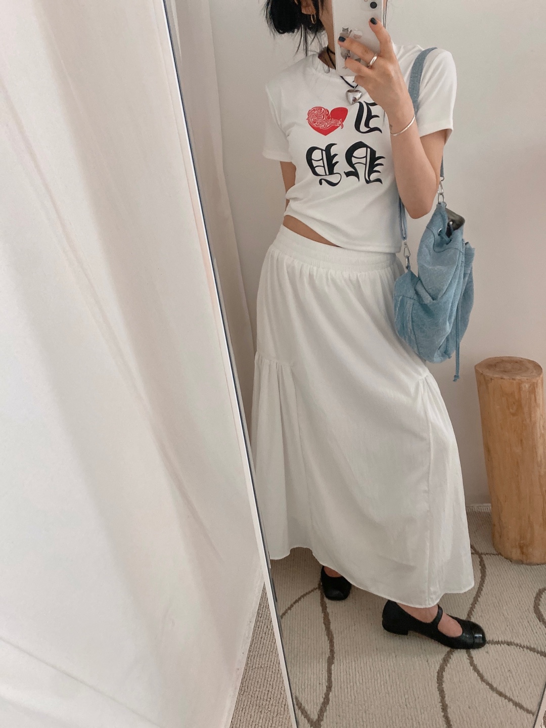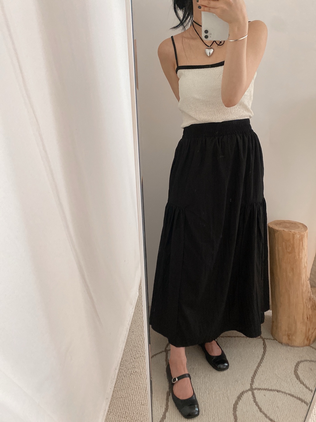 [裏地付き] サイドシャーリングコットンフレアロングスカート