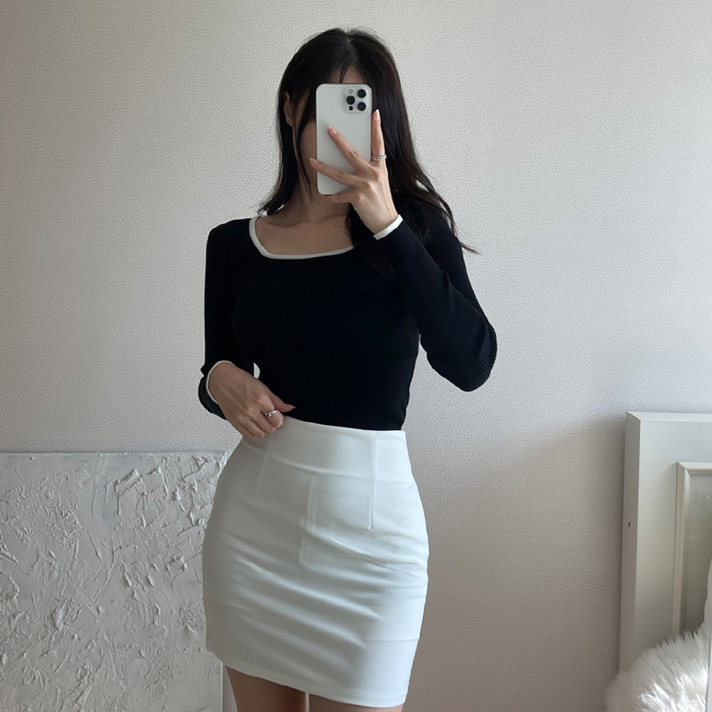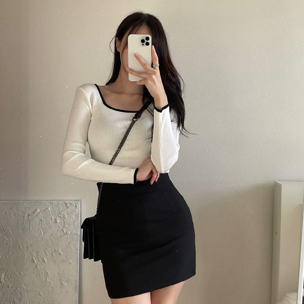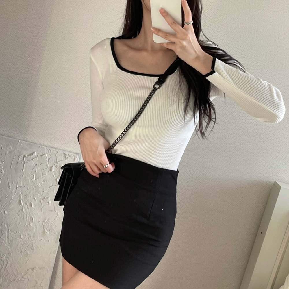 [3color]バイカラースクエアネックリブニット