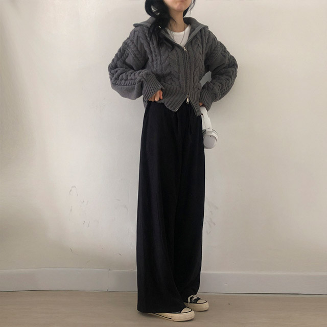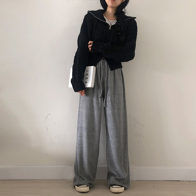ベロアワイドウエストゴムパンツ