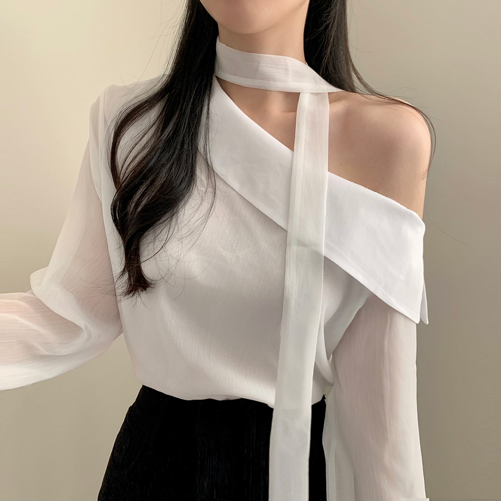 アンバランスオフショルカラーシフォンブラウス(3color)