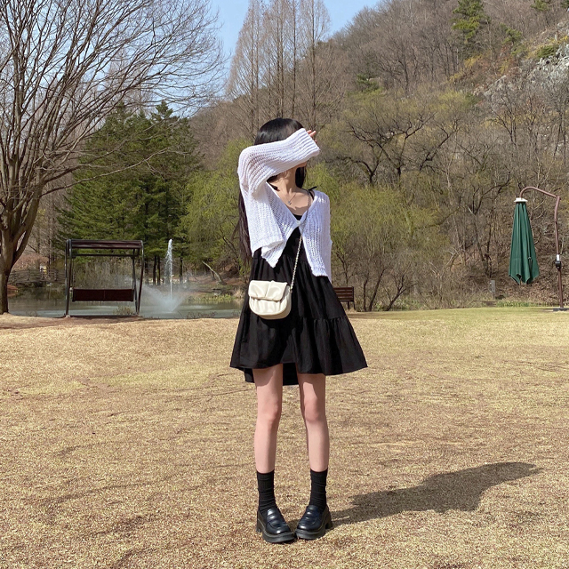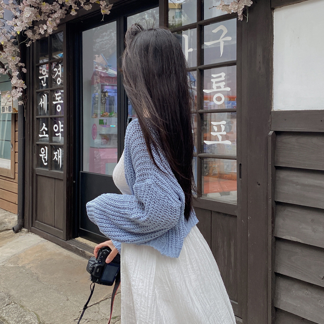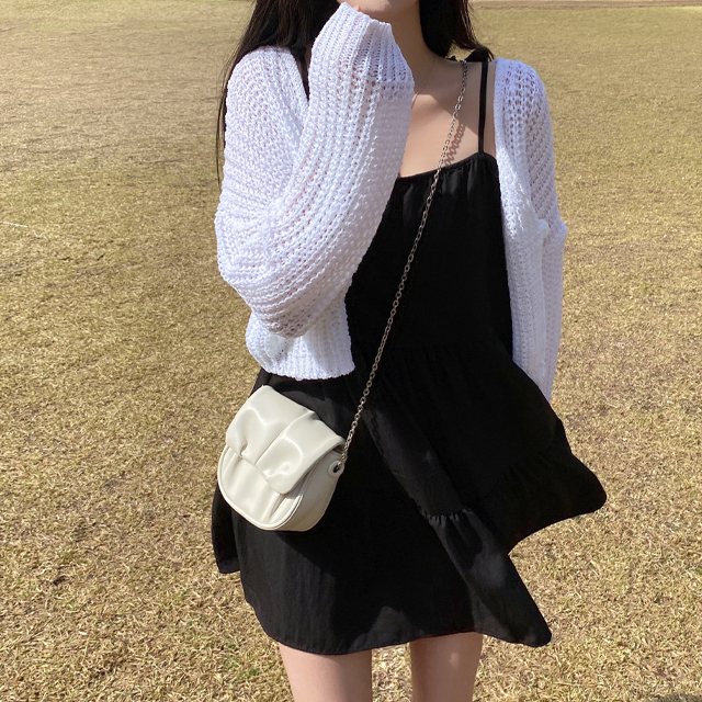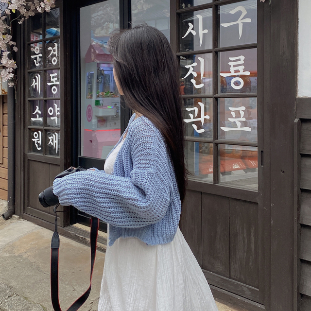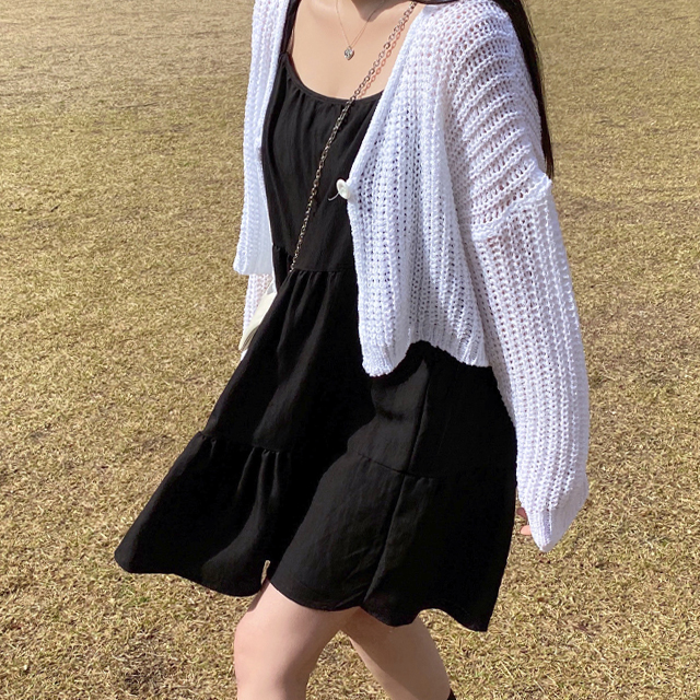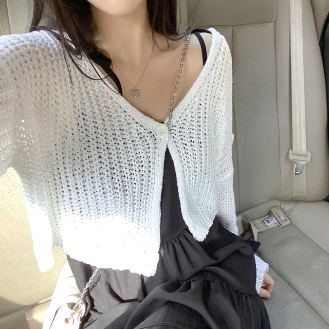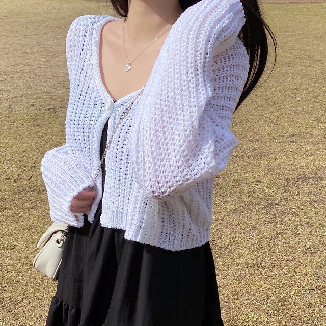 長袖オーバーサイズVネックニットシースルーブークレカーディガン