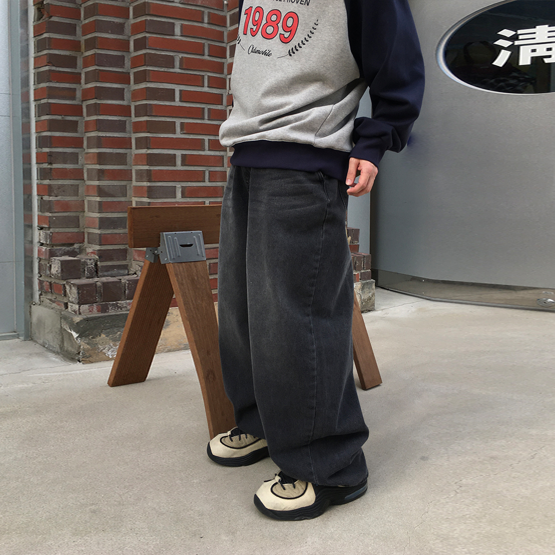 (ユニセックス)オールドスクールウォッシュデニムパンツ(WashedBlack)