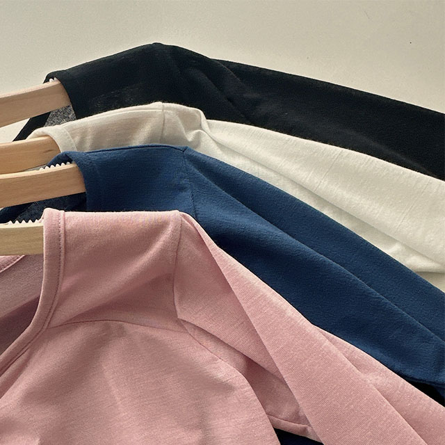 スリットリボンシャーリングクロップド長袖Tシャツ