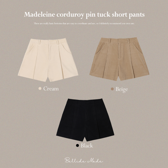 [BELLIDE MADE] マドレーヌコーデュロイピンタックショートパンツ