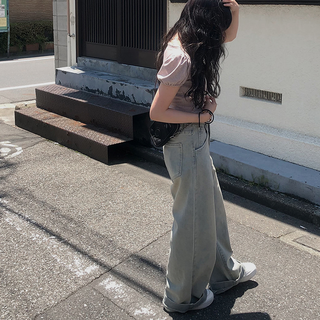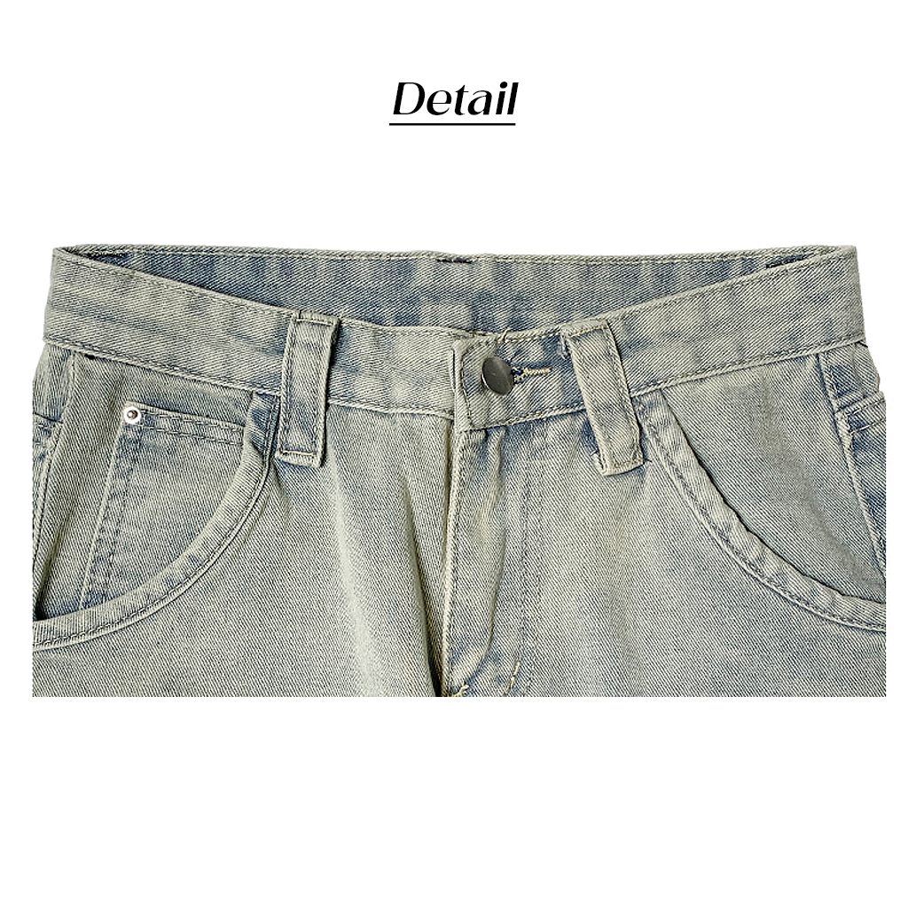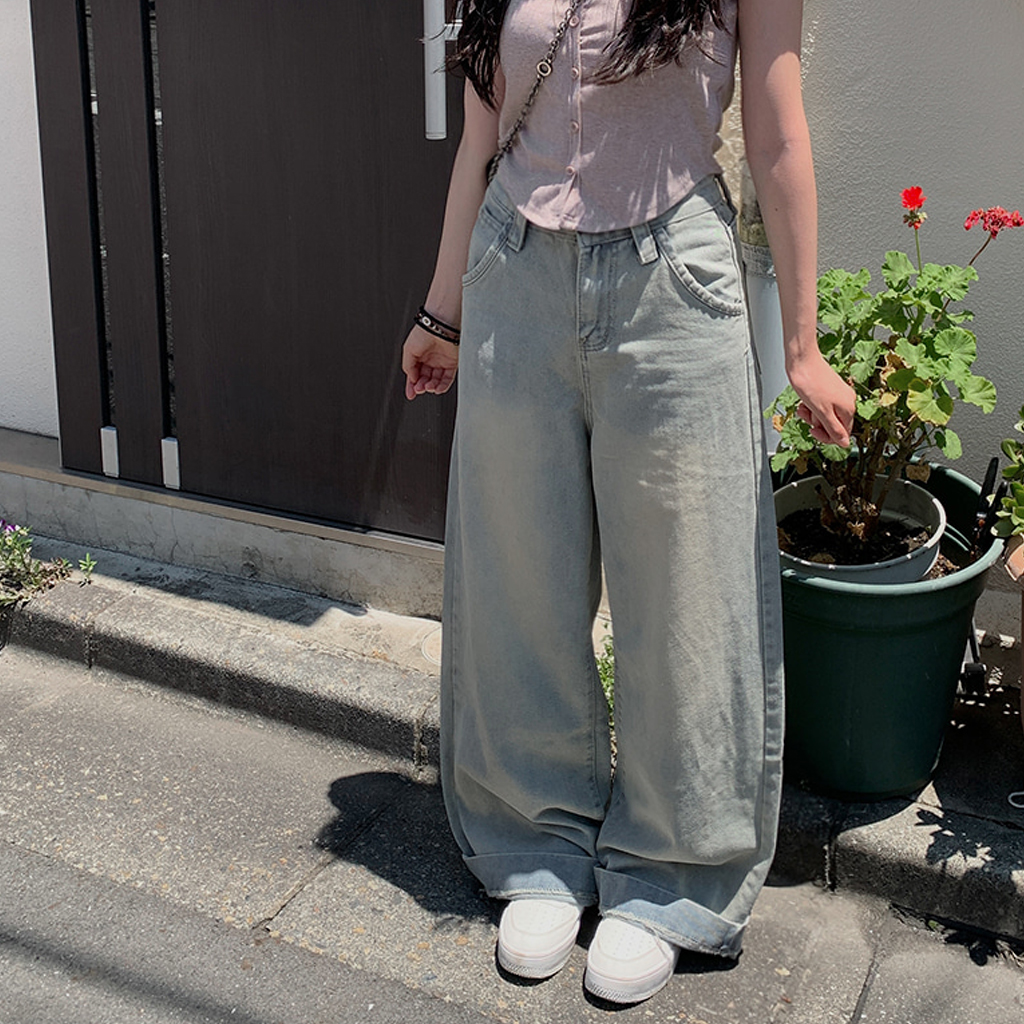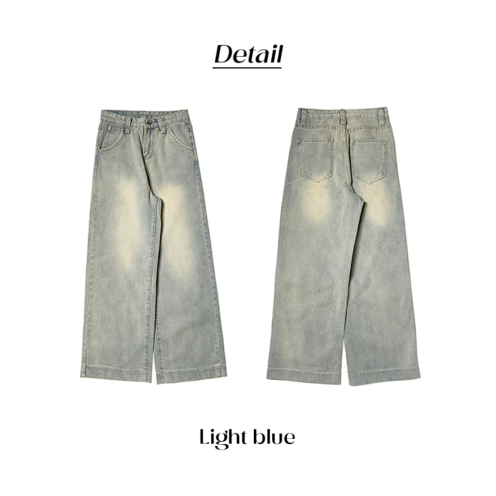 [A/M] ライトブルーウォッシングワイドストレートデニムパンツ
