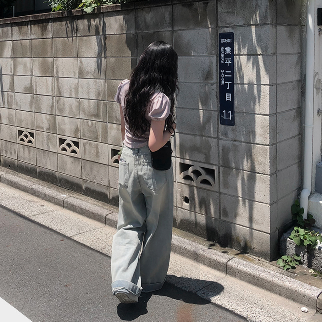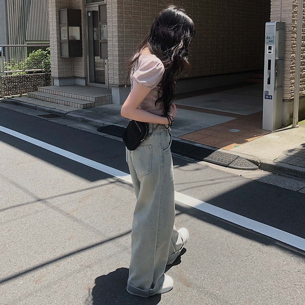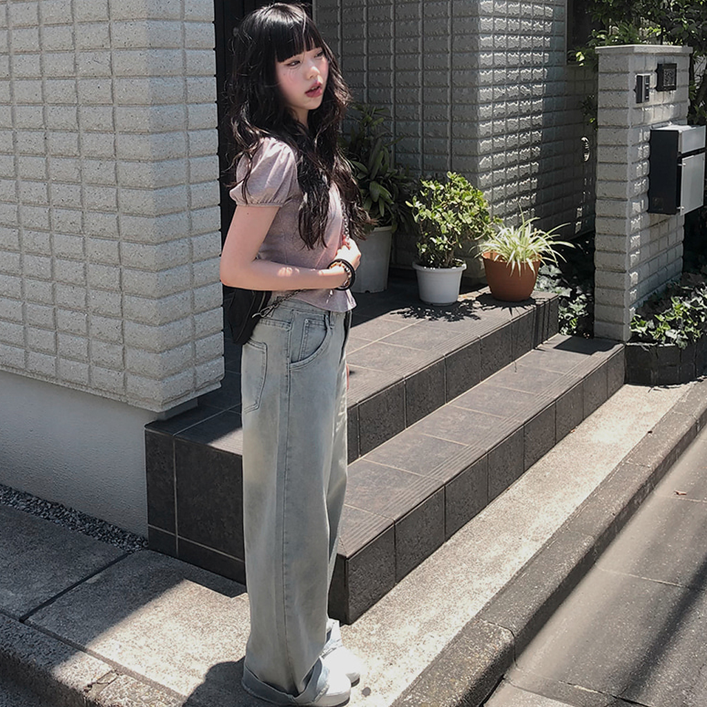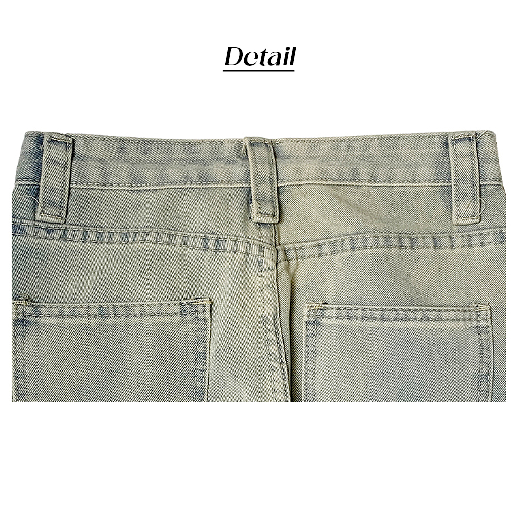 [A/M] ライトブルーウォッシングワイドストレートデニムパンツ