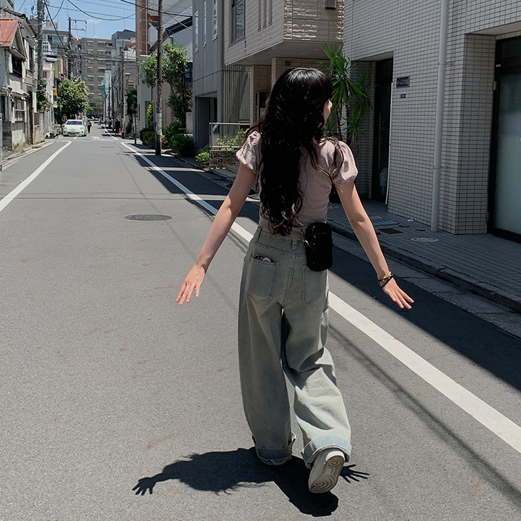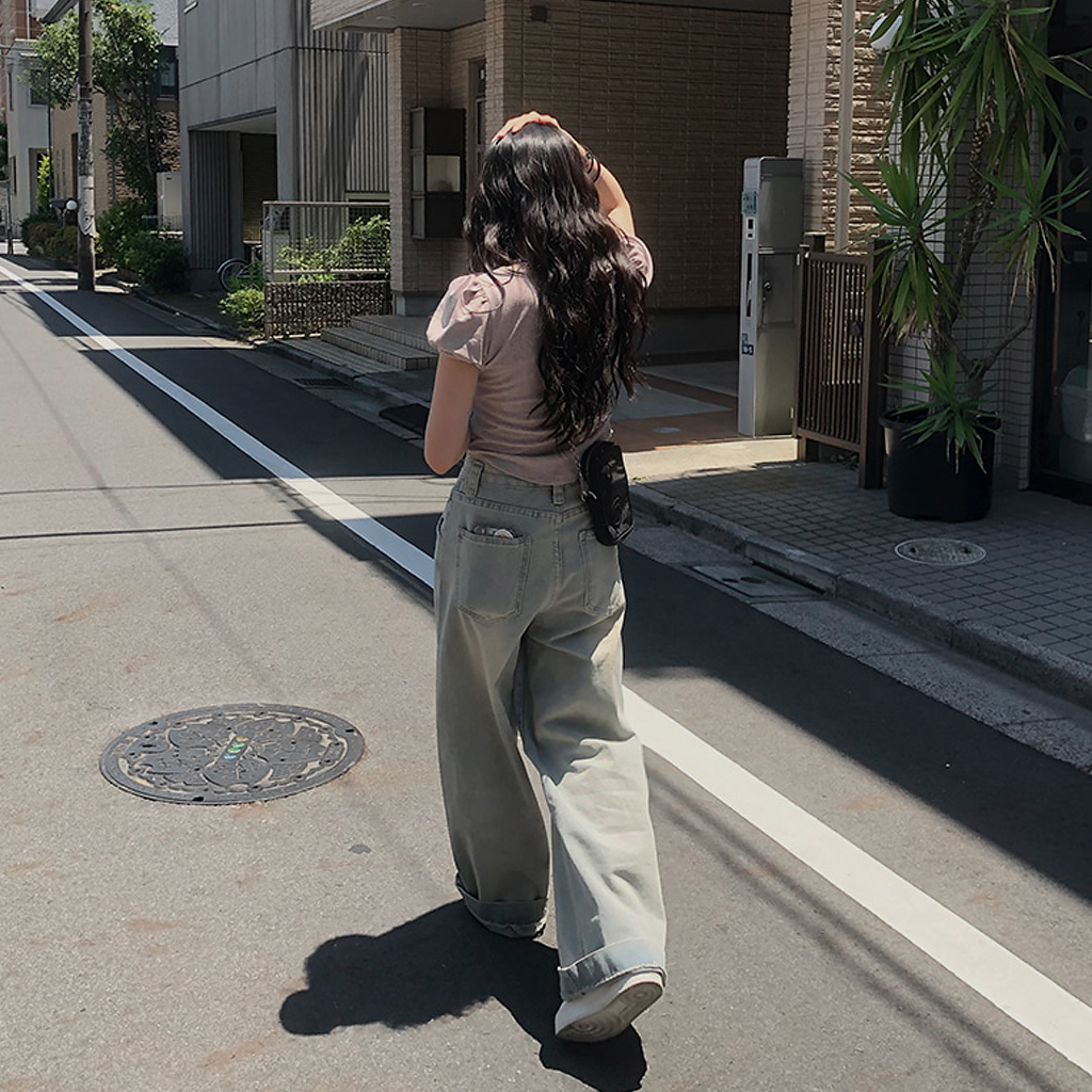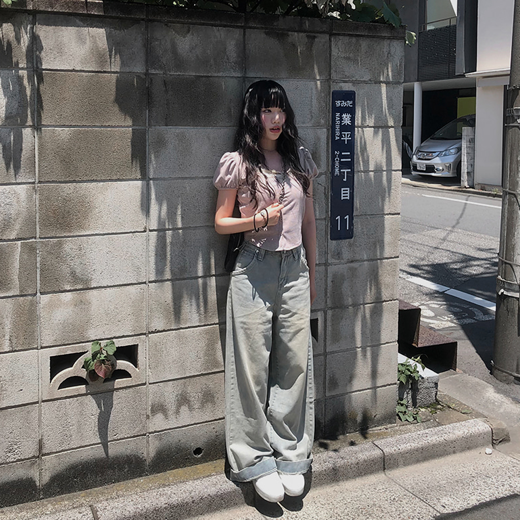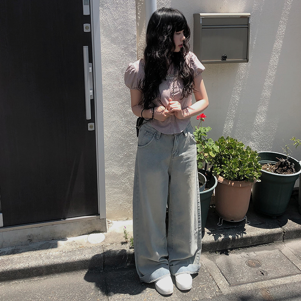[A/M] ライトブルーウォッシングワイドストレートデニムパンツ