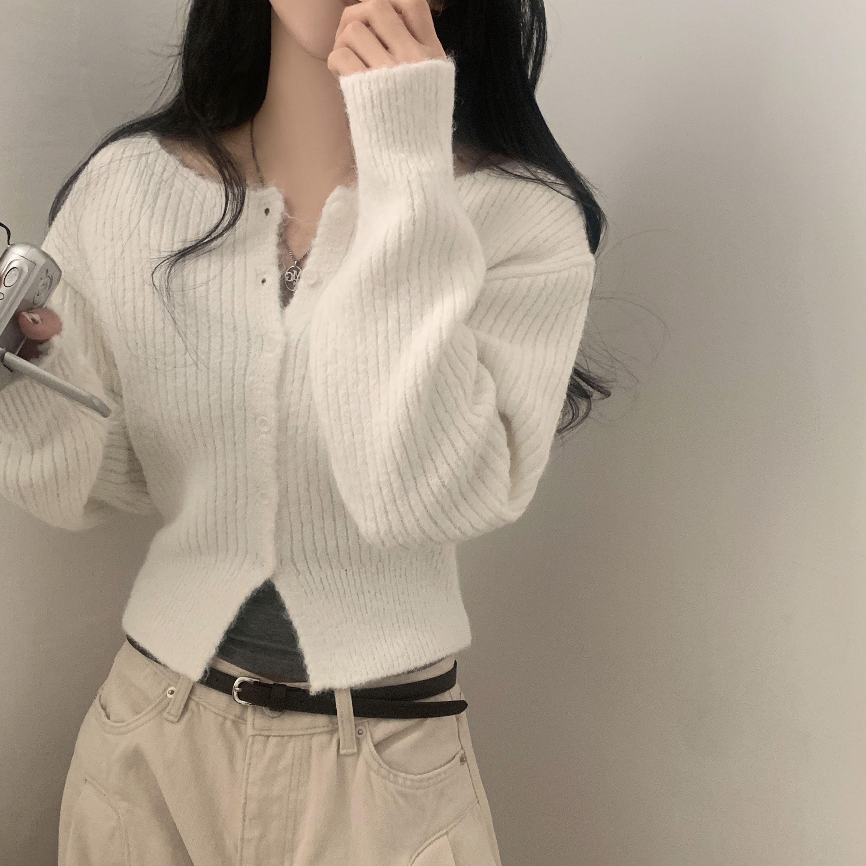 デイリーUネックボタンニットカーディガン