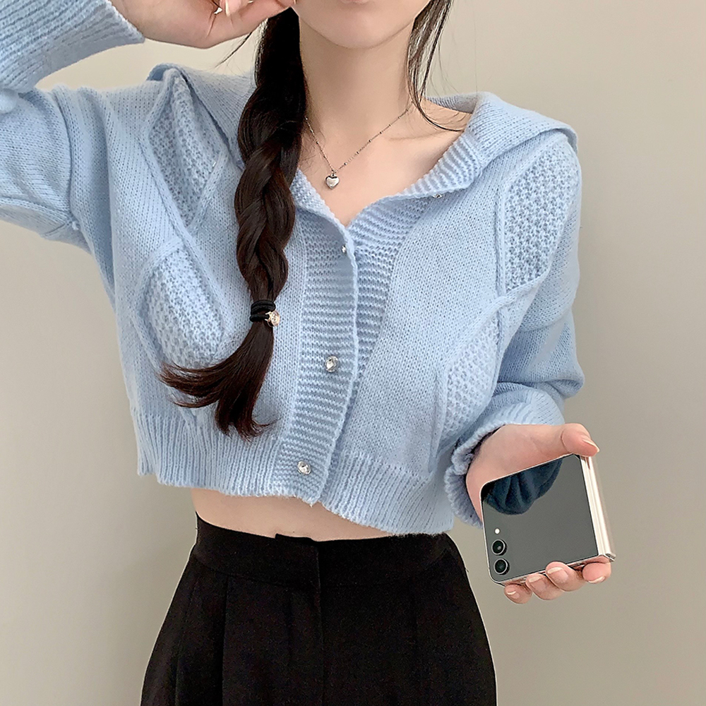 カシミヤボーダースクエアネック長袖ニットカーディガン(5color)