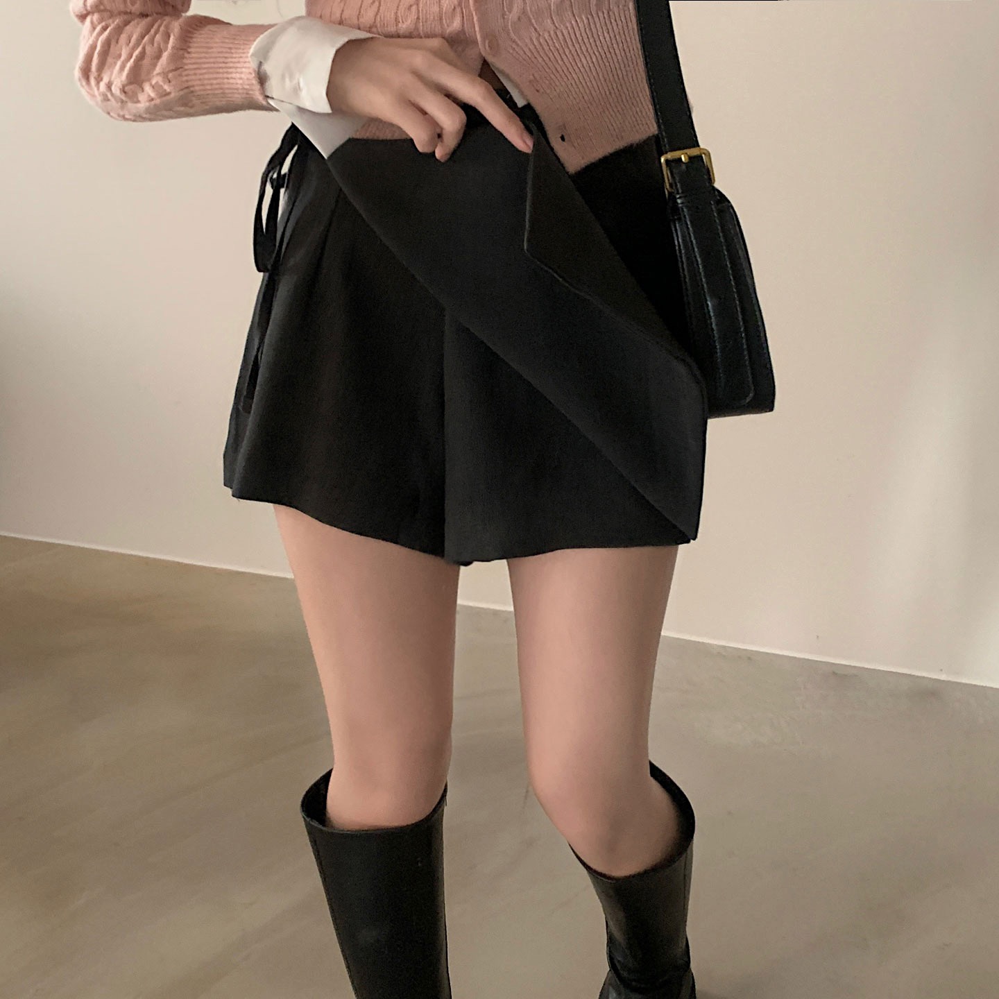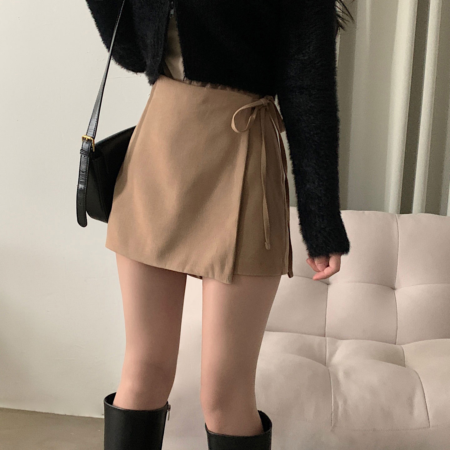 [パンツ型裏地/3color] ラップリボンスカート
