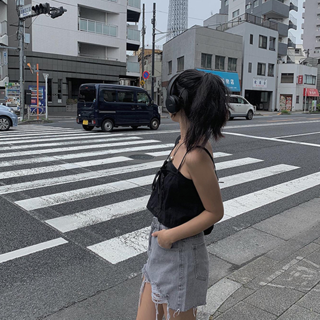クロップドレースリボンレイヤードキャミソール (2color)